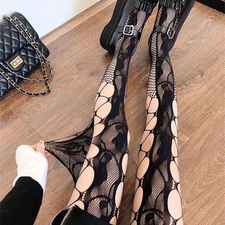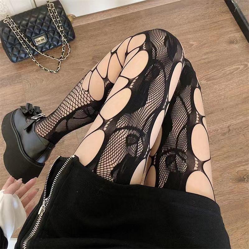 Selección Estricta de Medias de Red para Mujer JK Japonés Primavera y Verano Delgadas Sexys Medias de Seda Negra Huecas Spice Girls Adelgazantes Pantimedias de Seda Negra