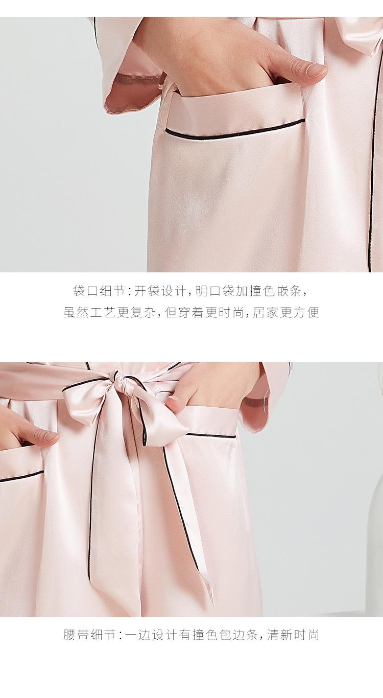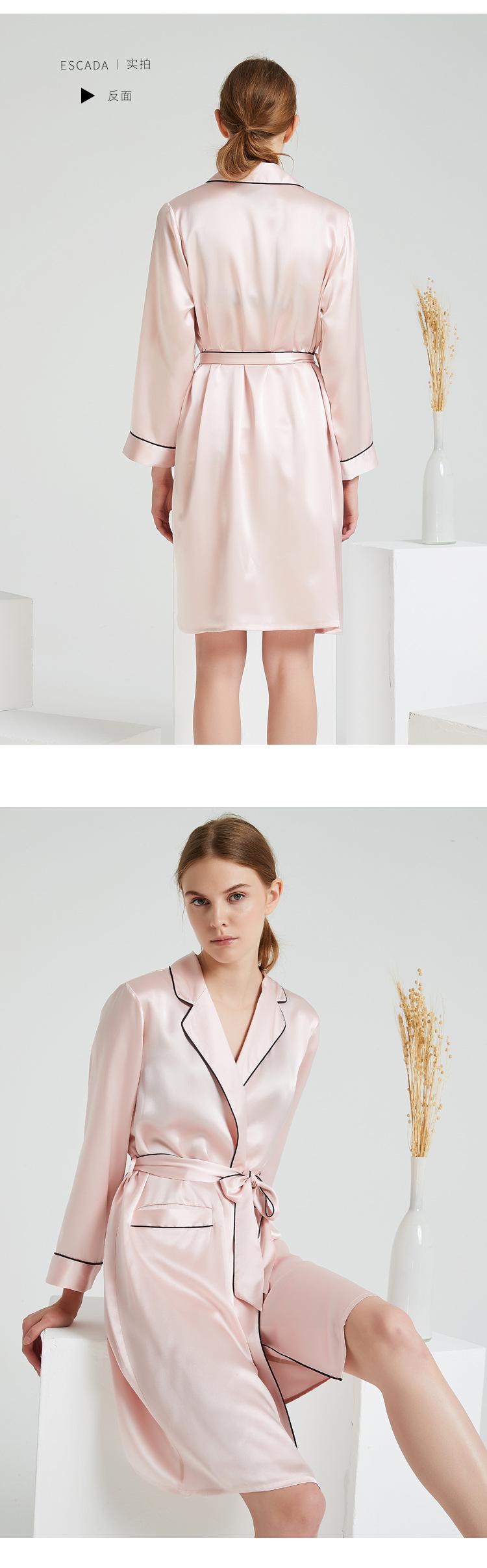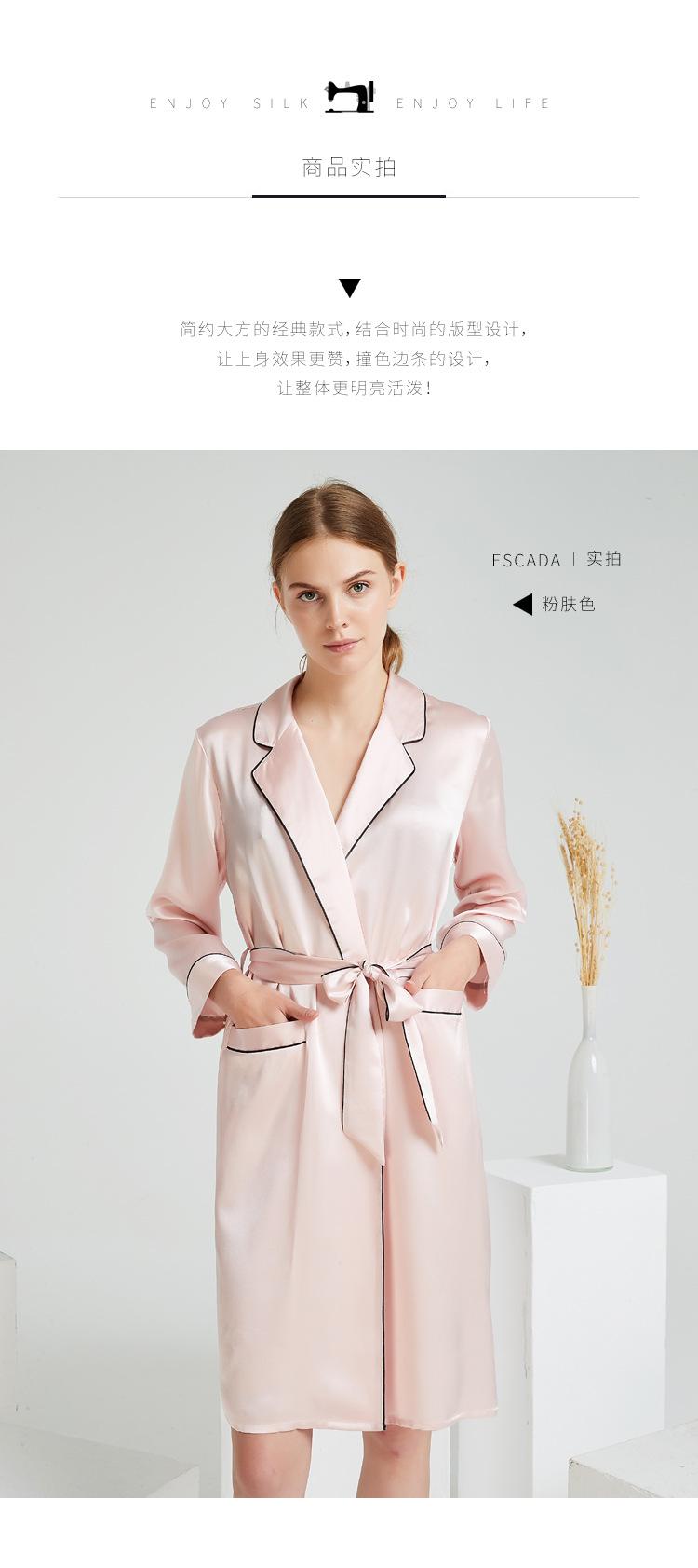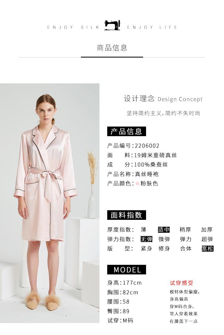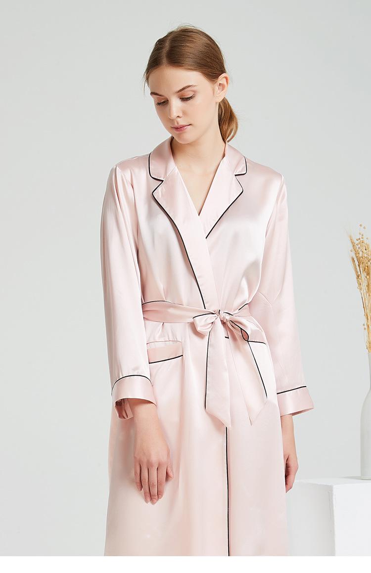 Bata de Noche de Solapa de Seda Pesada de 19 mm con Bolsillo Abierto para Mujer 100% Seda de Morera Bata Individual Pijama Bata Ropa para el Hogar