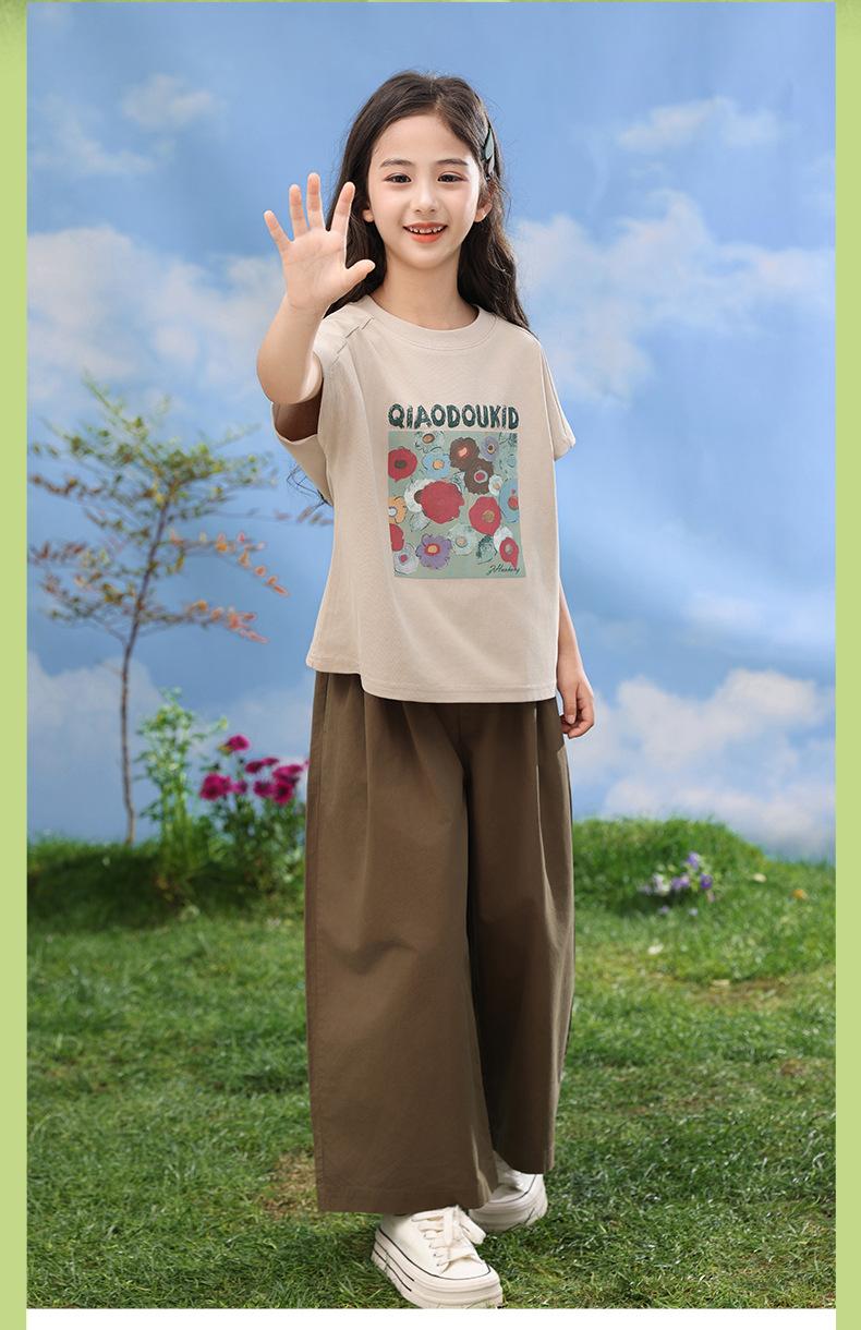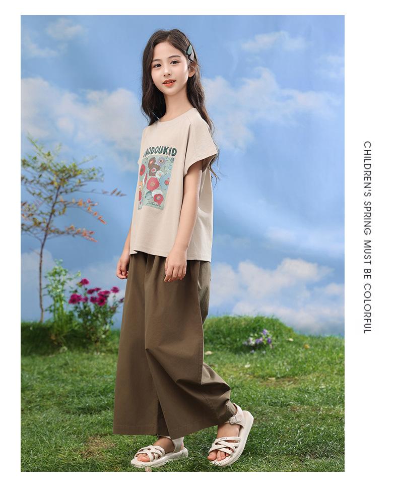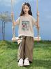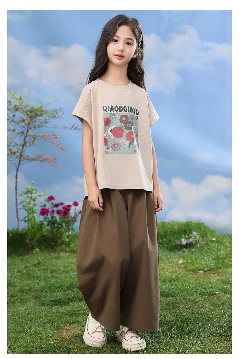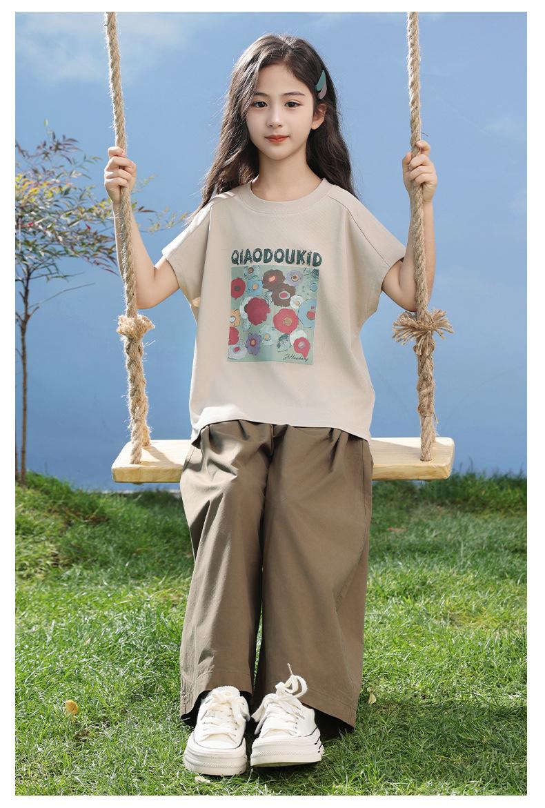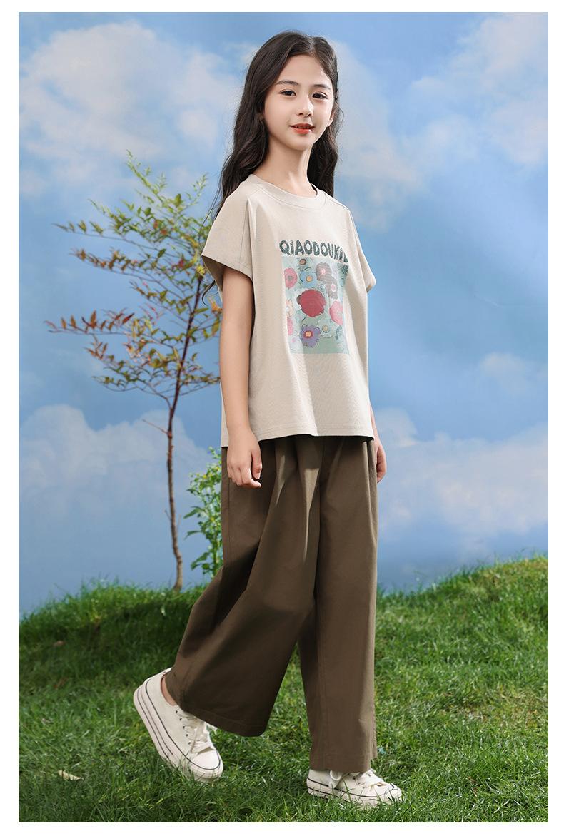 Conjunto de Dos Piezas para Niñas Camiseta Pantalones de Pierna Ancha Estilo Occidental Nuevo Estilo 2025 Traje de Verano de Manga Corta para Niñas Ropa de Verano para Niños para Mujer