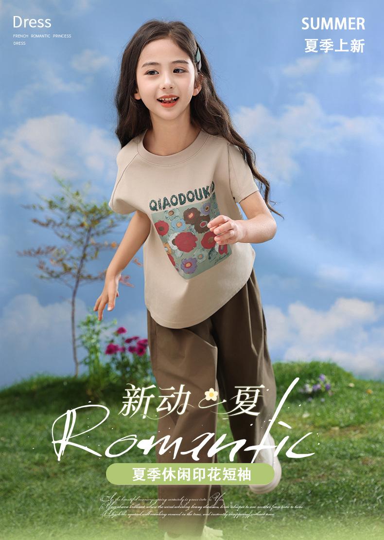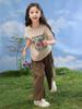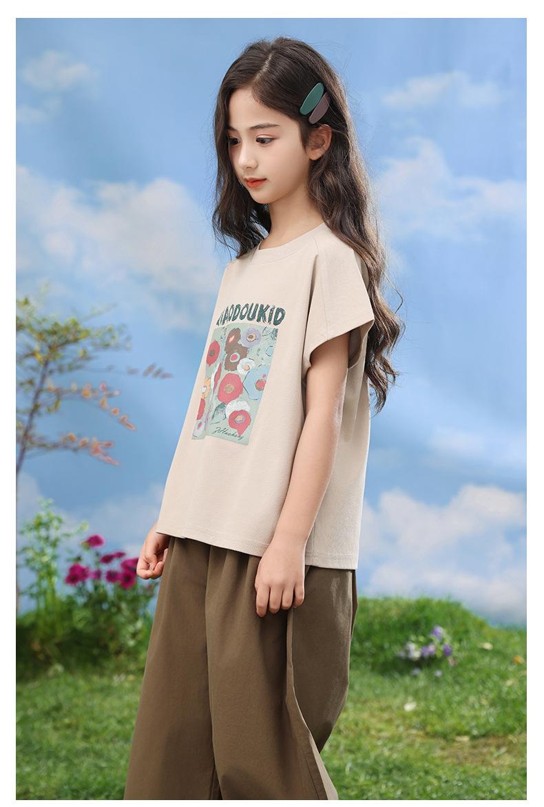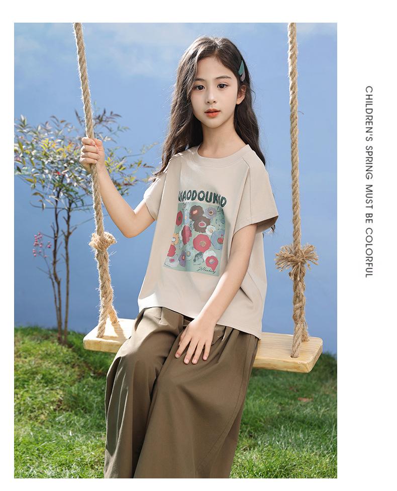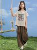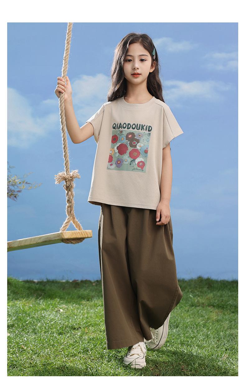 Conjunto de Dos Piezas para Niñas Camiseta Pantalones de Pierna Ancha Estilo Occidental Nuevo Estilo 2025 Traje de Verano de Manga Corta para Niñas Ropa de Verano para Niños para Mujer