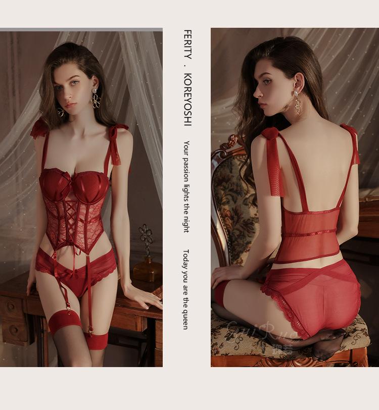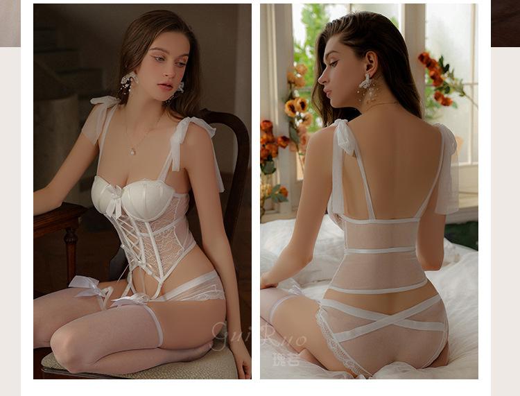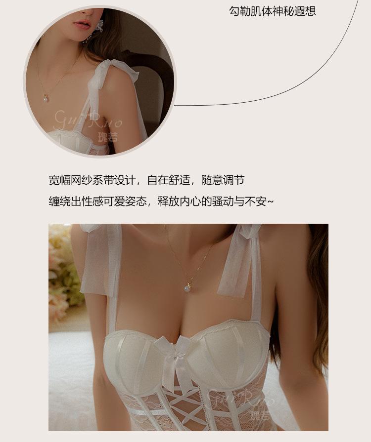 Ruoruo - Traje de uniforme sexy transparente con almohadilla para el pecho, anillo de acero, push up, con tirantes de viento, 3334