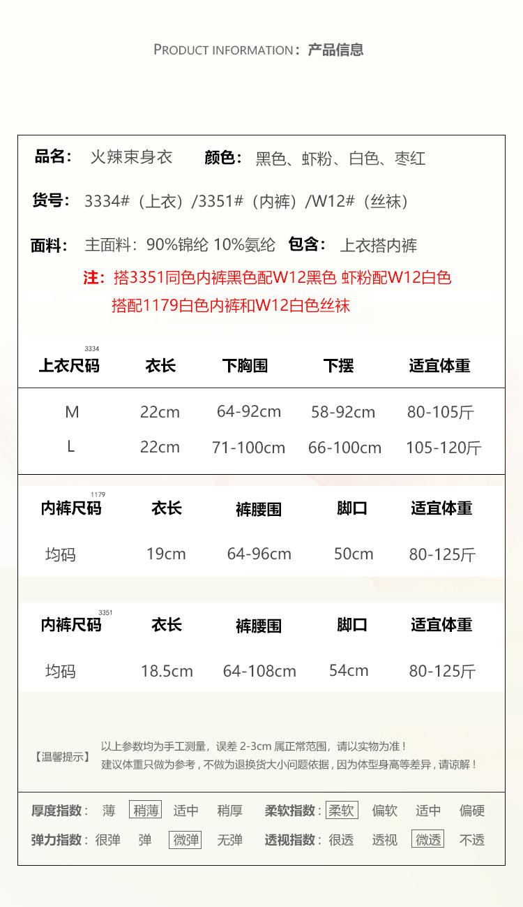 3334 Black (Top), 3351 black (panties), 3334 shrimp powder (top), 3351 shrimp powder (panties), 3334 white (to...