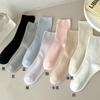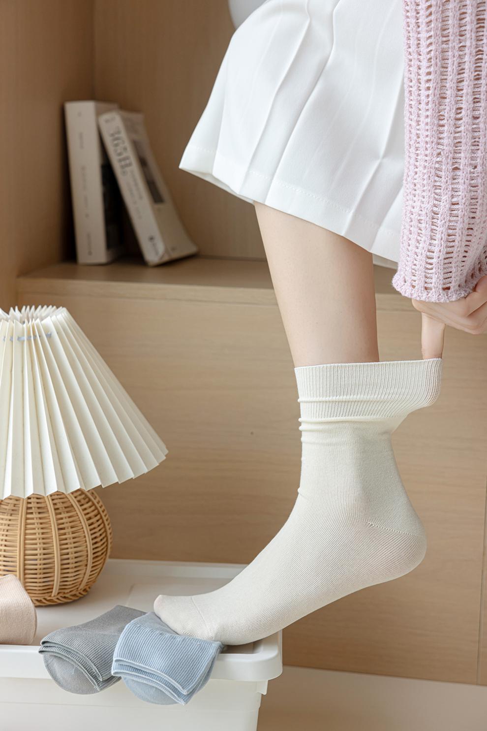 Calcetines de luna nueva de primavera y otoño para mujer, calcetines holgados de tubo medio, calcetines de colores sólidos que combinan con todo, costuras sin varillas de alta gama