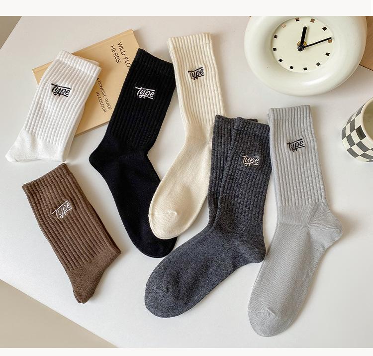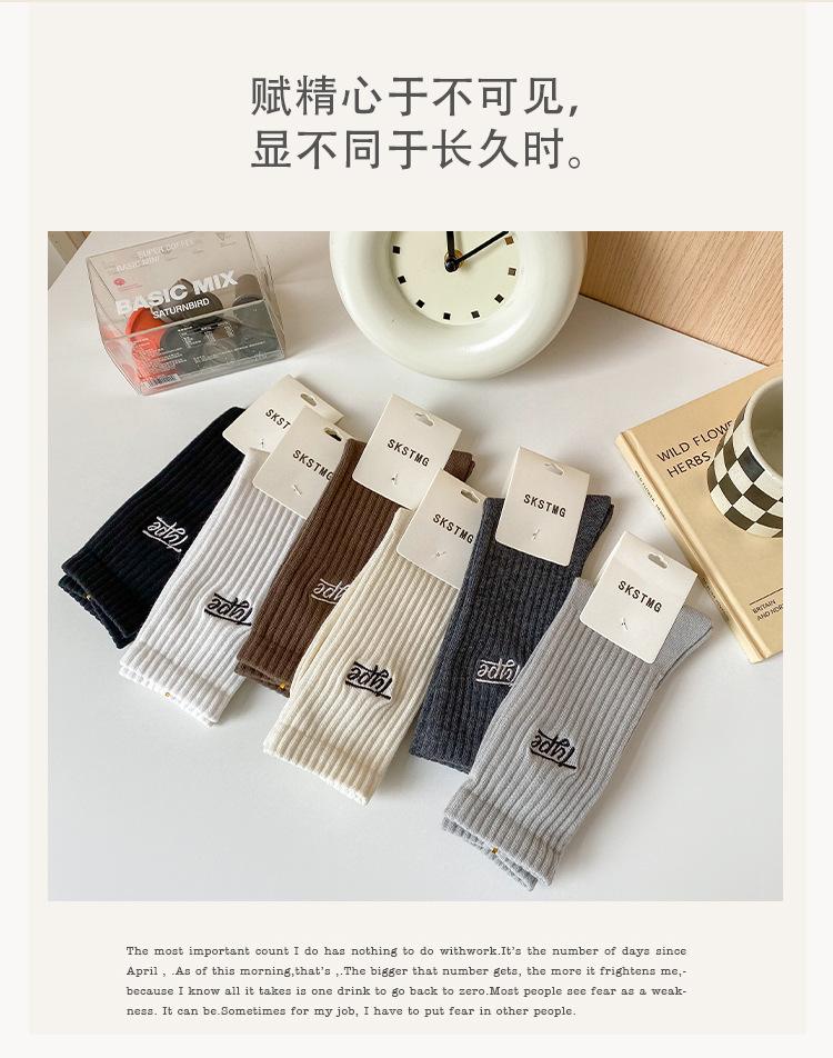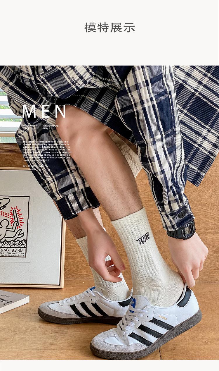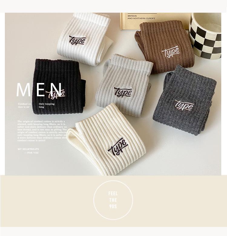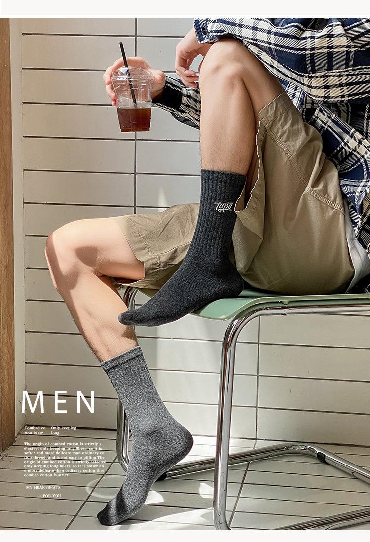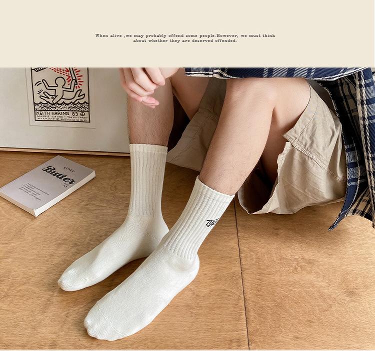 Calcetines Zhuji para hombre de invierno hasta media pantorrilla deportivos casuales versátiles bordados en inglés medias para hombre calcetines de algodón de color sólido