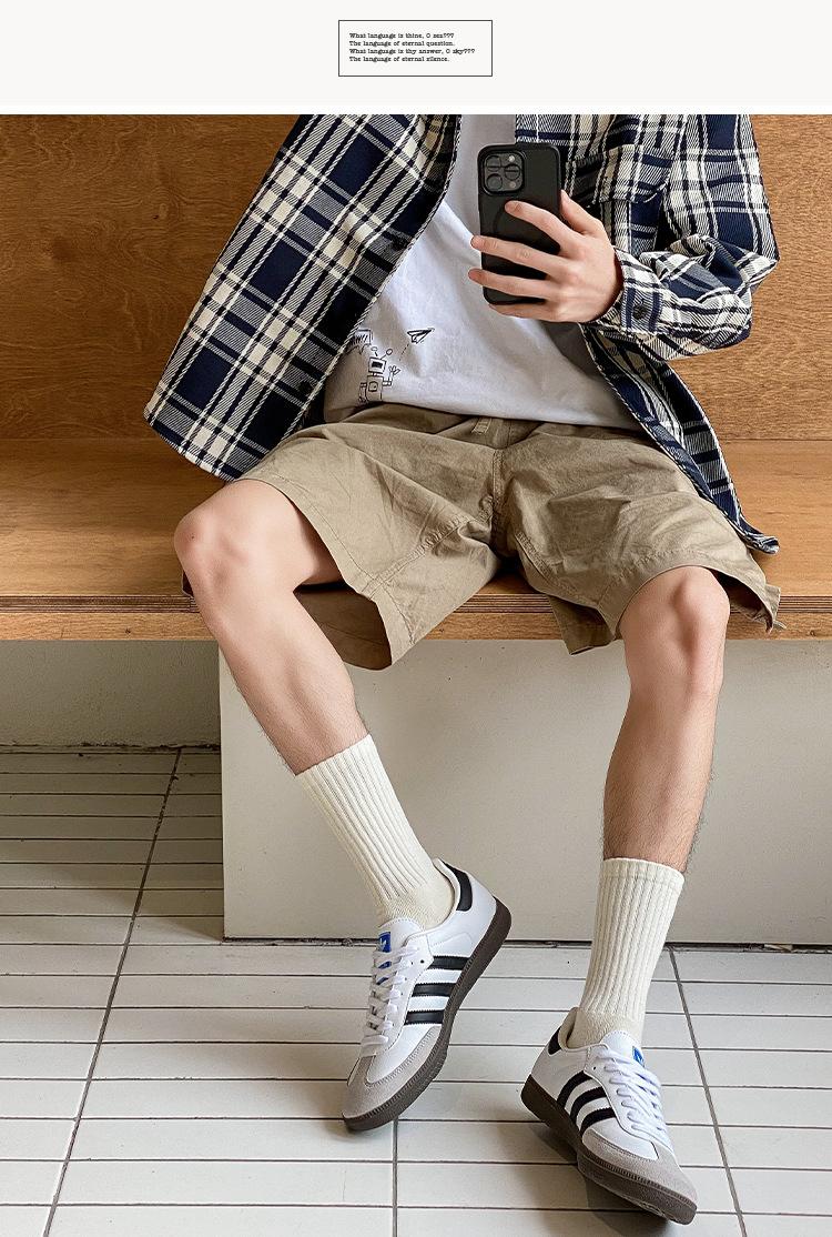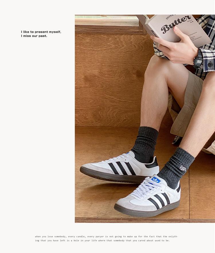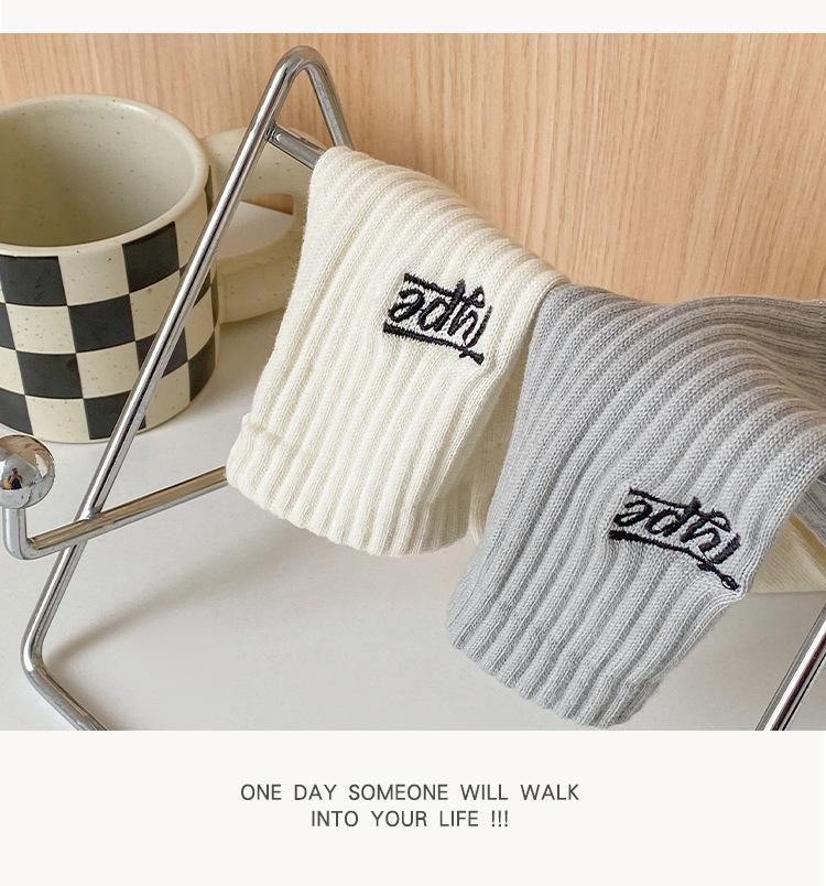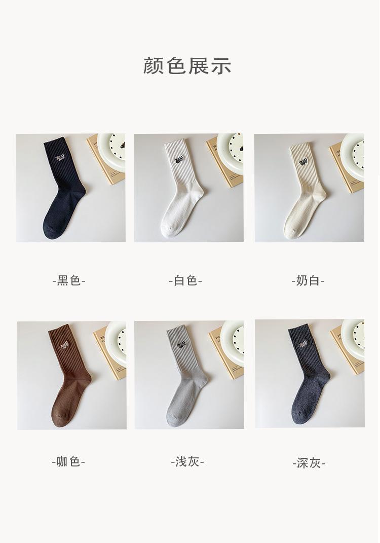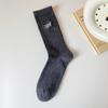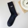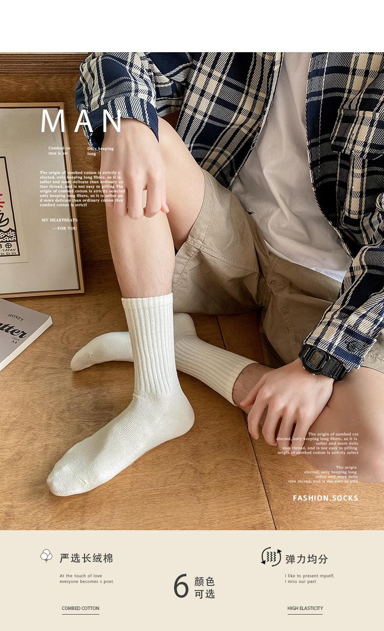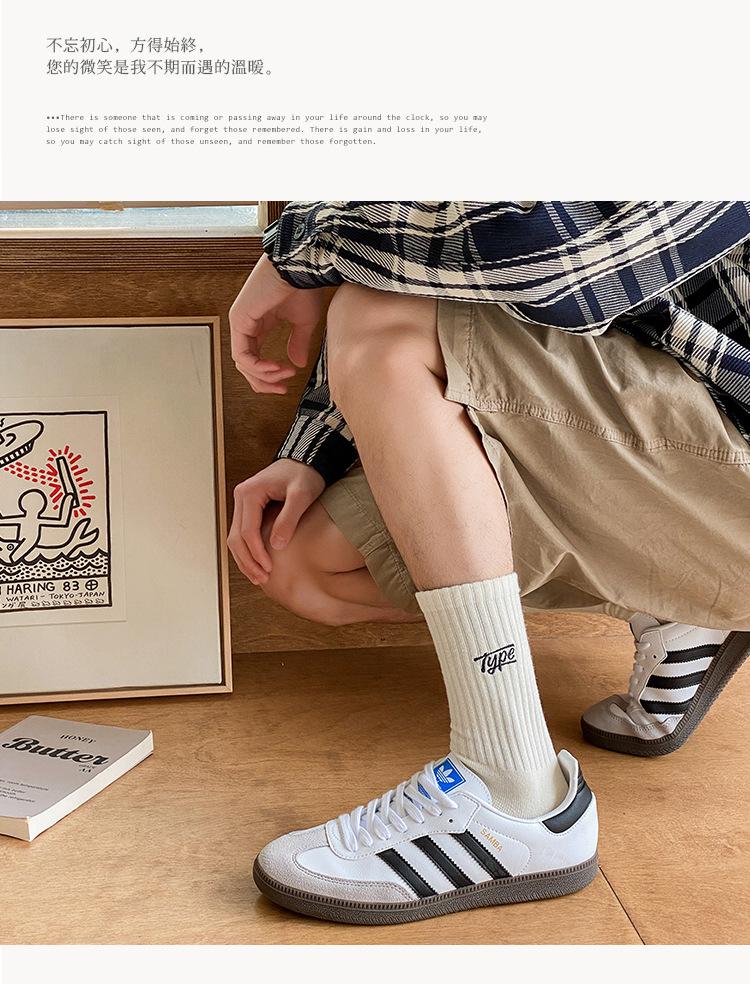 Calcetines Zhuji para hombre de invierno hasta media pantorrilla deportivos casuales versátiles bordados en inglés medias para hombre calcetines de algodón de color sólido