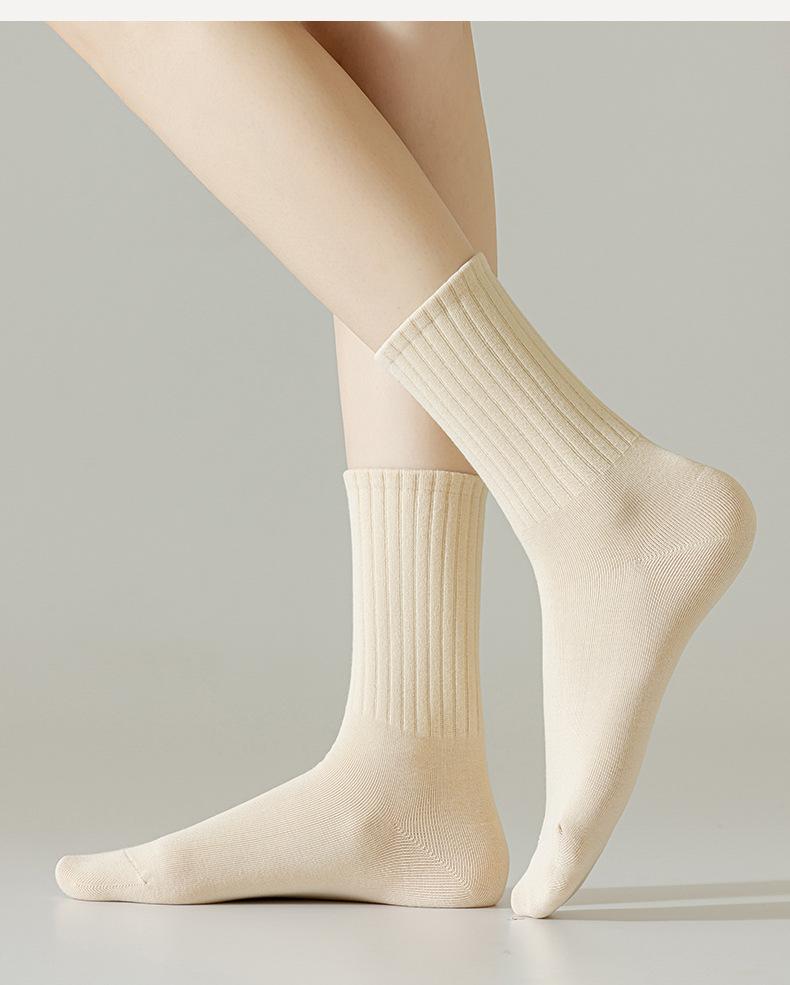 Medias altas sin hueso de talle alto para todo tipo de deportes de primavera, otoño e invierno, calcetines de algodón anti-pilling de color sólido, calcetines de media caña para niñas