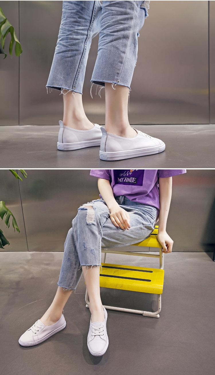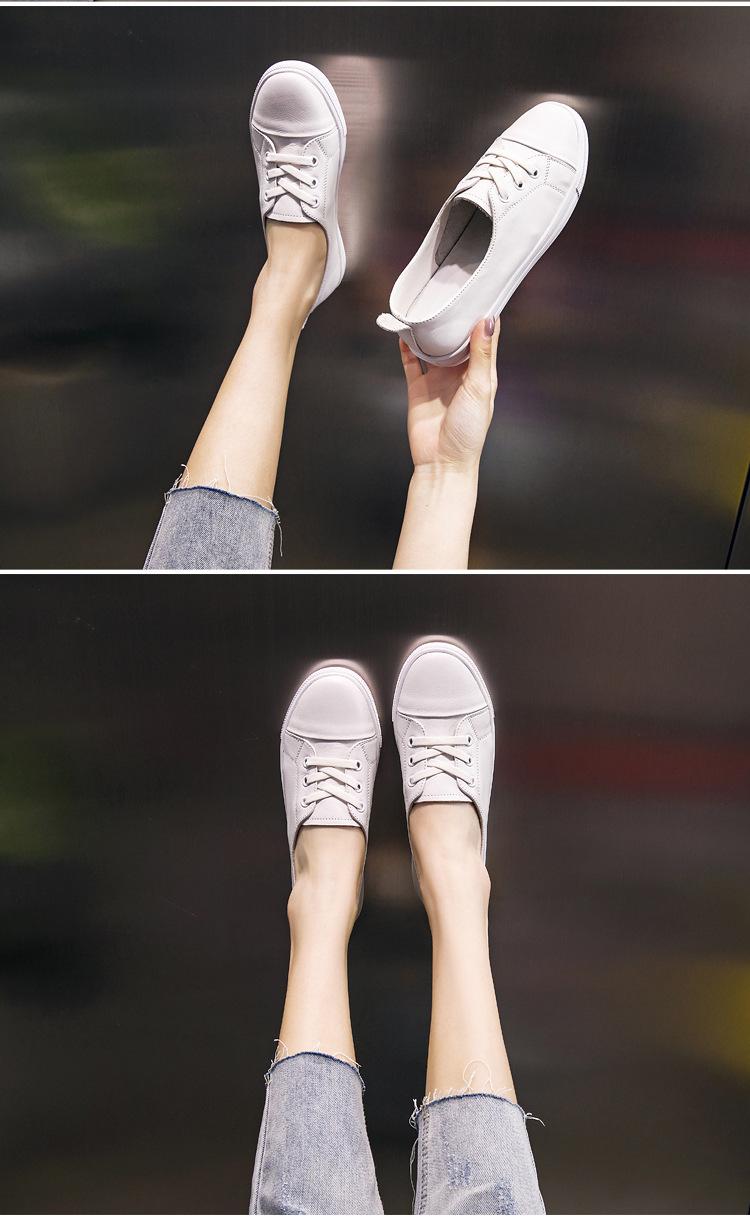 Zapatos Blancos de Cuero Genuino para Mujer 2023 Primavera y Verano Nueva Moda Zapatos Casuales Cuatro Estaciones Boca Baja Piel de Vaca Cómodos Suela Suave Zapatos de Mujer