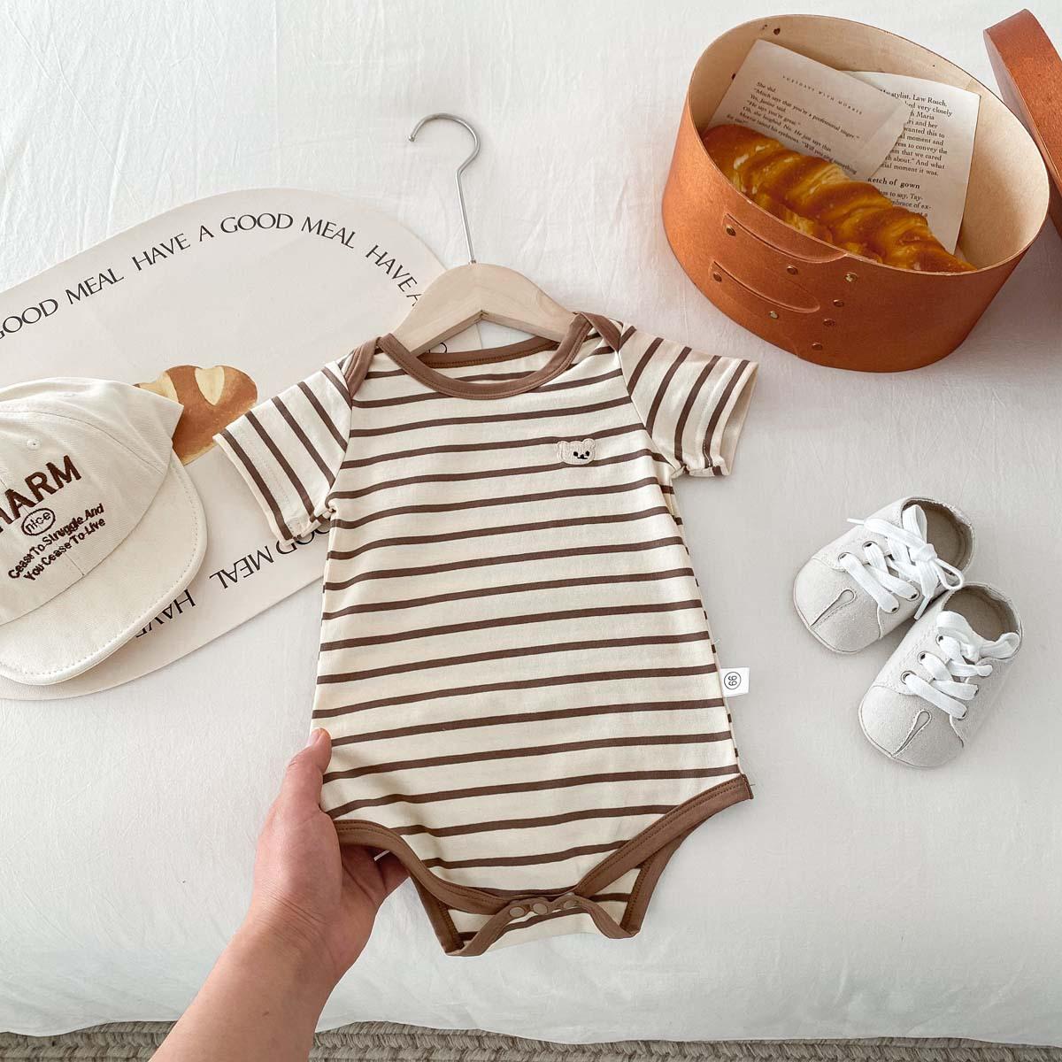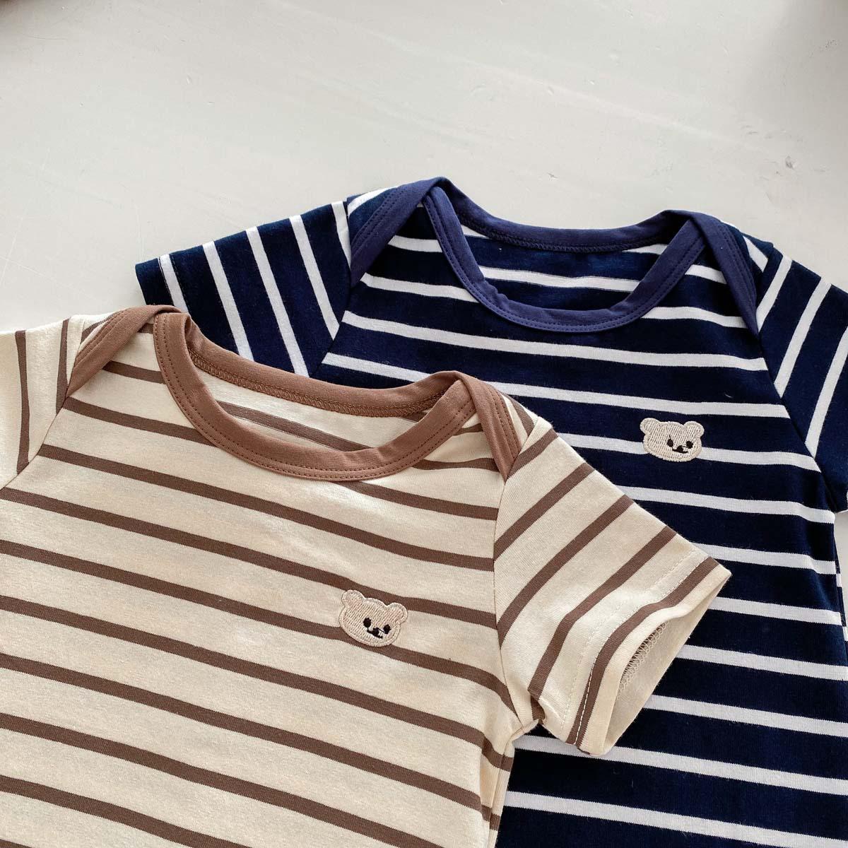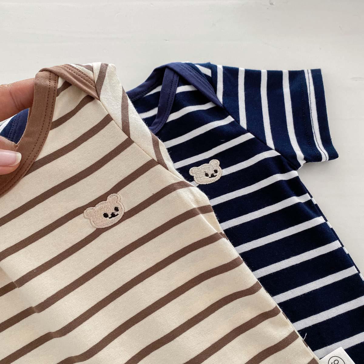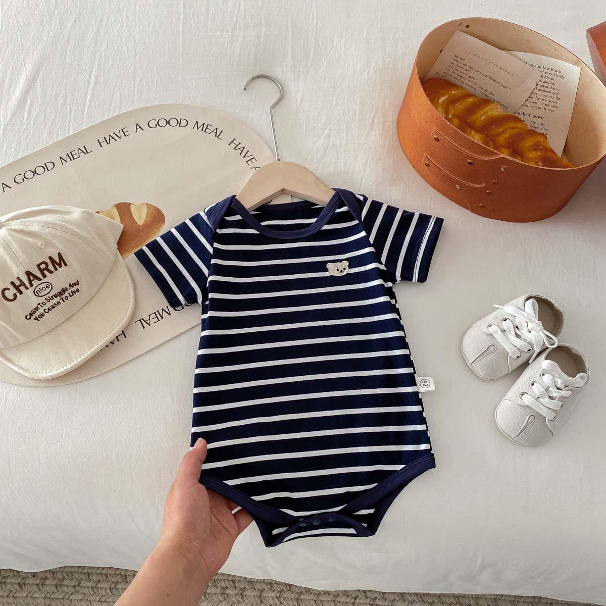 Ins Bebé Verano Nuevo Niños Manga Corta Rayas Oso de Dibujos Animados Mameluco de Una Pieza Estilo Coreano Suave Harem