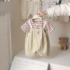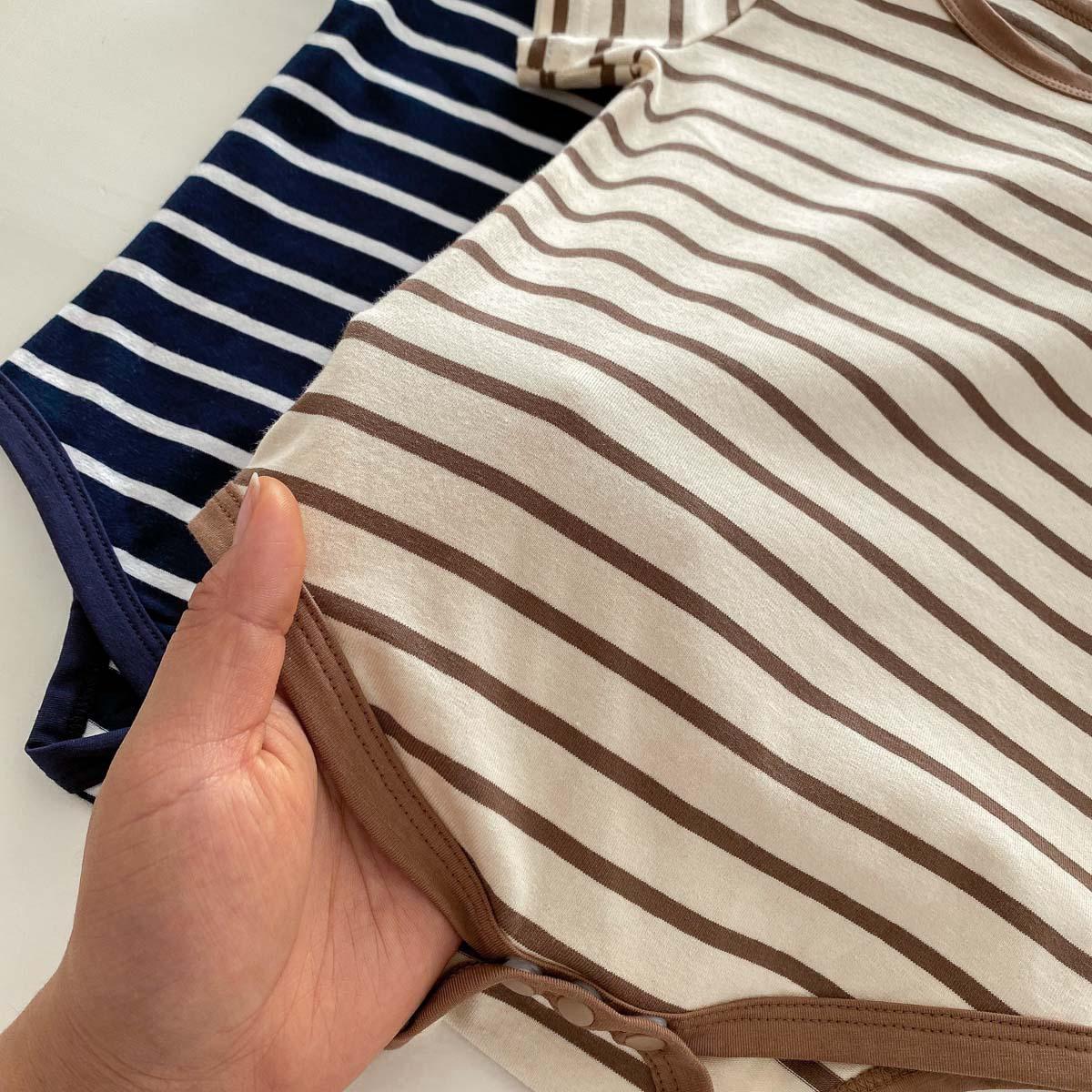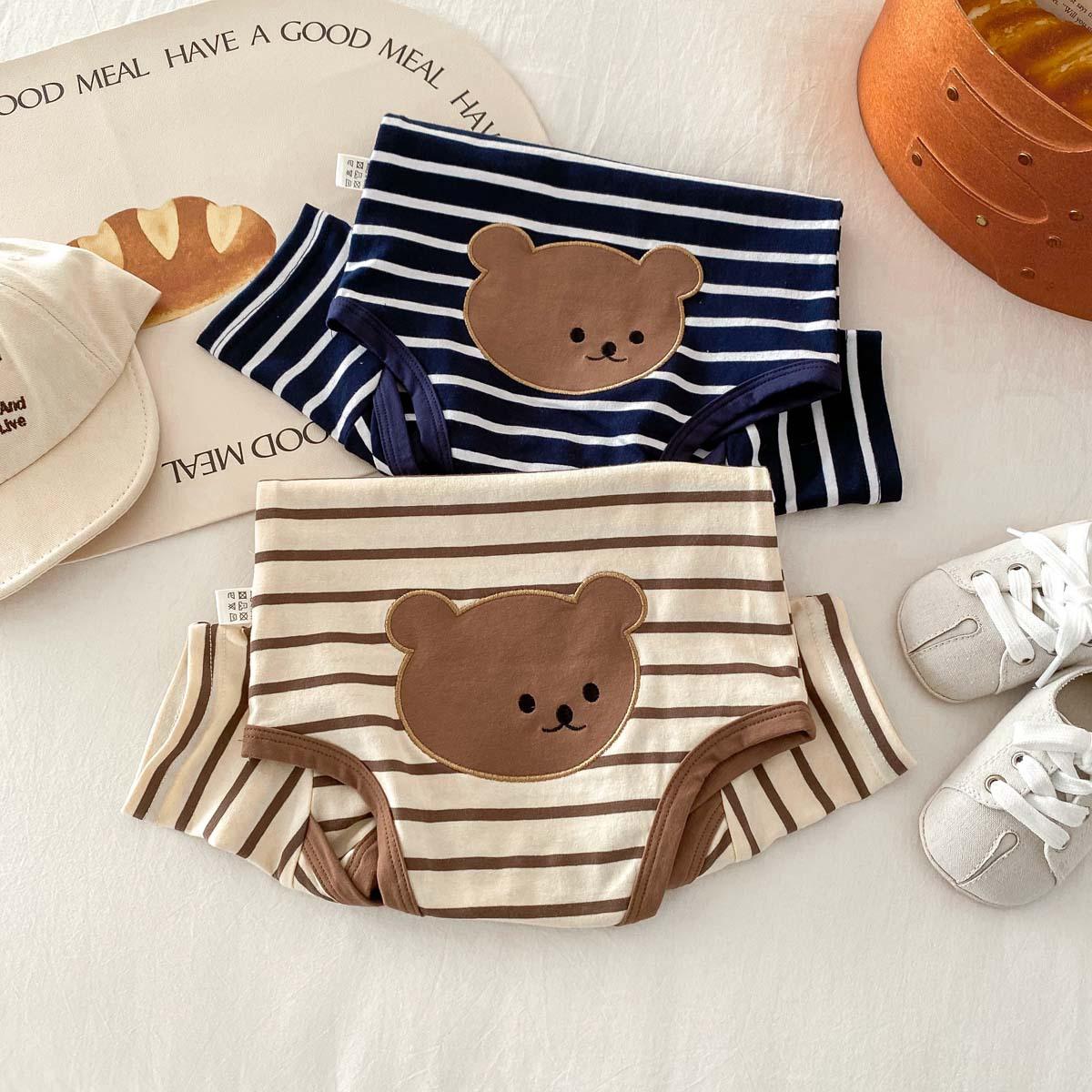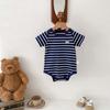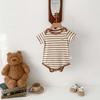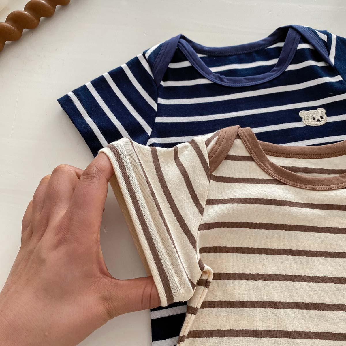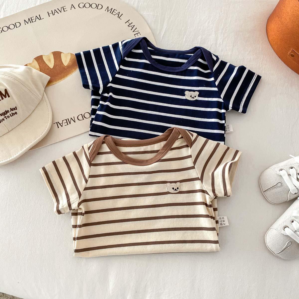 Ins Bebé Verano Nuevo Niños Manga Corta Rayas Oso de Dibujos Animados Mameluco de Una Pieza Estilo Coreano Suave Harem