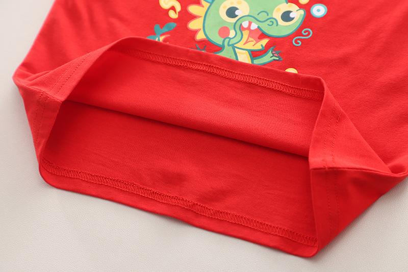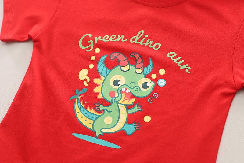 Red small dragon round neck short sleeve suit, White small dragon round neck short sleeve suit, Yellow Little ...