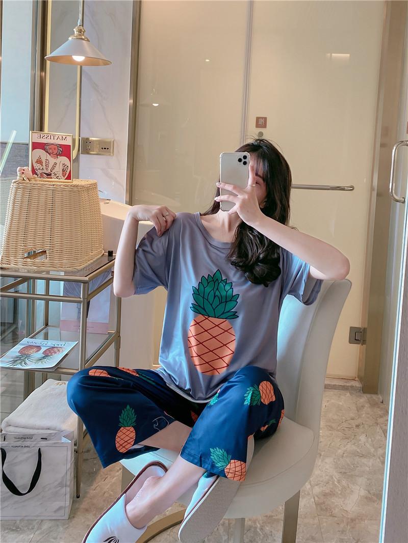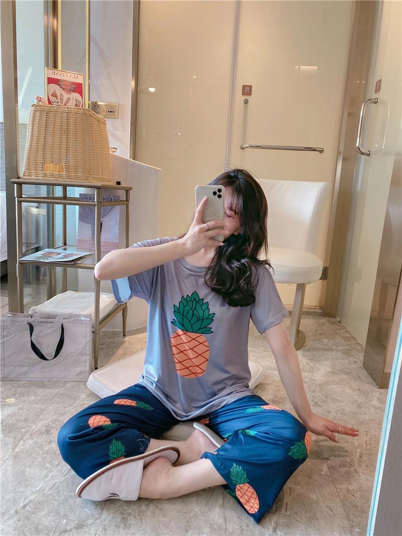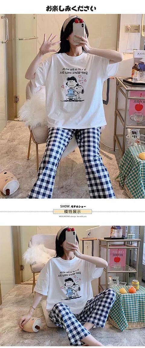 Pijama de Verano de Manga Corta para Mujer 2025 Nuevo Popular Cibernético Ropa para el Hogar Primavera y Otoño Pantalones Traje Delgado Dibujo Animado Se Puede Usar