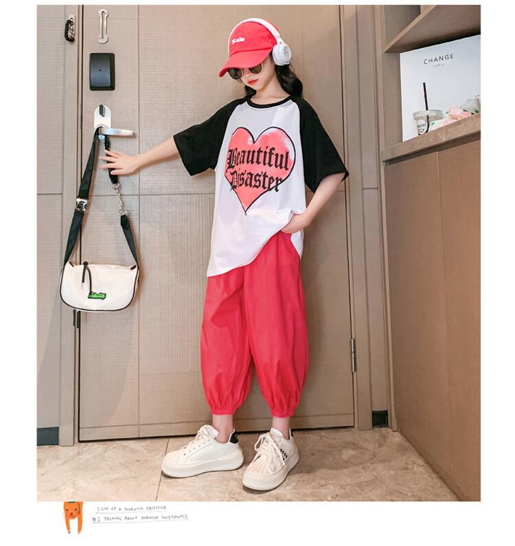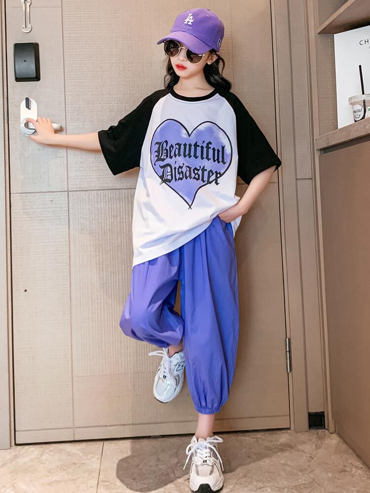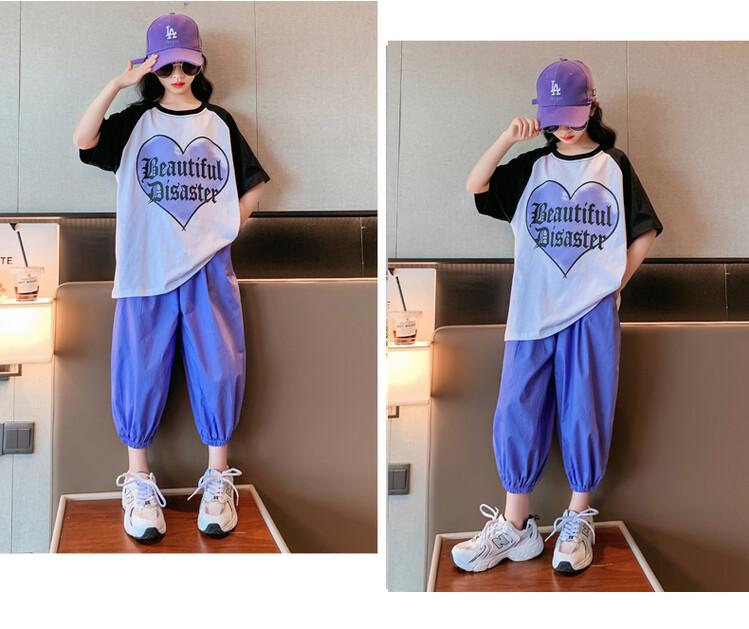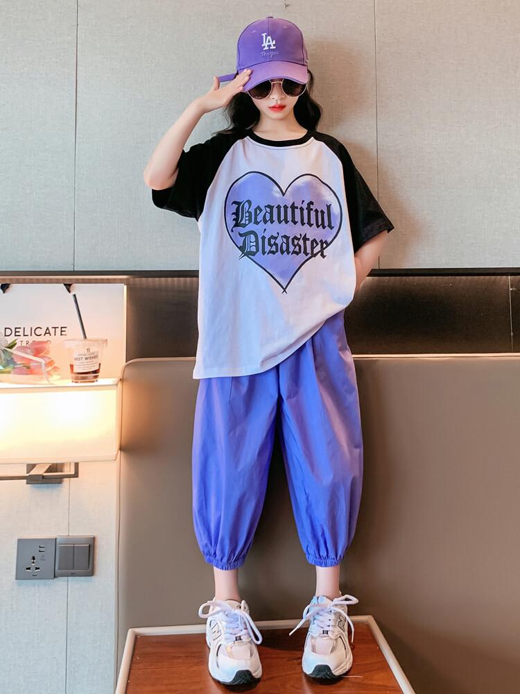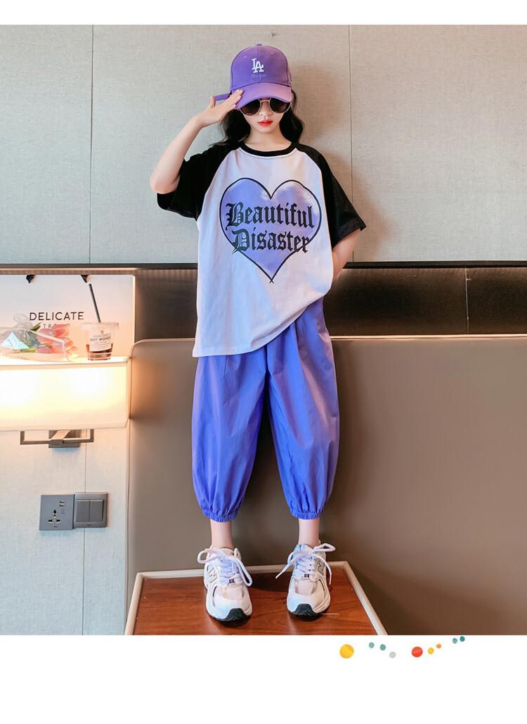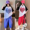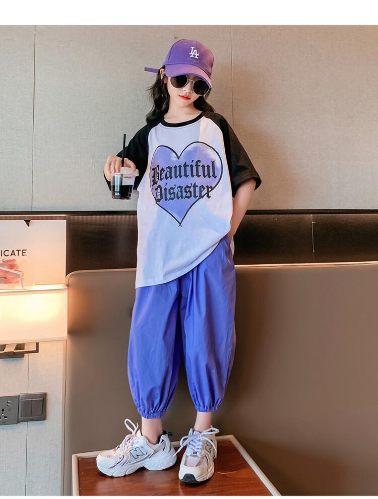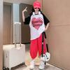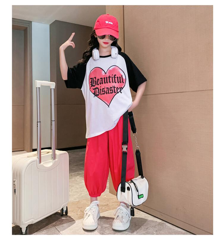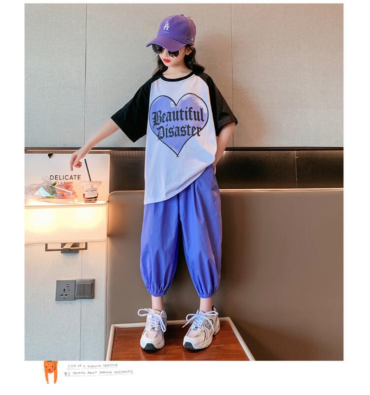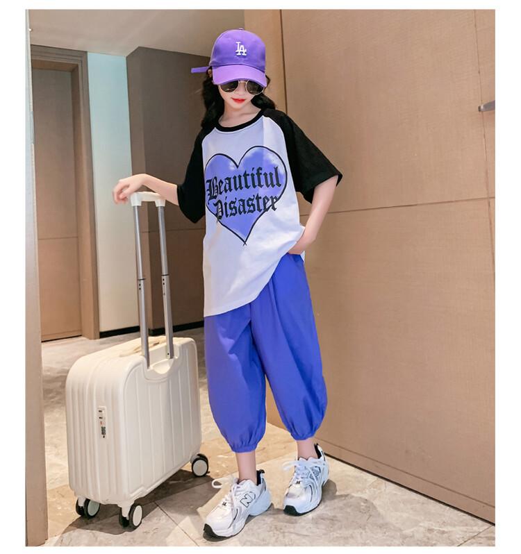 Traje de verano para niñas 2024 Nuevo estilo coreano moderno ropa de verano de celebridad de internet para niños medianos y grandes estilo occidental deportivo manga corta conjunto de dos piezas