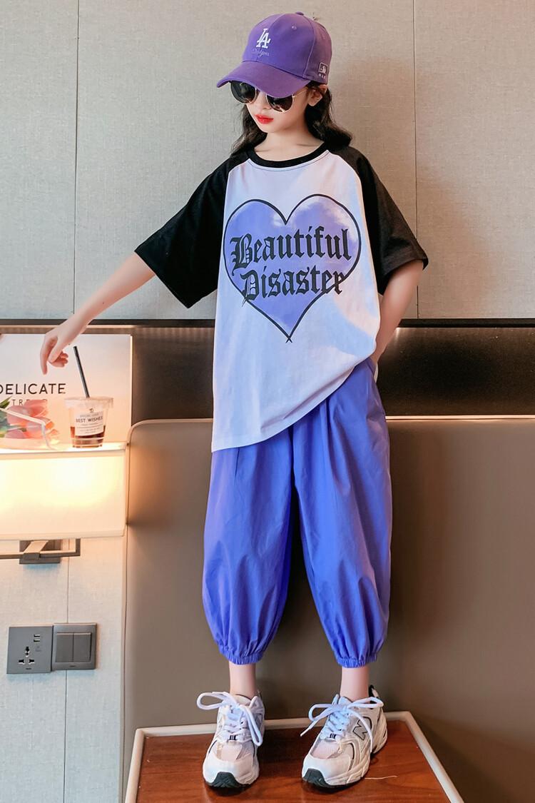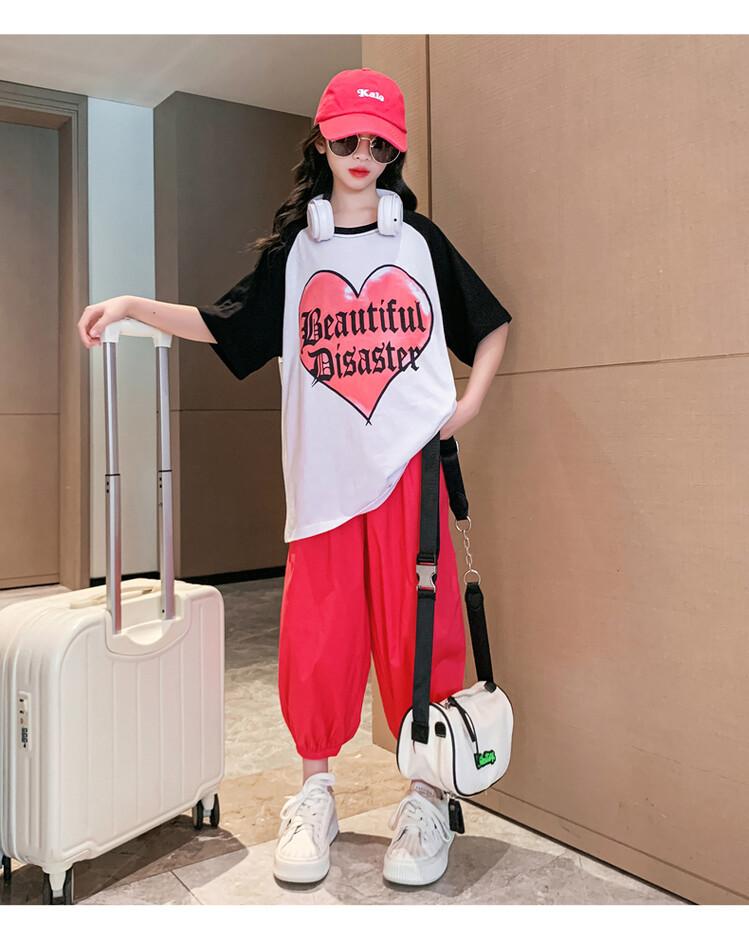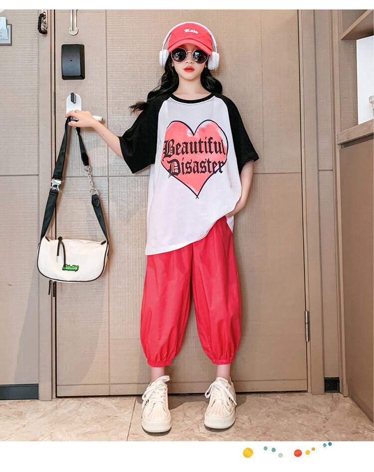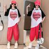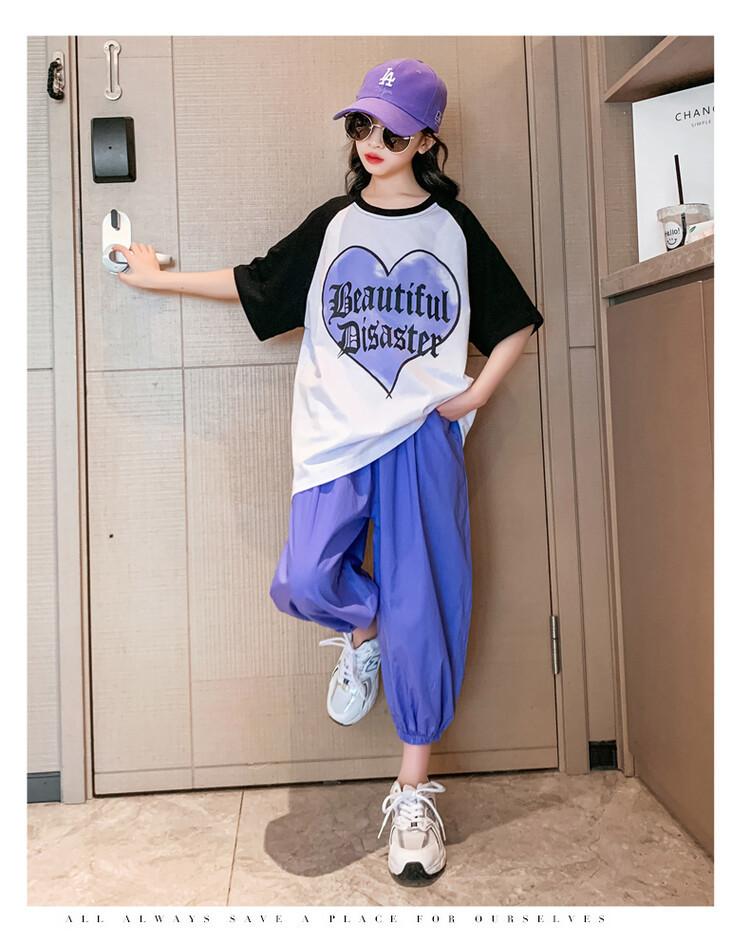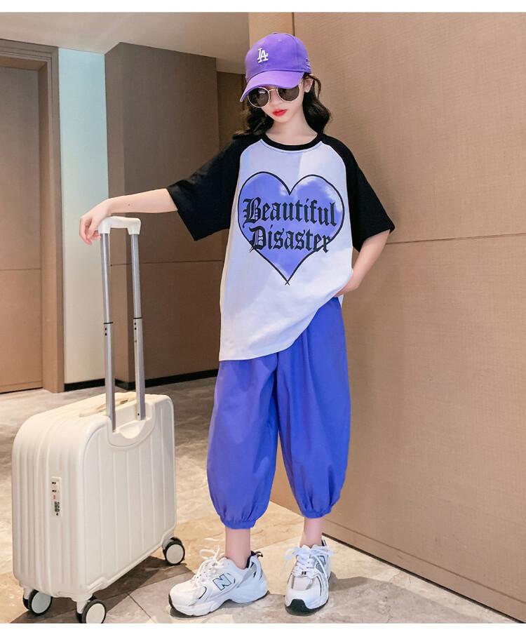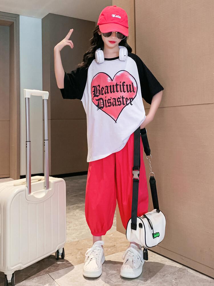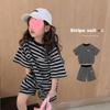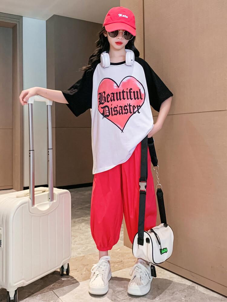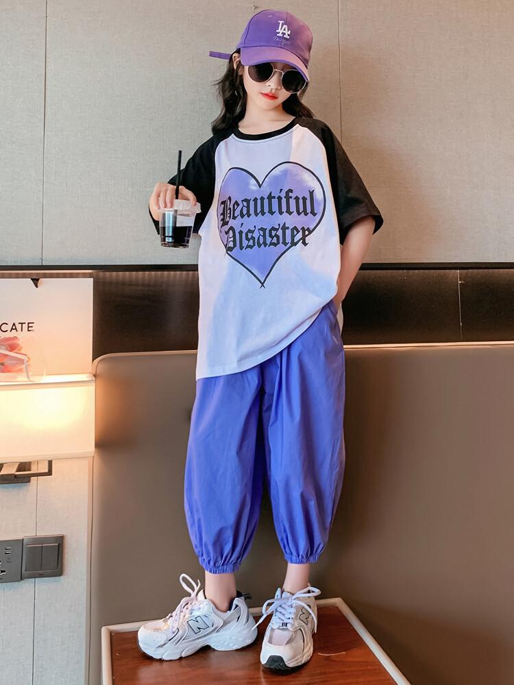 Traje de verano para niñas 2024 Nuevo estilo coreano moderno ropa de verano de celebridad de internet para niños medianos y grandes estilo occidental deportivo manga corta conjunto de dos piezas