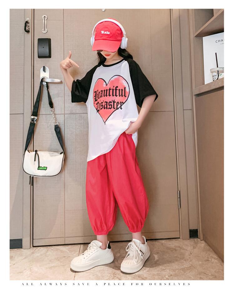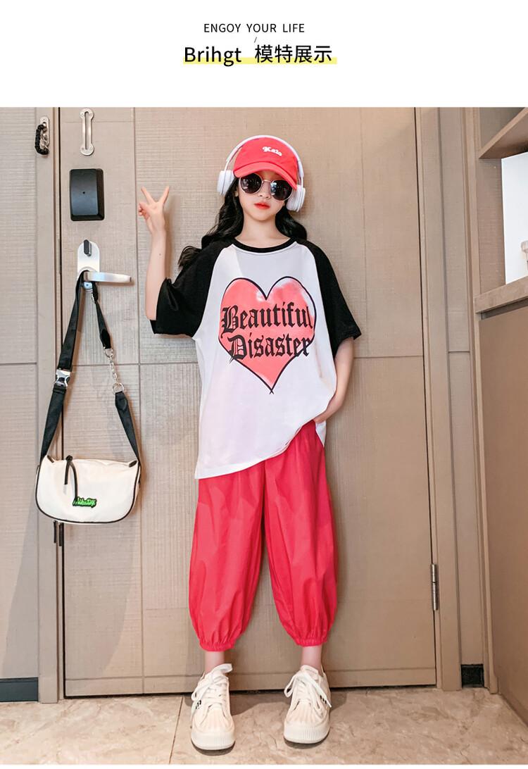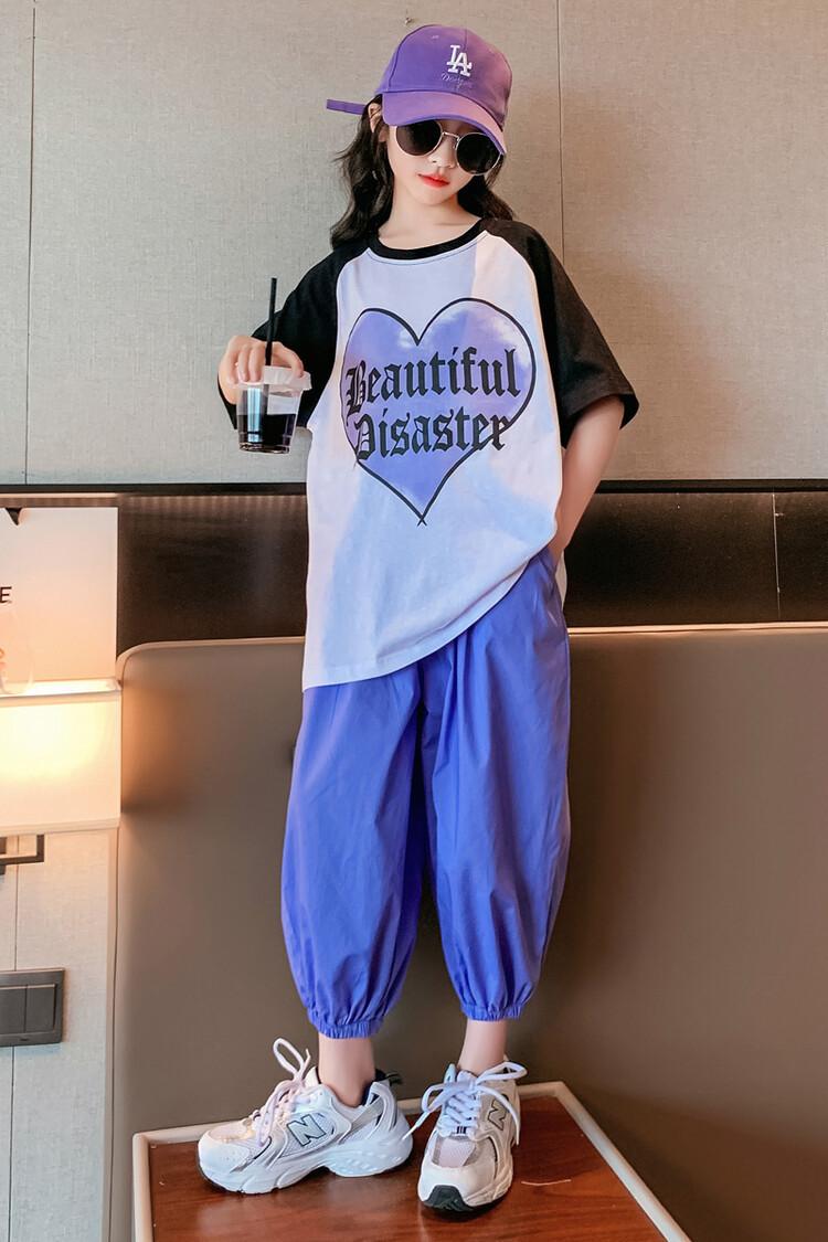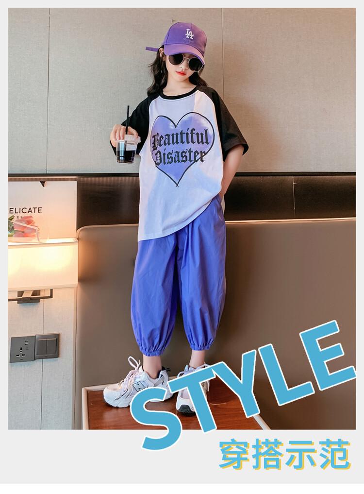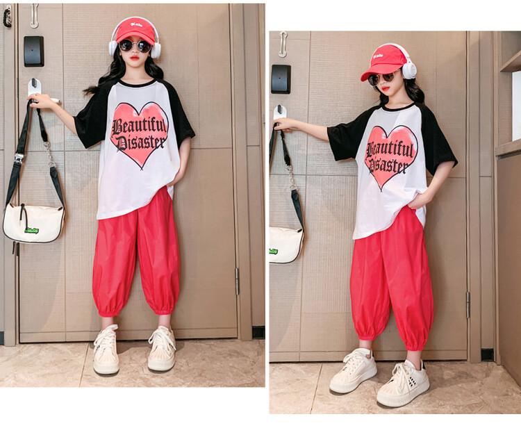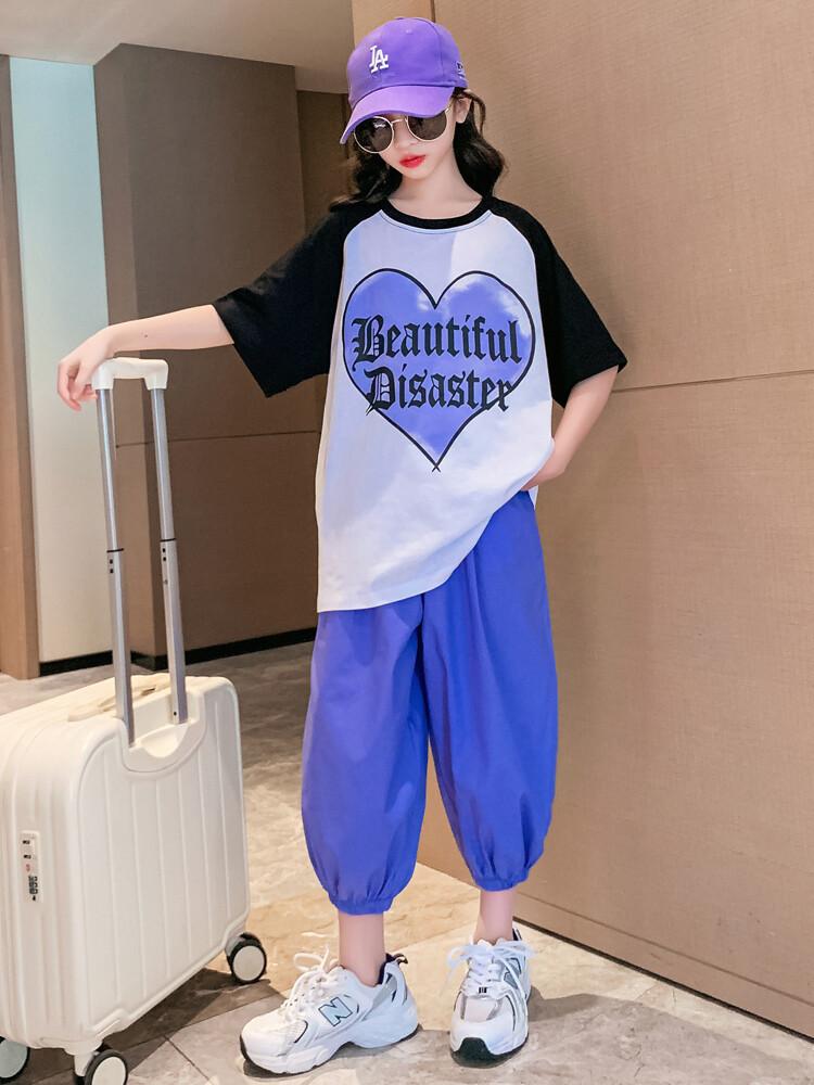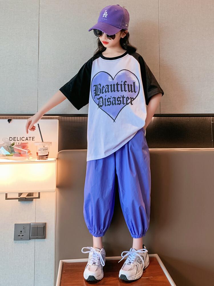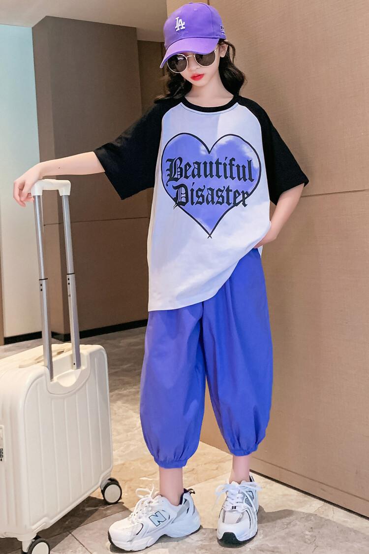 Traje de verano para niñas 2024 Nuevo estilo coreano moderno ropa de verano de celebridad de internet para niños medianos y grandes estilo occidental deportivo manga corta conjunto de dos piezas