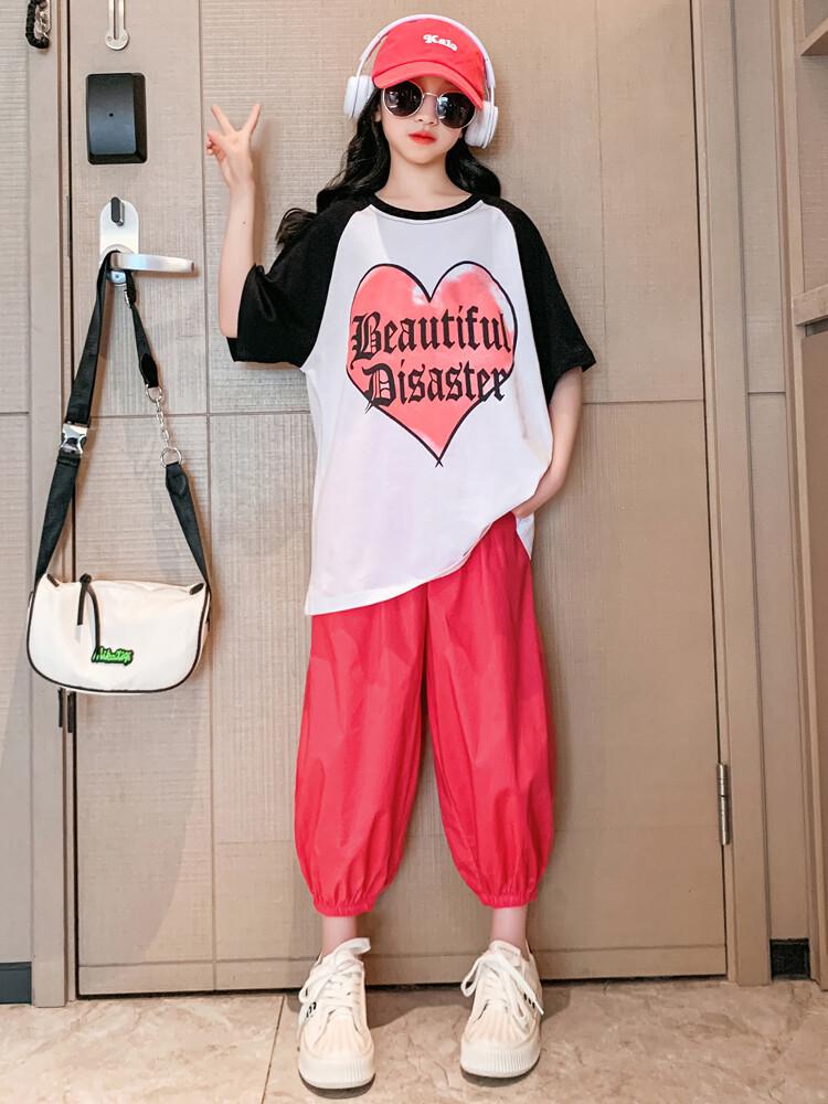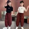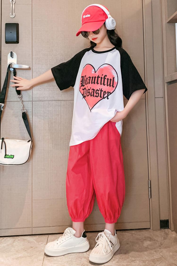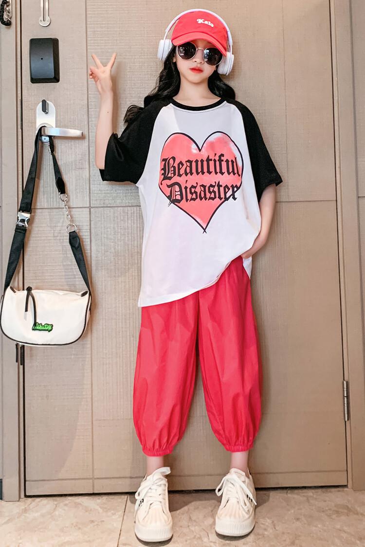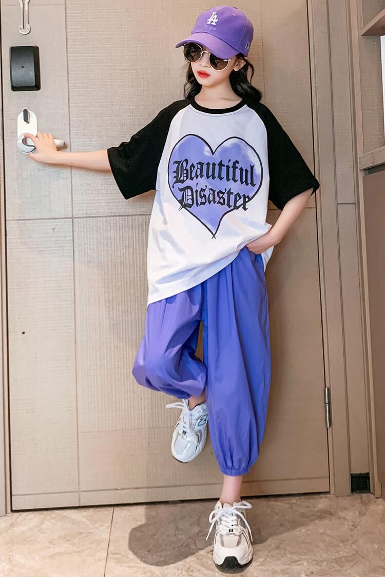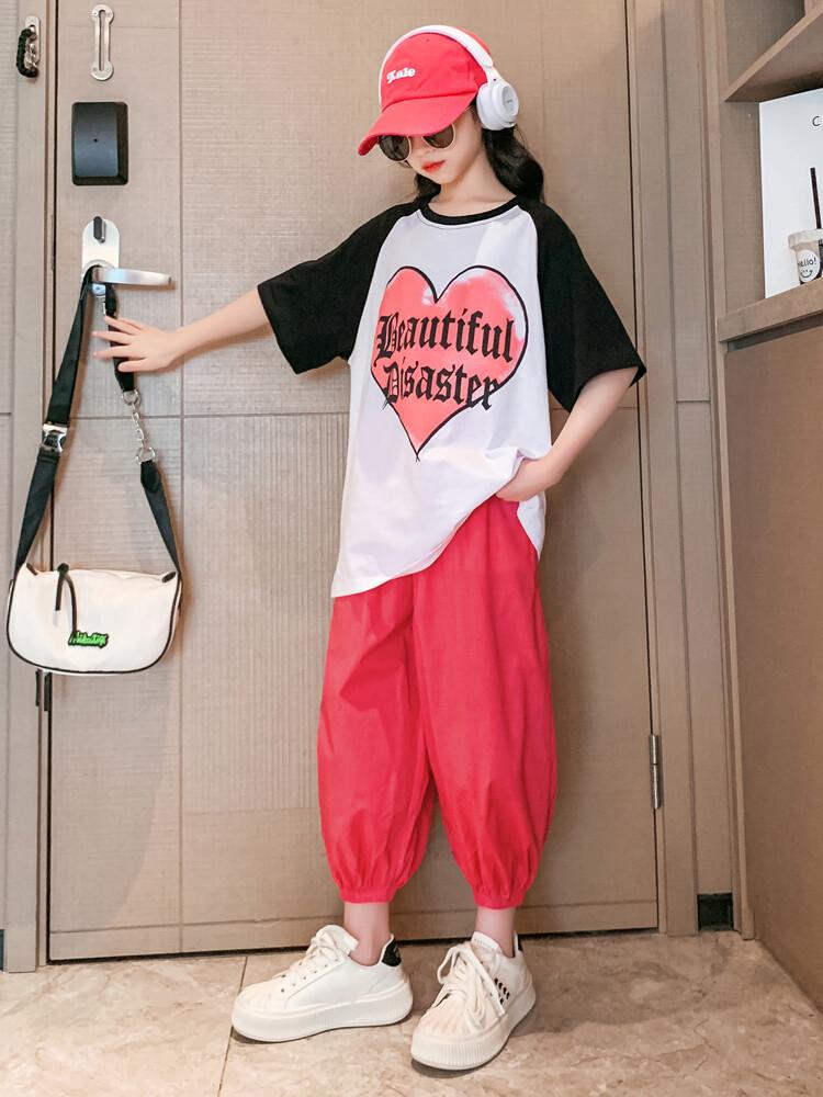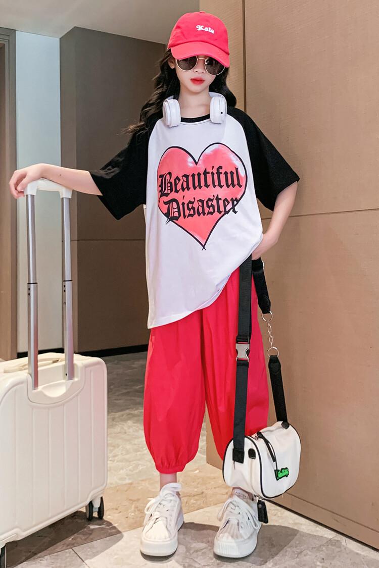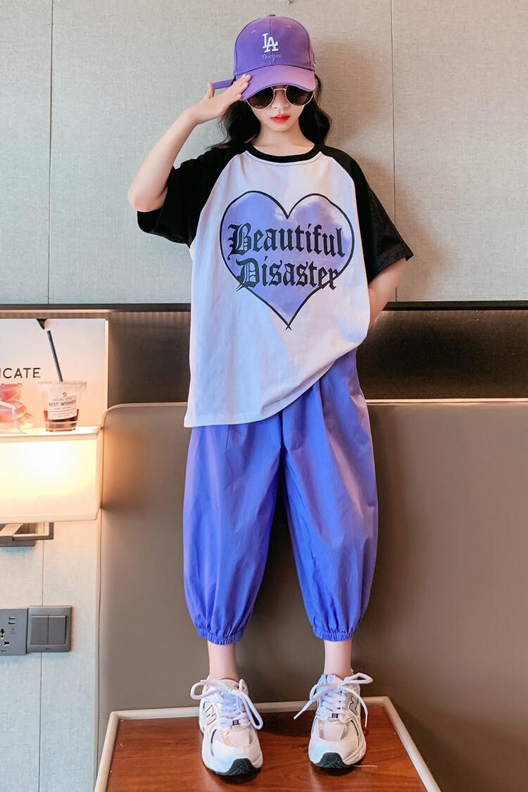 Traje de verano para niñas 2024 Nuevo estilo coreano moderno ropa de verano de celebridad de internet para niños medianos y grandes estilo occidental deportivo manga corta conjunto de dos piezas