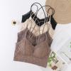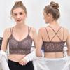 Sujetador tipo chaleco con tirantes y base de almohadilla para el pecho, con hermoso diseño de encaje y cinturón cruzado fino para mujer.