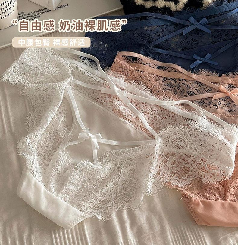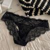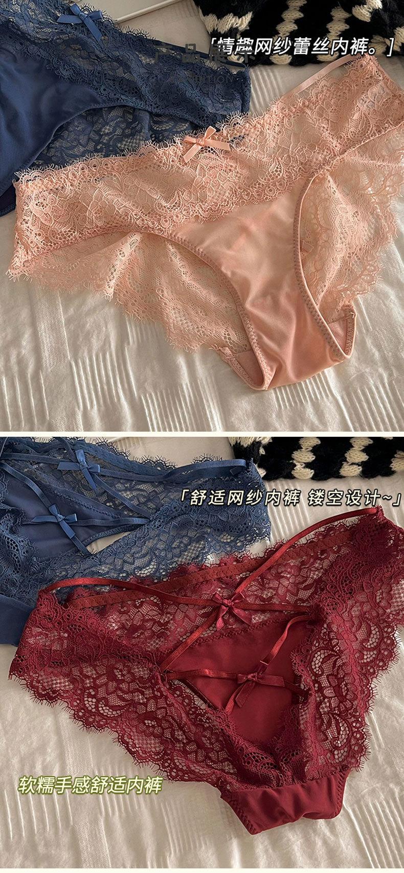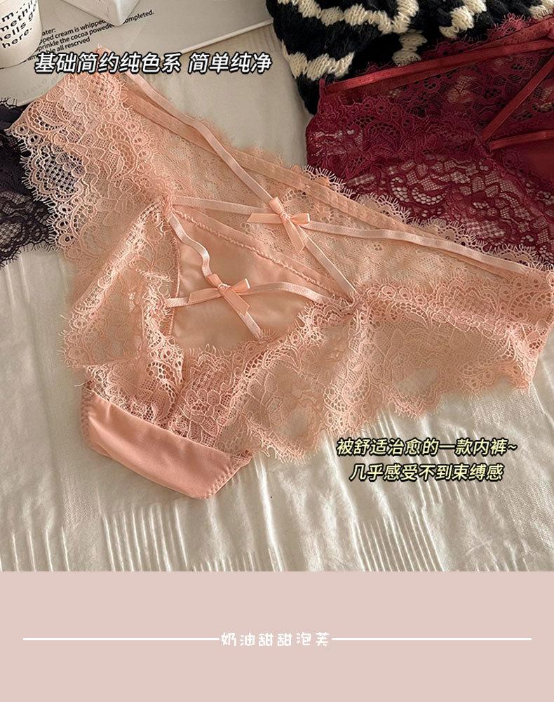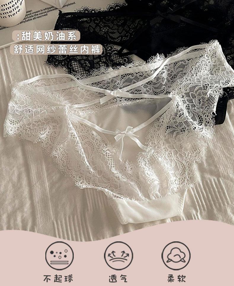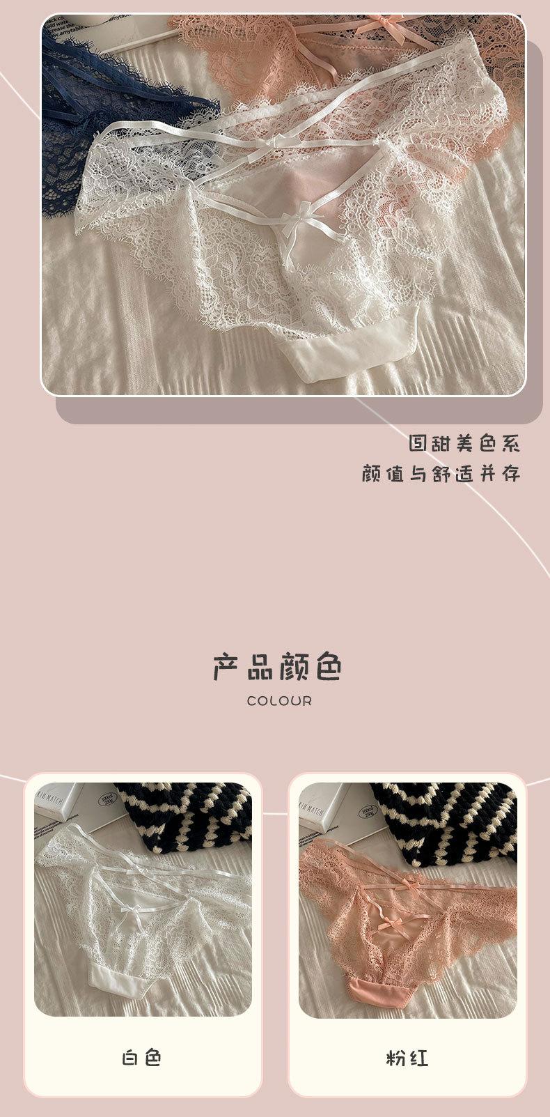 Ropa interior femenina de encaje sexy puro de Jia, bragas bikini de tiro bajo huecas cruzadas, tentación de cadera, triángulo de media cadera