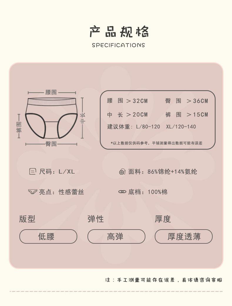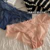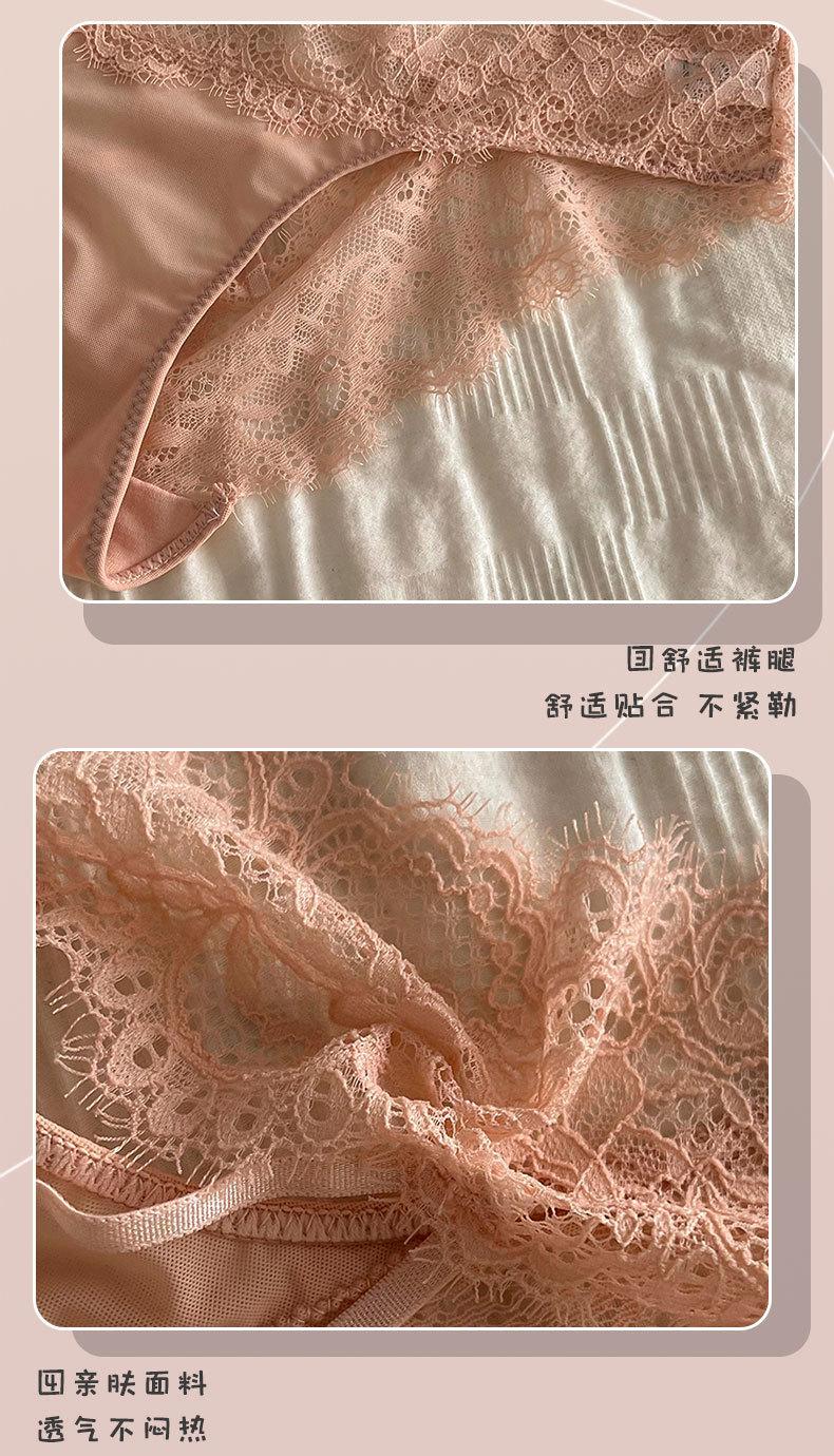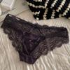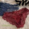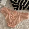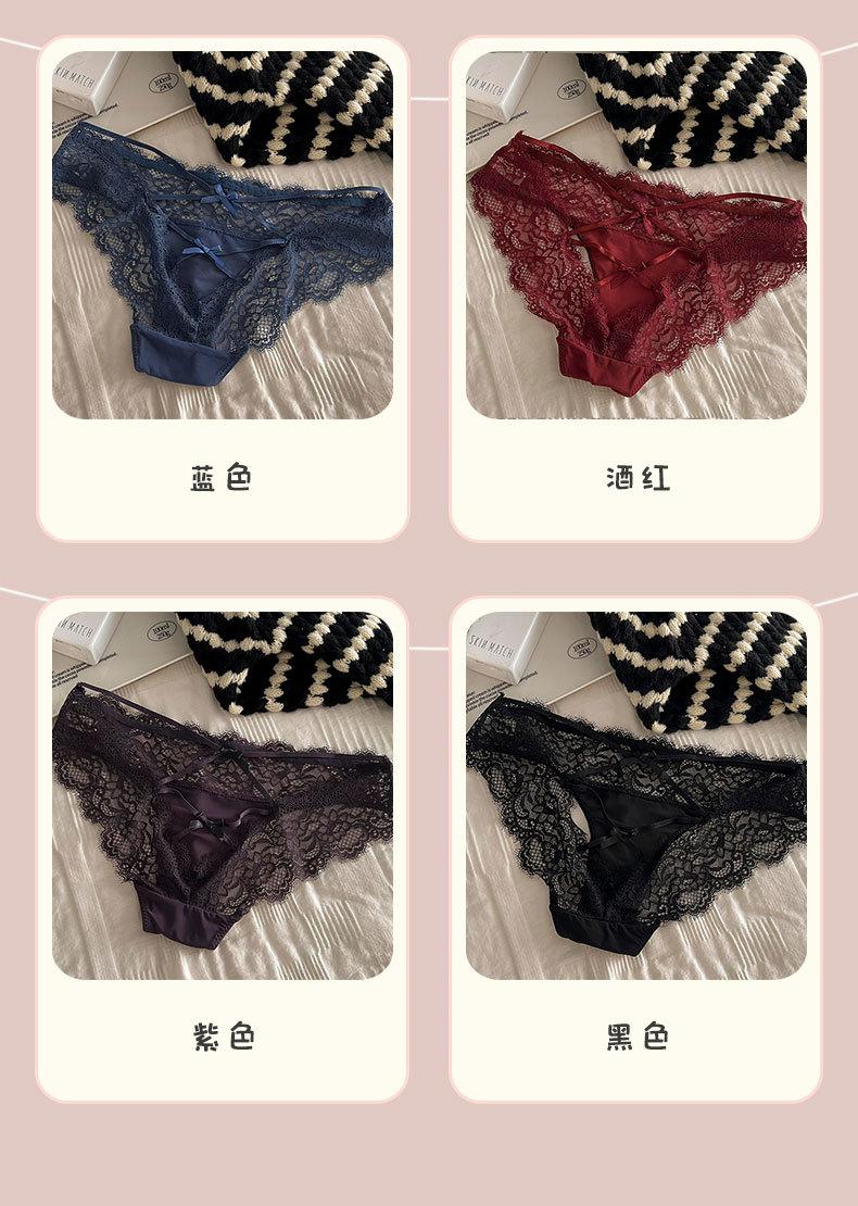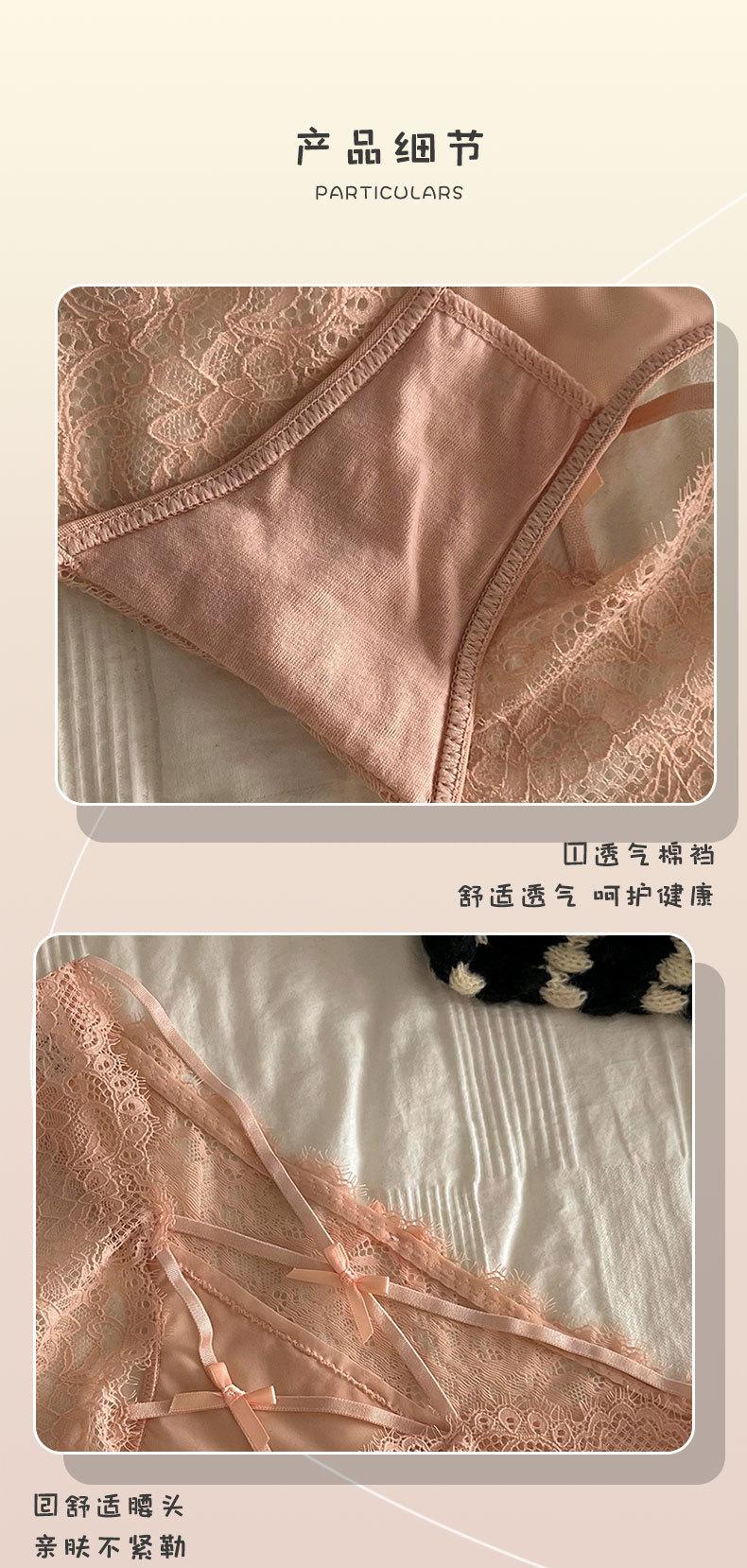 Ropa interior femenina de encaje sexy puro de Jia, bragas bikini de tiro bajo huecas cruzadas, tentación de cadera, triángulo de media cadera