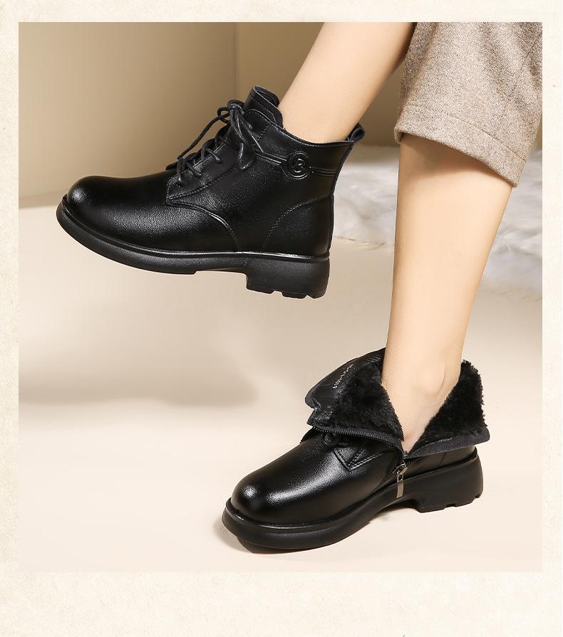 Compra Zapatos de cuero Zapatos de madre Zapatos de algodón de invierno forrados de vellón Otoño e Invierno Botines cálidos Zapatos para mujeres mayores Antideslizantes Zapatos de invierno para mediana edad al por mayor en Joom.pro