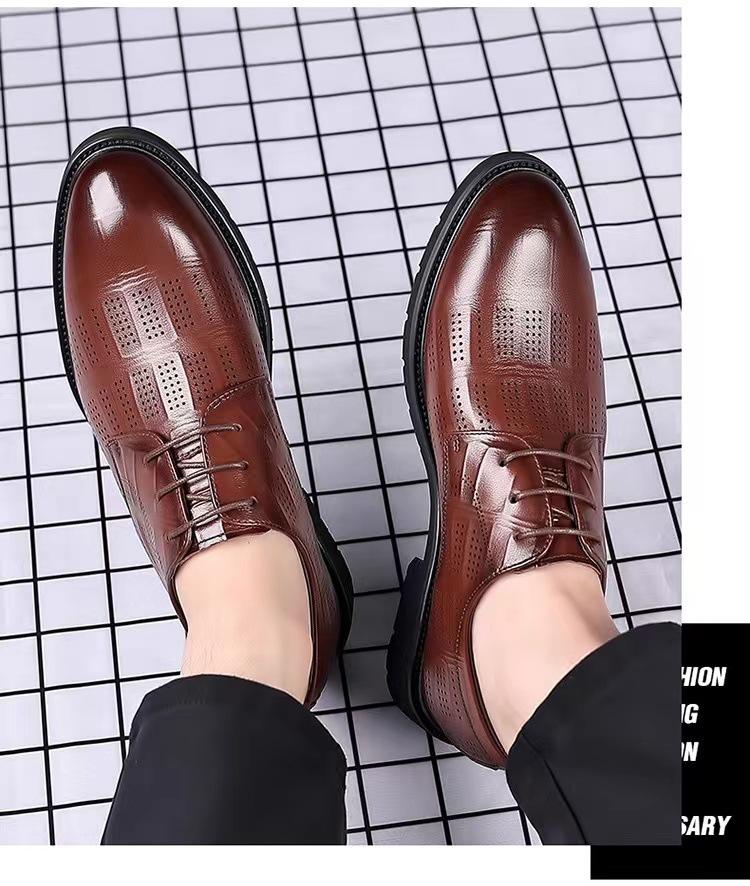 Zapatos de cuero de verano nuevos para hombre, de cuero, formales de negocios, casuales, sandalias de cuero caladas, de alta calidad, británicos, para novio, zapatos de boda