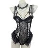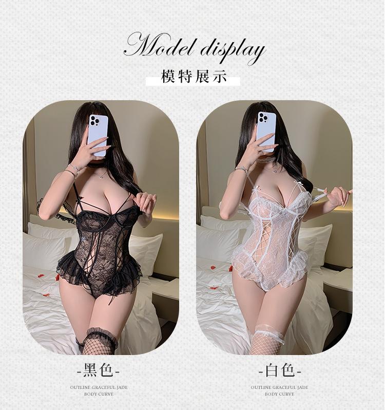 Ropa Interior Sexy Europea y Americana Ropa de Tentación Sexy Malla Encaje Mono Traje de talla grande Traje Sling con Entrepierna Abierta