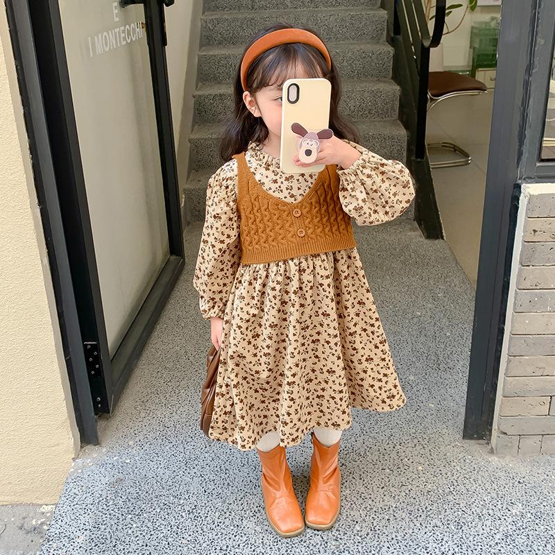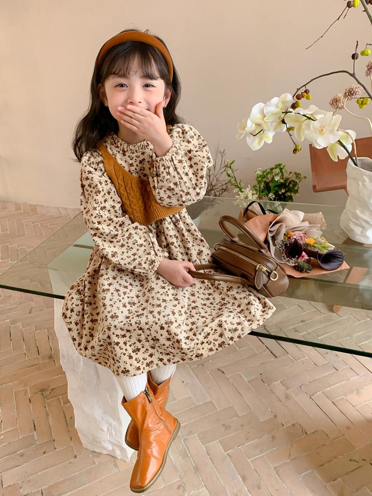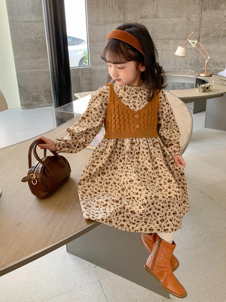 | Vestido de princesa estilo pastoral para niñas, verano 2024, vestido de manga corta con estampado floral para niñas, comercio exterior, venta al por mayor transfronteriza |