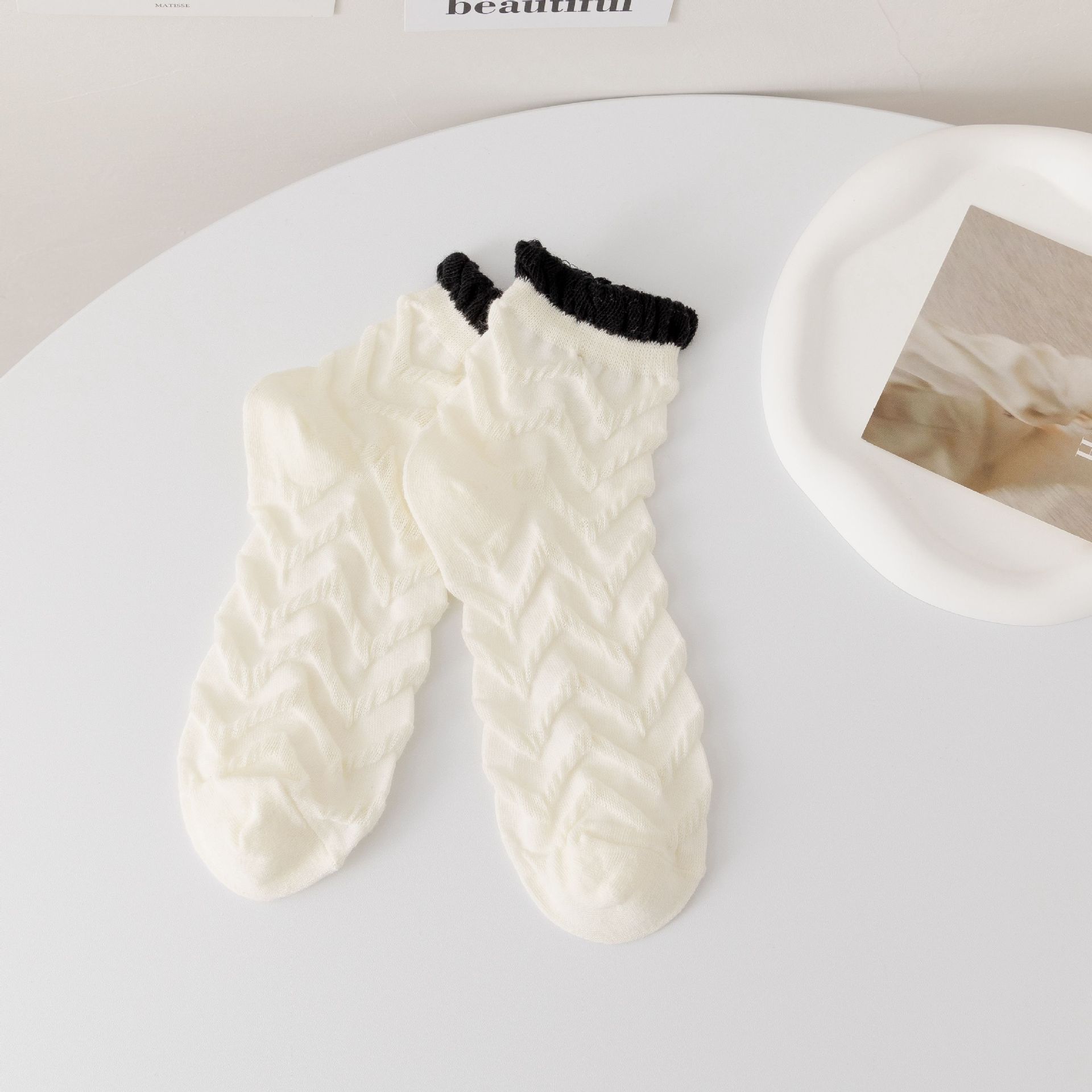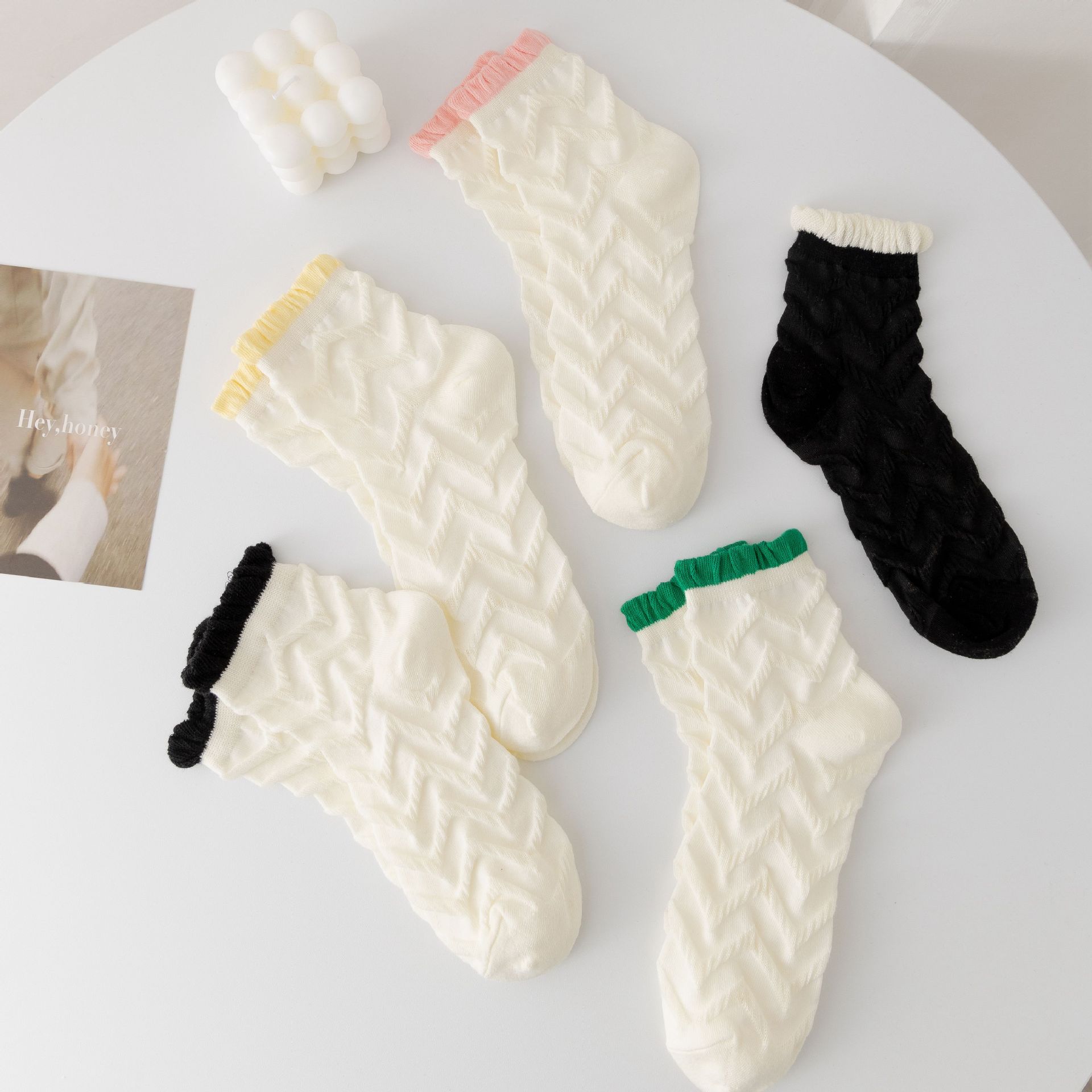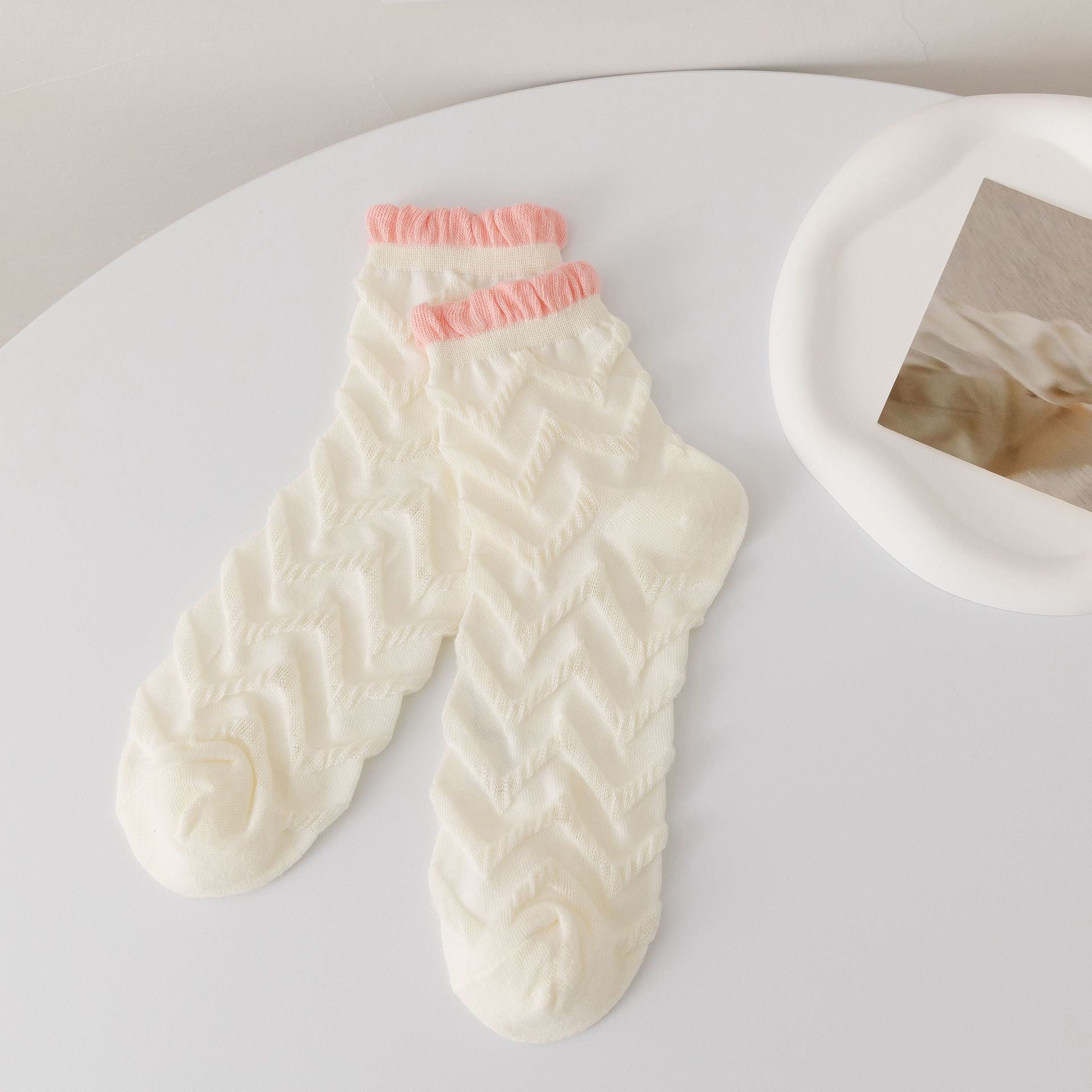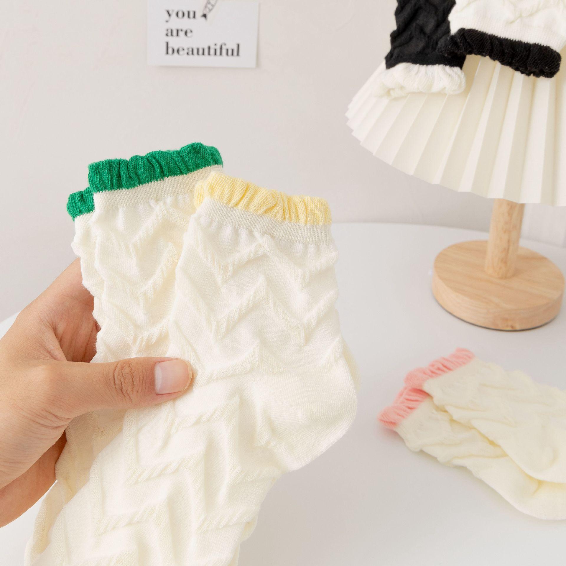 Calcetines de Mujer Color Boca Patrón de Onda Medianos Largos Japoneses Boca de Burbuja Delgados Primavera y Verano Lindos Boca Corta Modernos Calcetines de Algodón