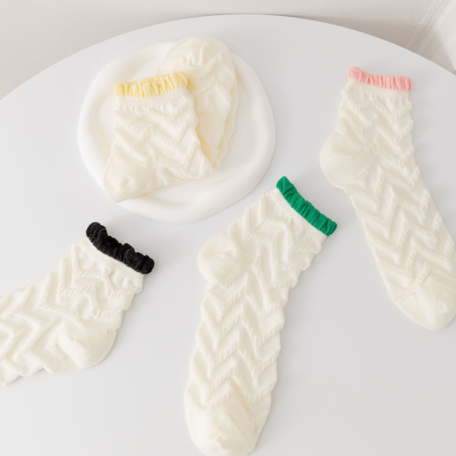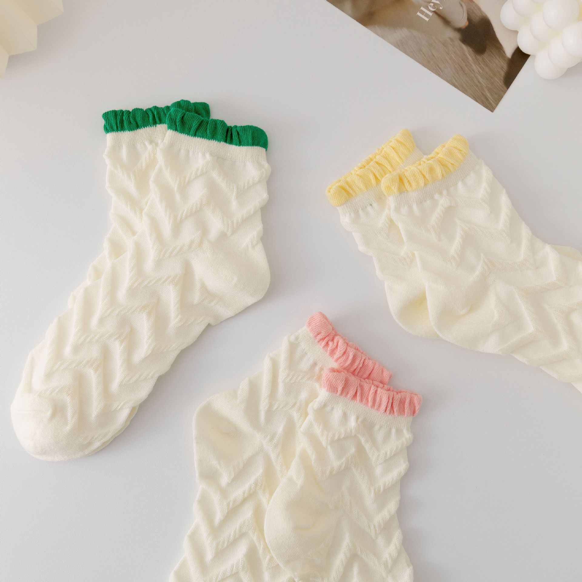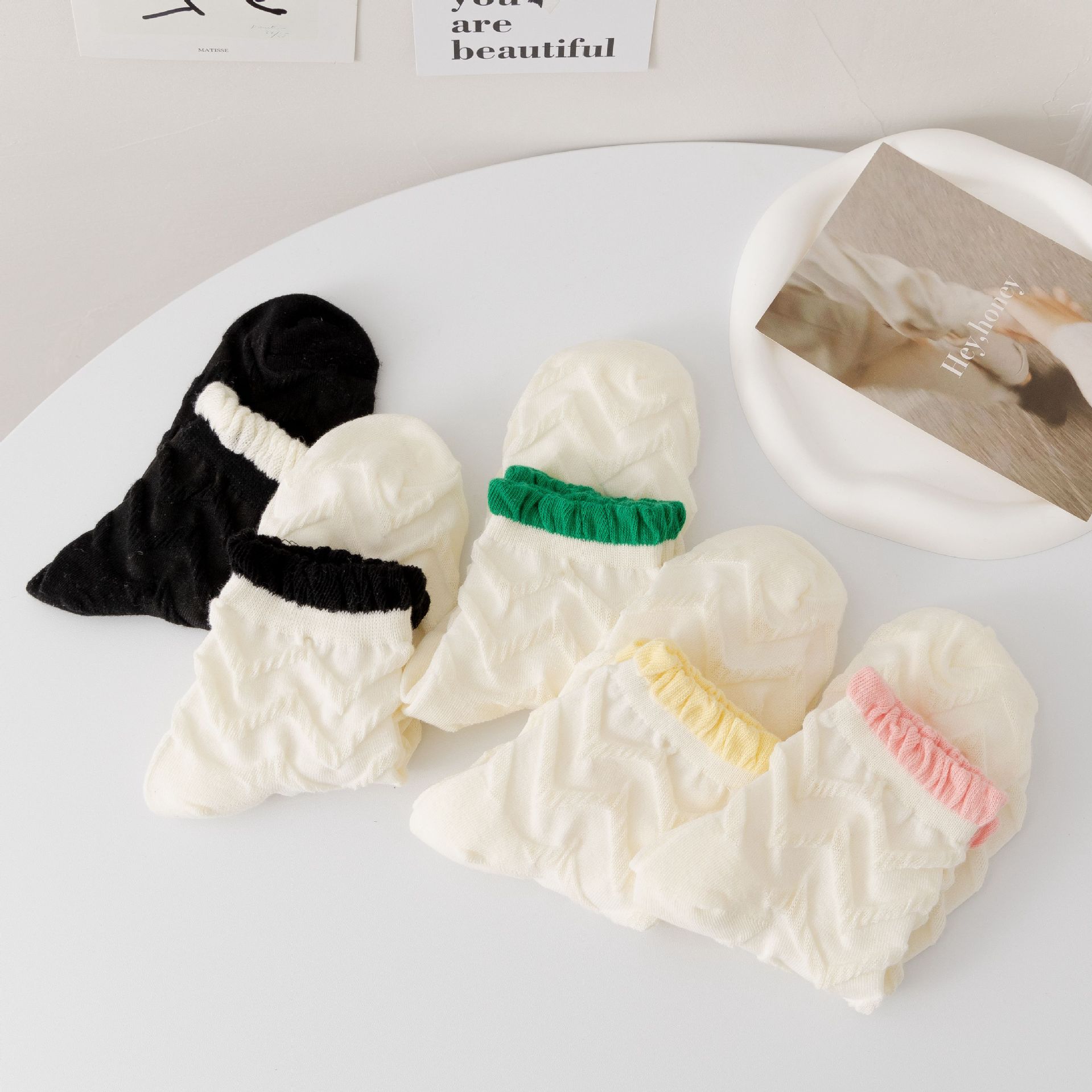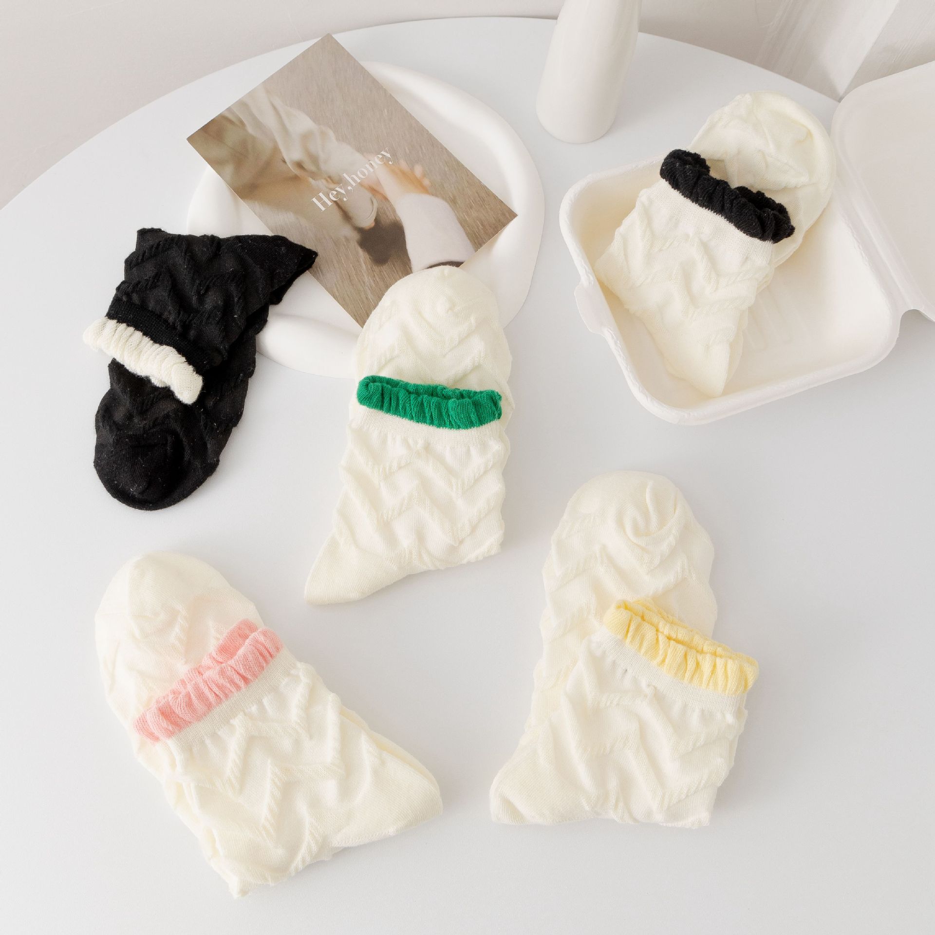 Calcetines de Mujer Color Boca Patrón de Onda Medianos Largos Japoneses Boca de Burbuja Delgados Primavera y Verano Lindos Boca Corta Modernos Calcetines de Algodón