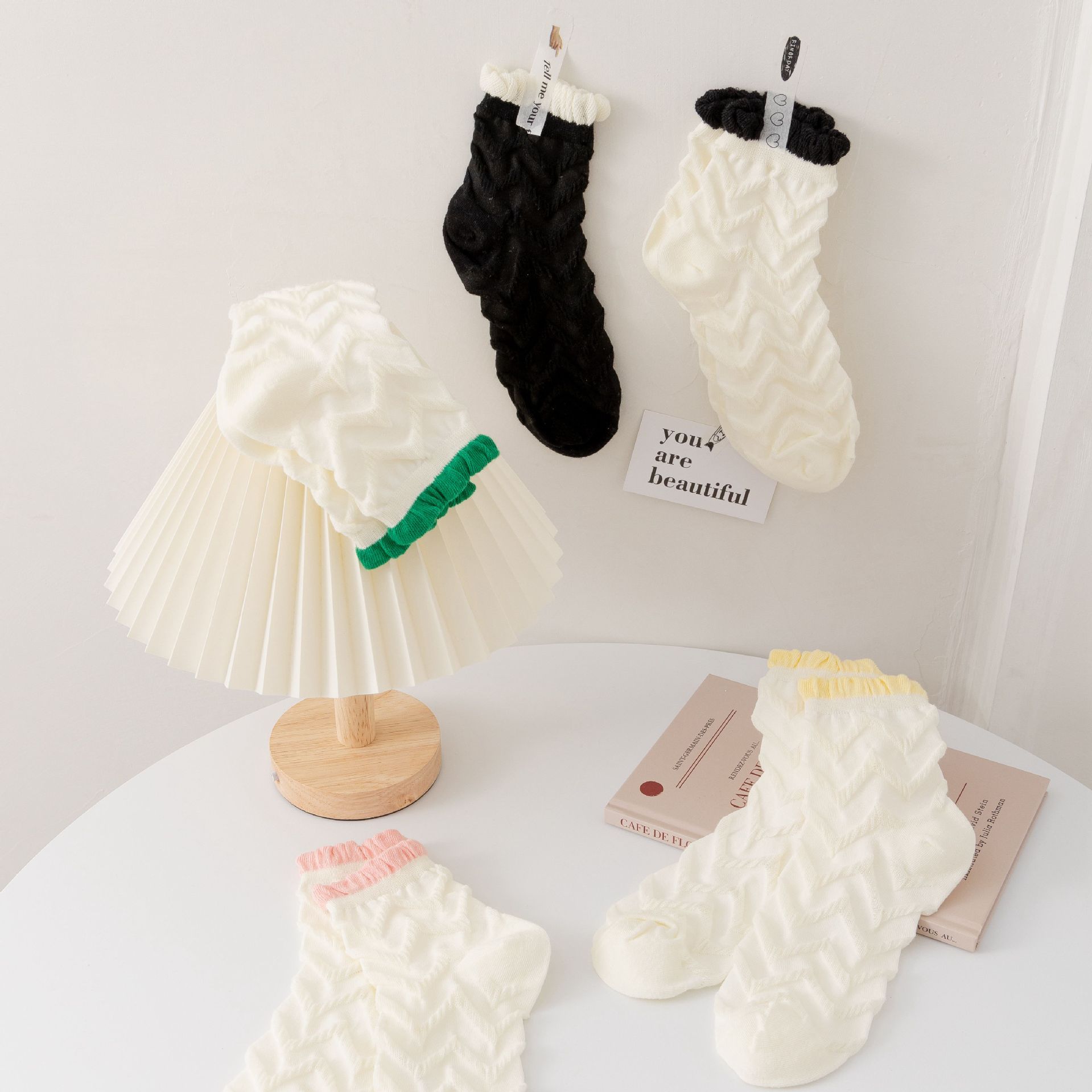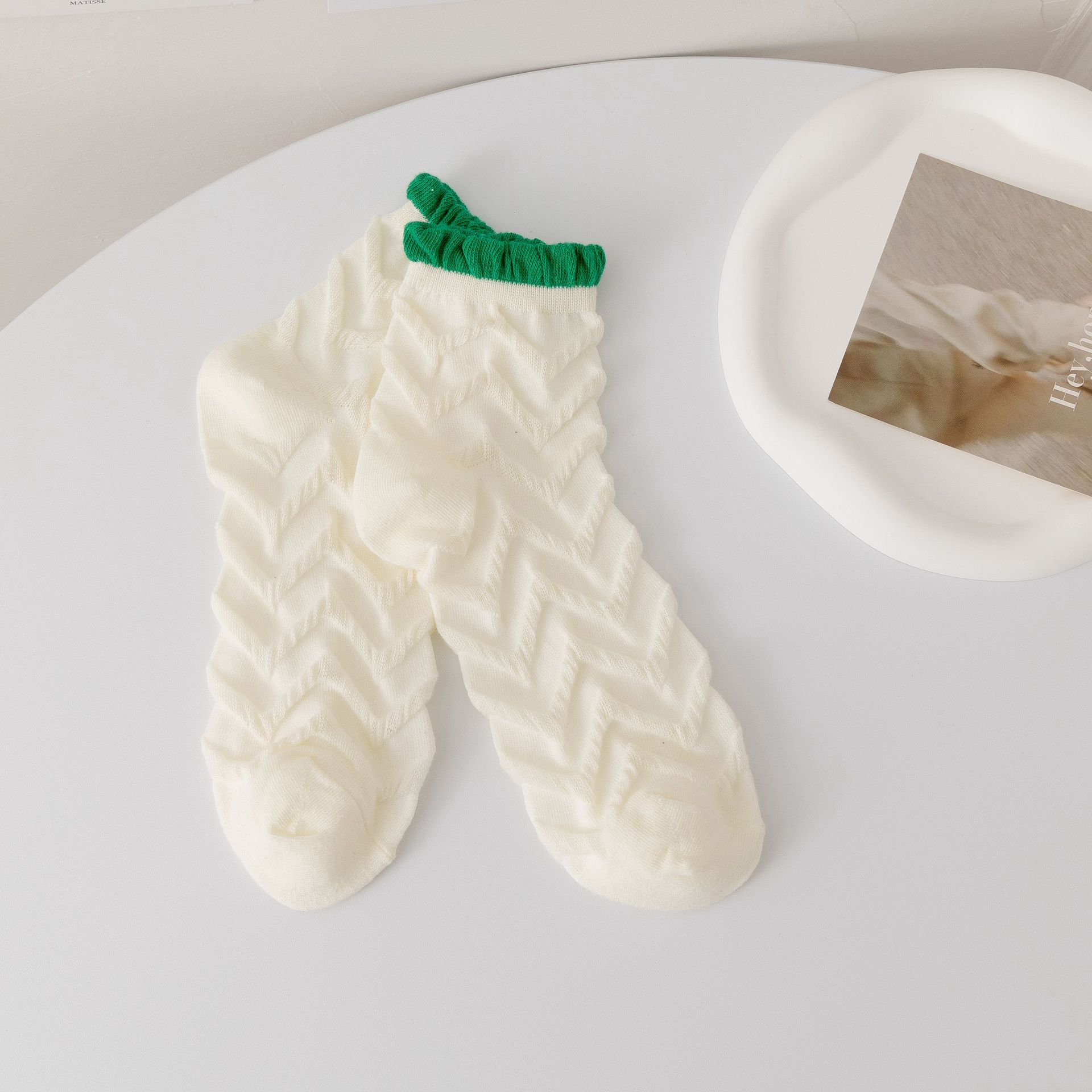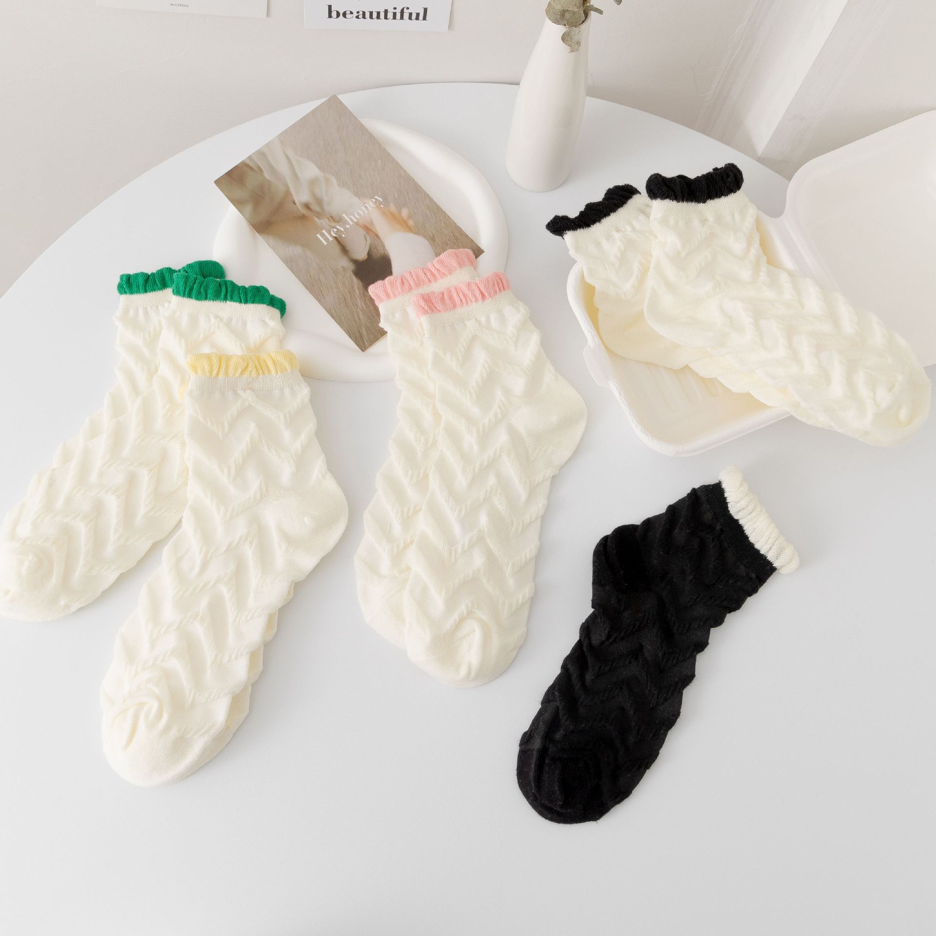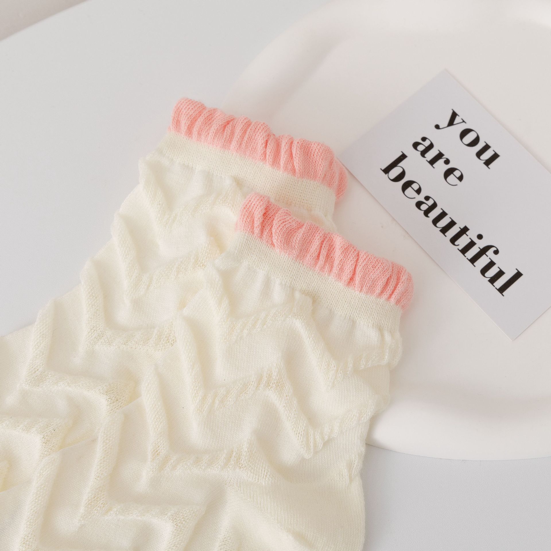Calcetines de Mujer Color Boca Patrón de Onda Medianos Largos Japoneses Boca de Burbuja Delgados Primavera y Verano Lindos Boca Corta Modernos Calcetines de Algodón