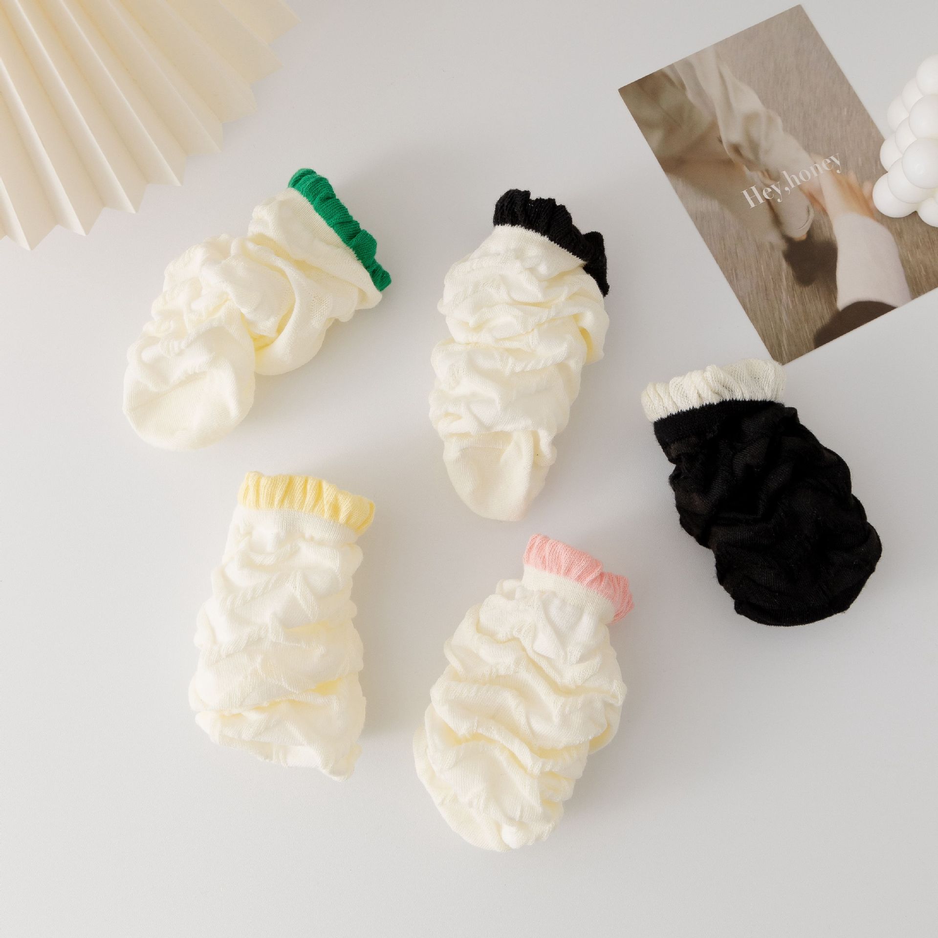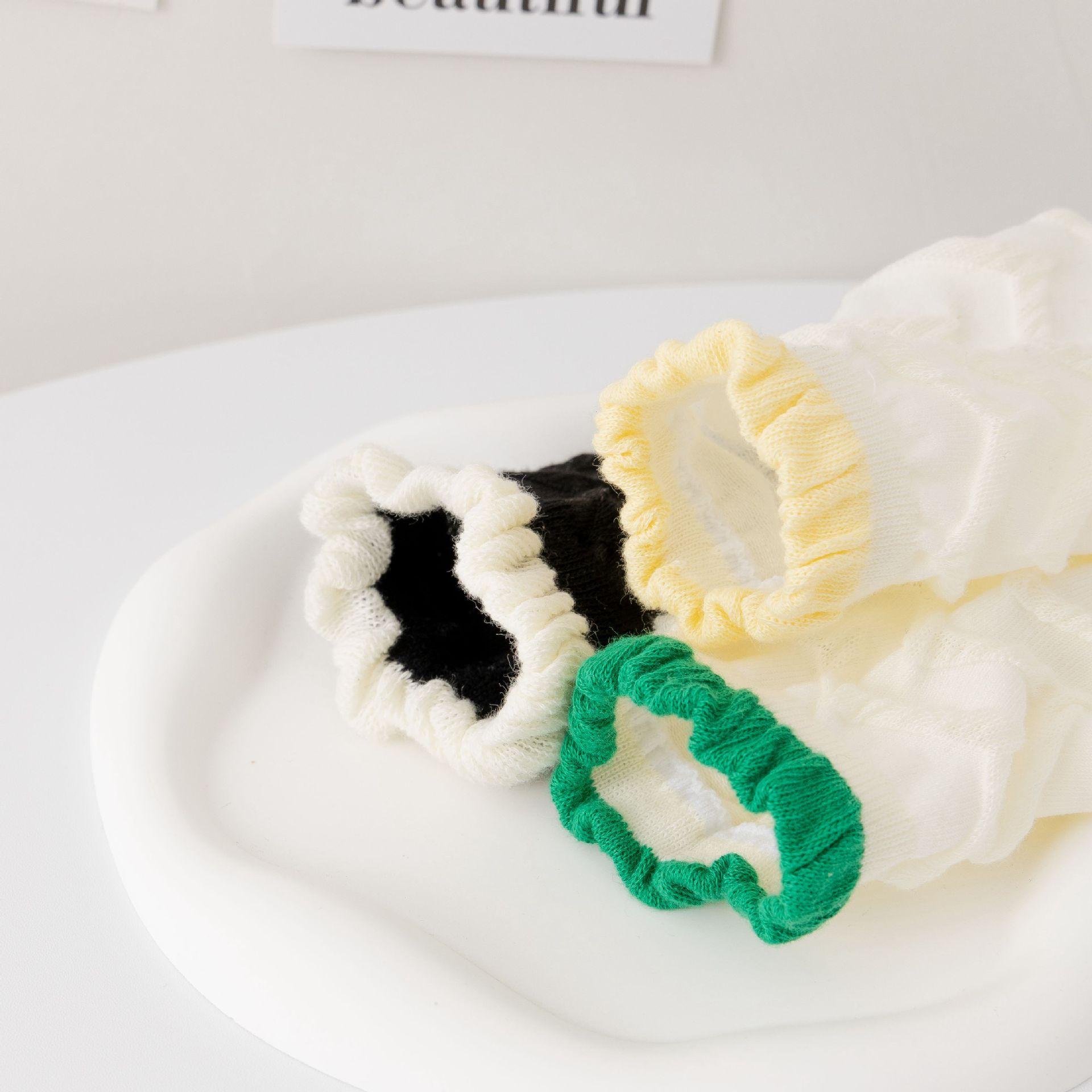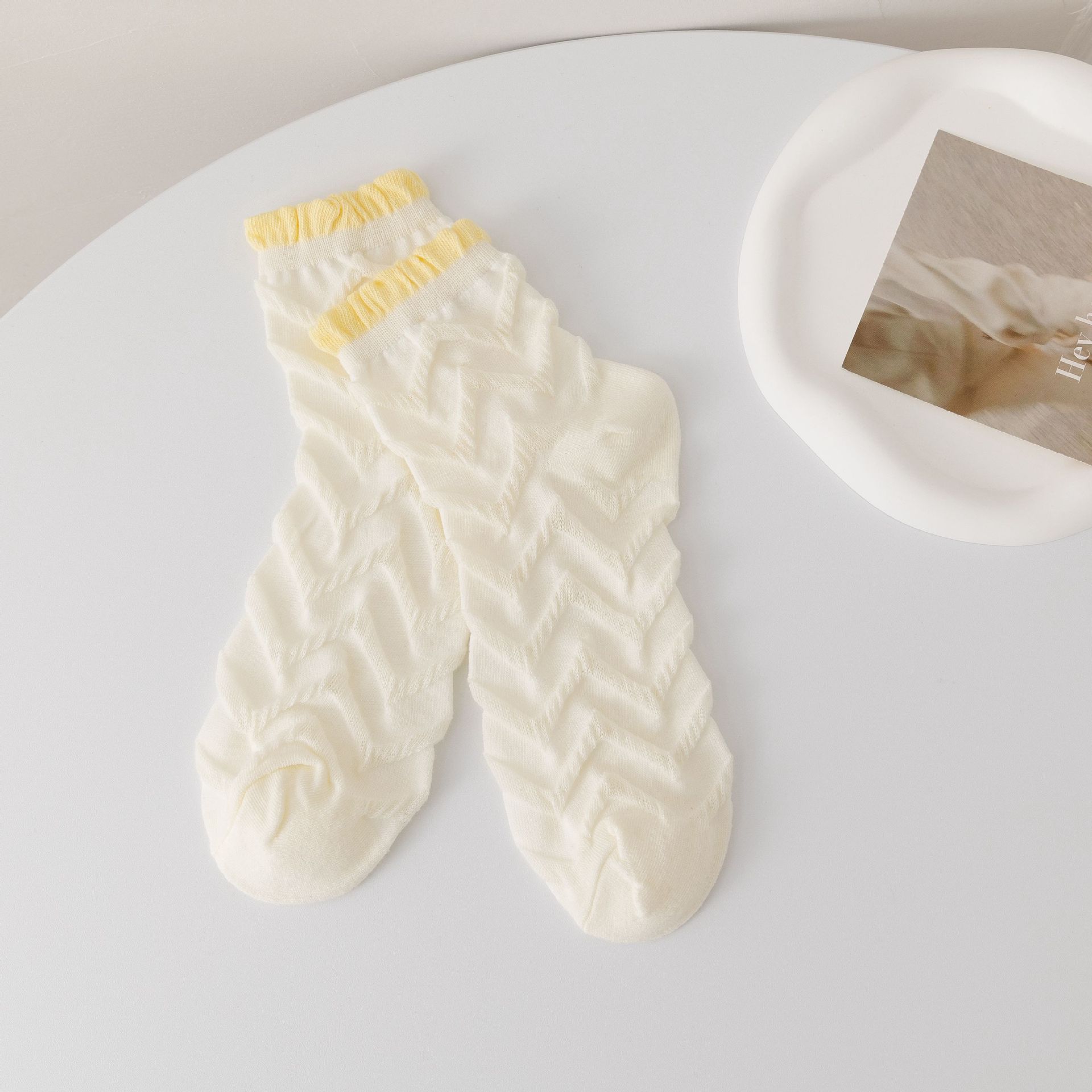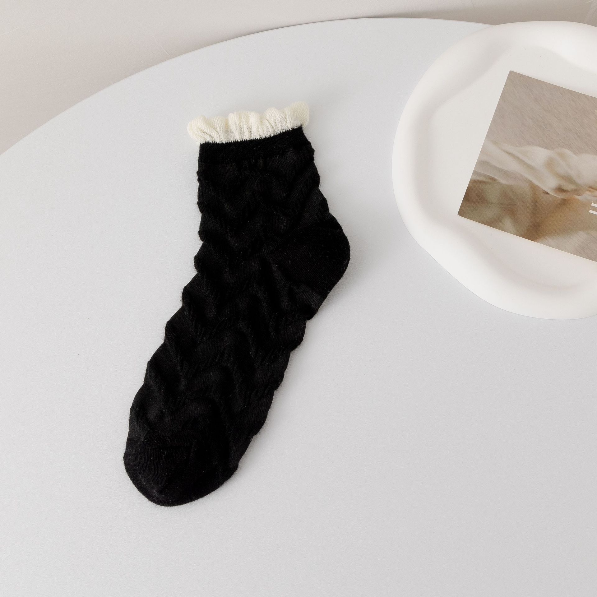 Calcetines de Mujer Color Boca Patrón de Onda Medianos Largos Japoneses Boca de Burbuja Delgados Primavera y Verano Lindos Boca Corta Modernos Calcetines de Algodón