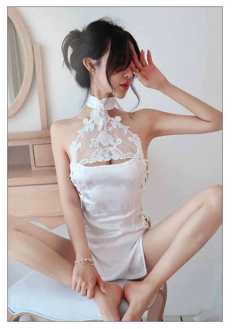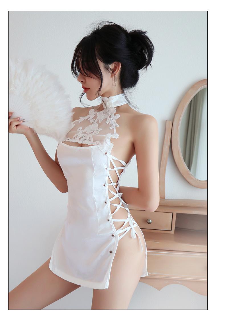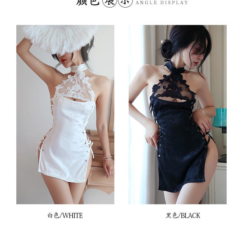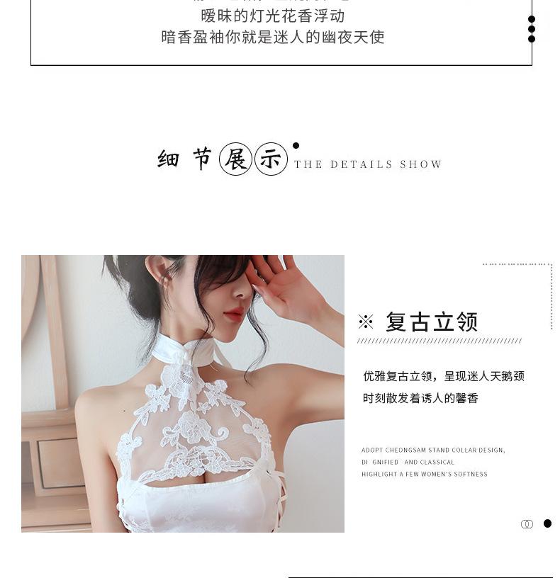 Lencería sexy de noche larga, perspectiva retro sexy, uniforme cheongsam de encaje hueco, tentación generación 1801