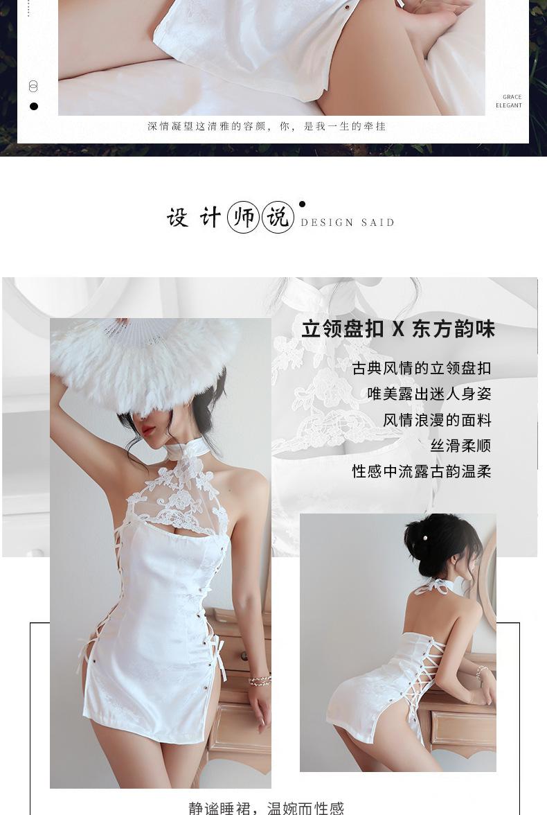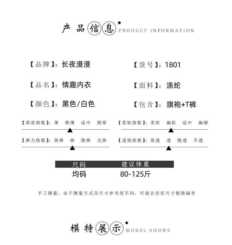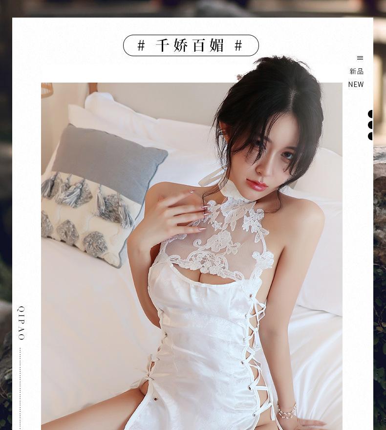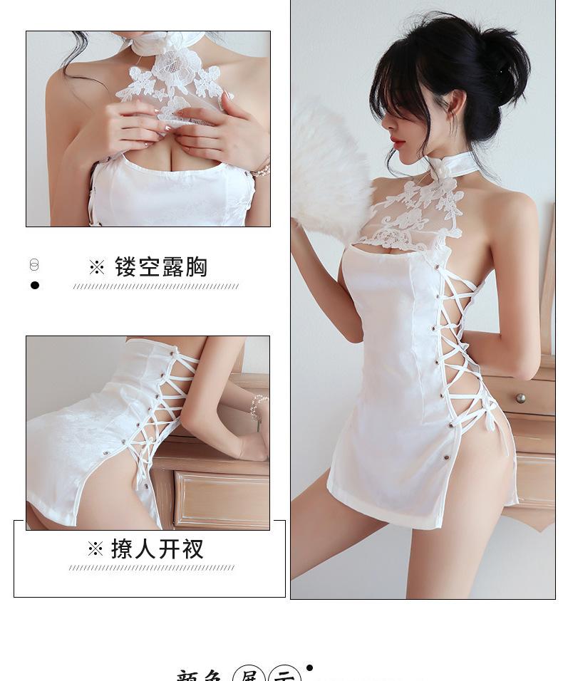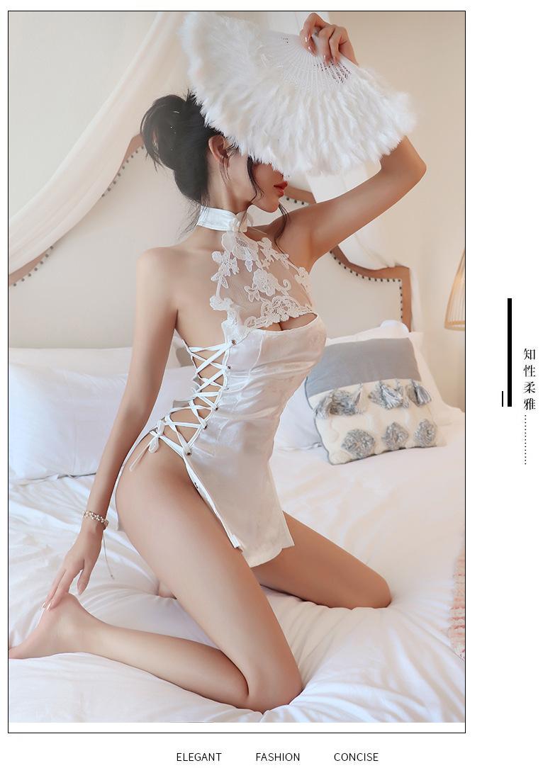 Lencería sexy de noche larga, perspectiva retro sexy, uniforme cheongsam de encaje hueco, tentación generación 1801