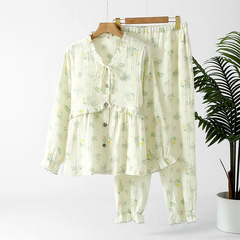 Compra Conjunto de pijama de lactancia para mujer, de algodón puro, nuevo, de doble capa, fino, para primavera, otoño y verano, para embarazo, posparto y lactancia. al por mayor en Joom.pro
