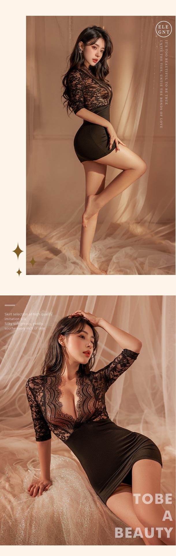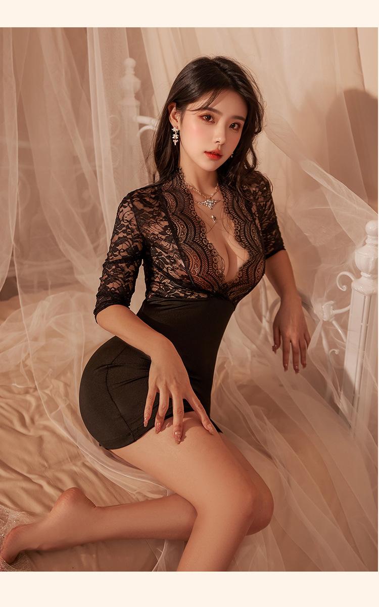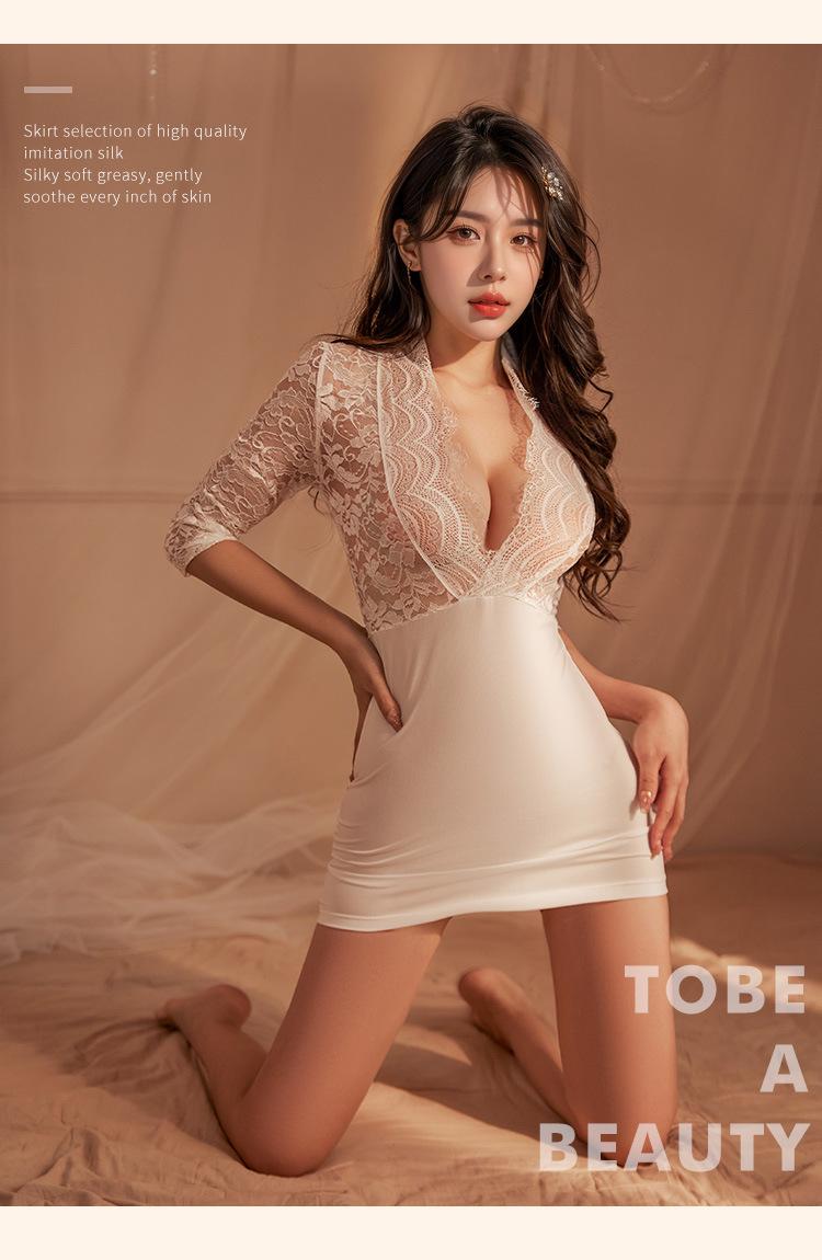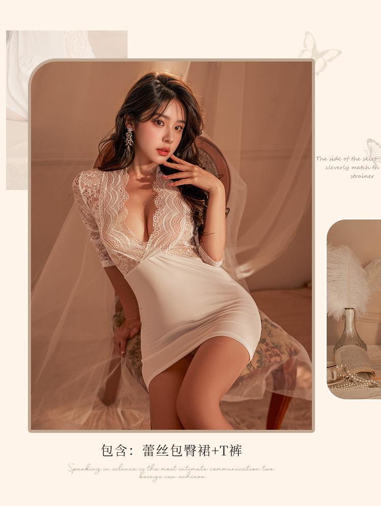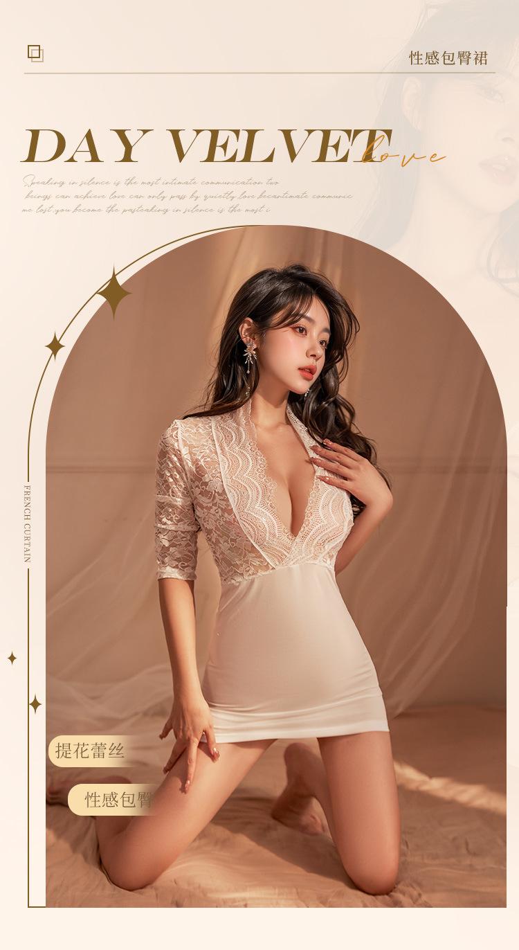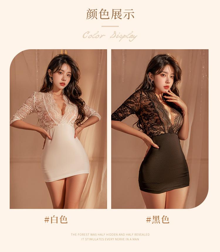 Ropa interior sexy, falda ajustada a la cadera, uniforme de secretaria sexy, tentador escote en V profundo, perspectiva de encaje, vestido de pura lujuria