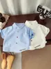 Camisa informal de manga corta a cuadros para niños, color azul, suave y transpirable, para el hogar