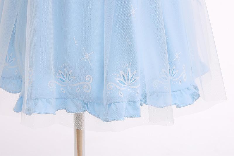 Vestido de princesa Elsa de Frozen de manga corta colorido, ropa infantil de comercio exterior, vestido de niña, disfraz de actuación para el Día del Niño