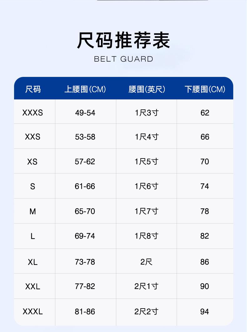 Xxxs (waist 50-55), Xxs (waist 55-60), Xs (waist 60-65), S (waist 65-70), M (waist 70-75), L (waist 75-80), Xl...