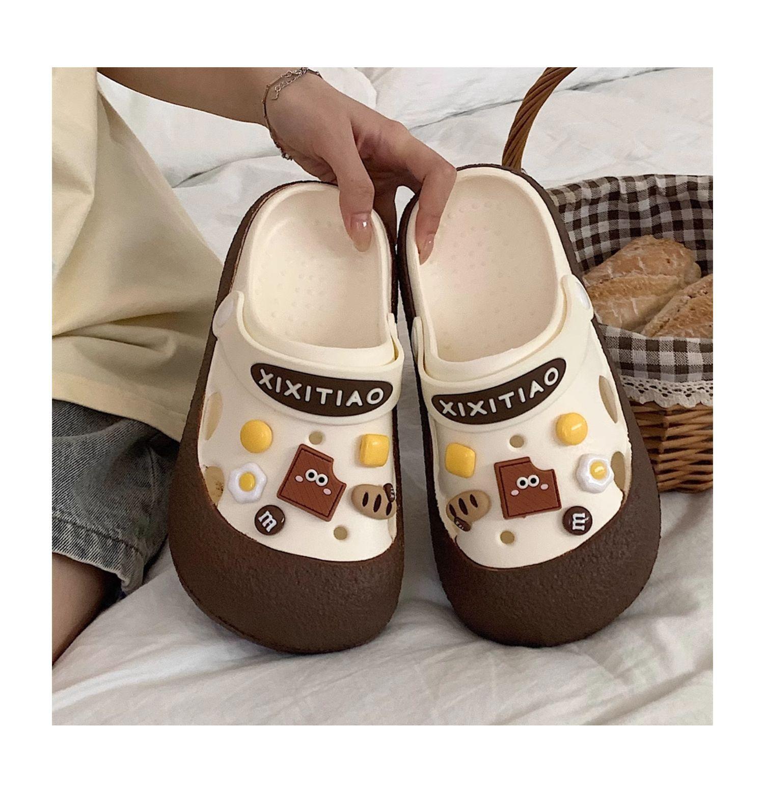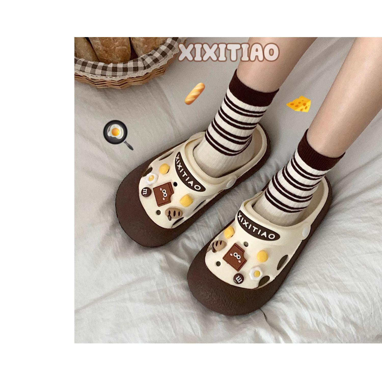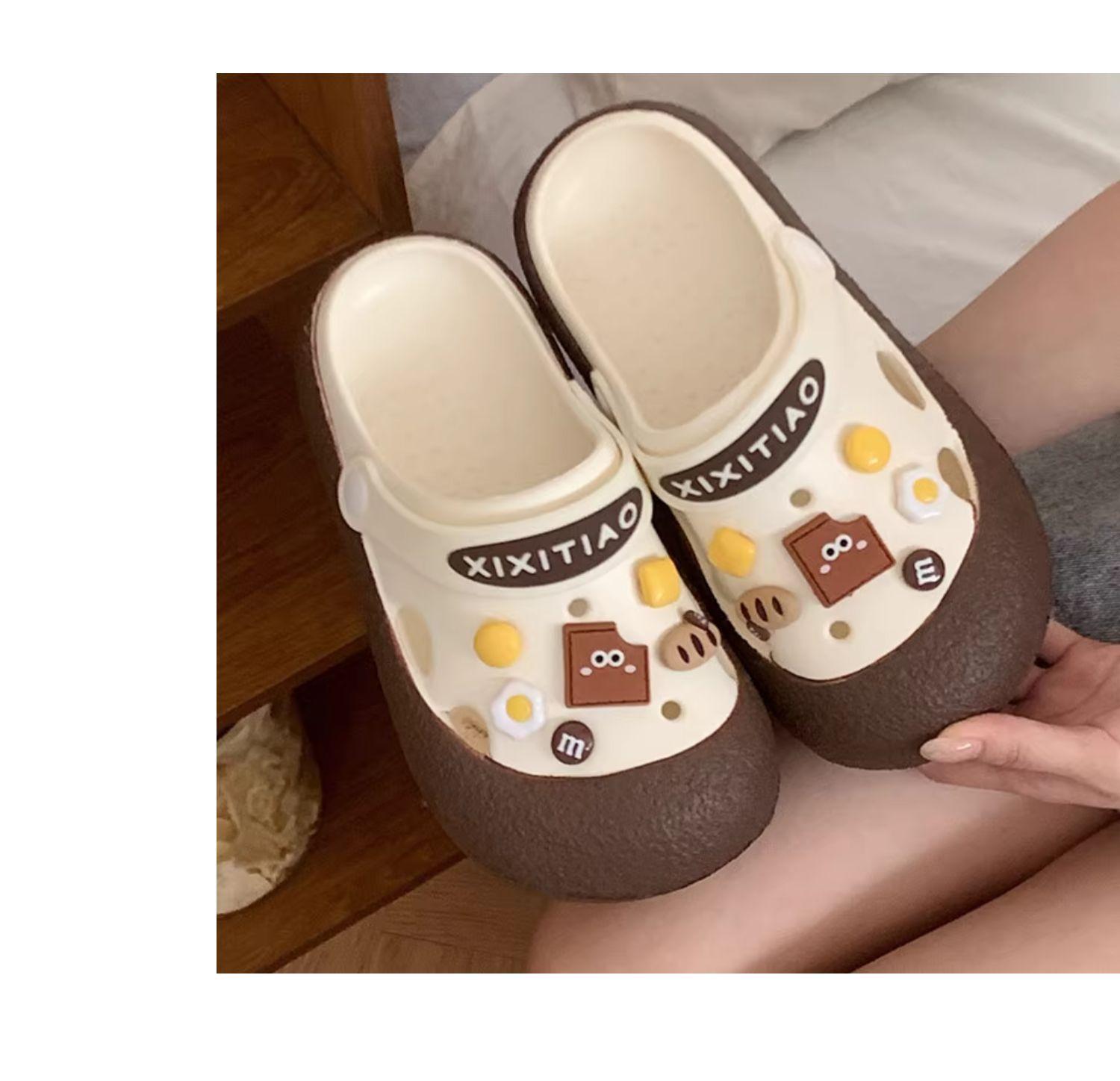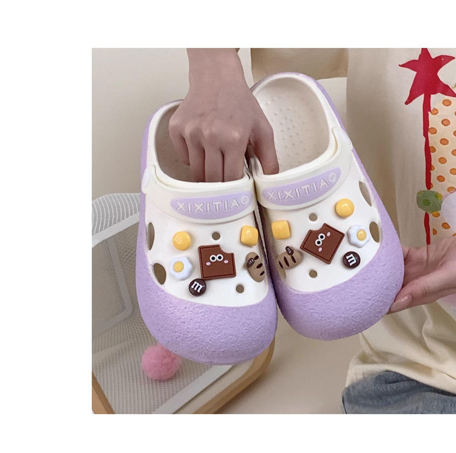 Ropa de Exterior Nueva Celebridad de Internet Galletas Lindas Sandalias de Verano Moda de Mujer Playa Marítima Combinación de Colores Suela Suave Cómodos Zapatos con Agujeros