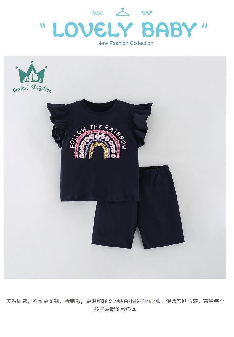 Conjunto de dos piezas de camiseta y pantalón corto de verano para niña de Forestkingdom.