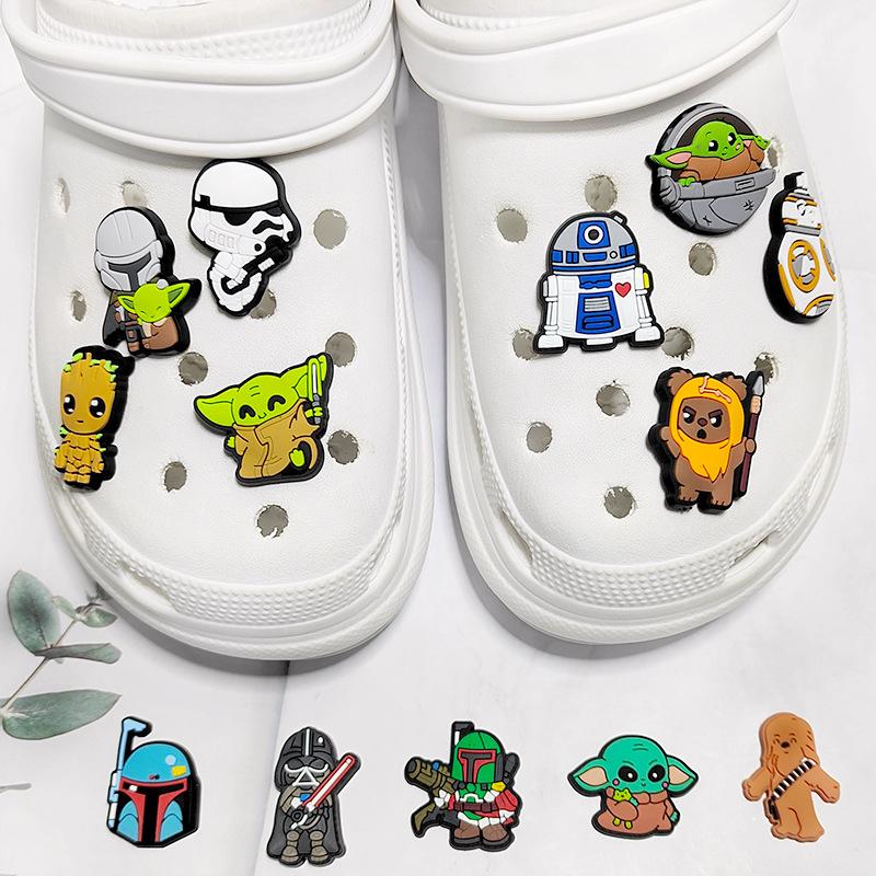 Zapatos de Star Wars Yoda con agujeros totales, desmontables, con flores, de PVC, con pegamento flexible, venta al por mayor transfronteriza, exclusivos para nuevos productos.