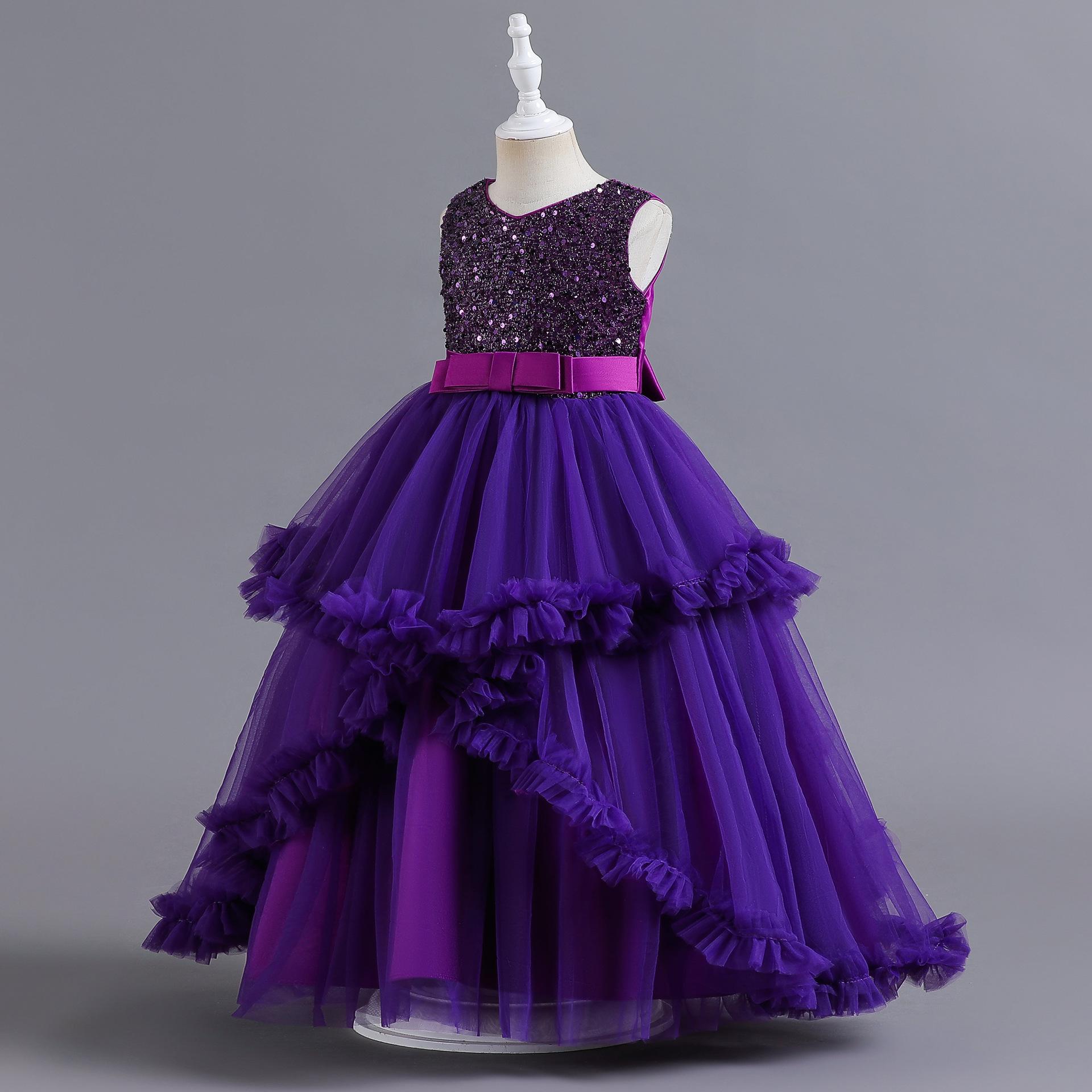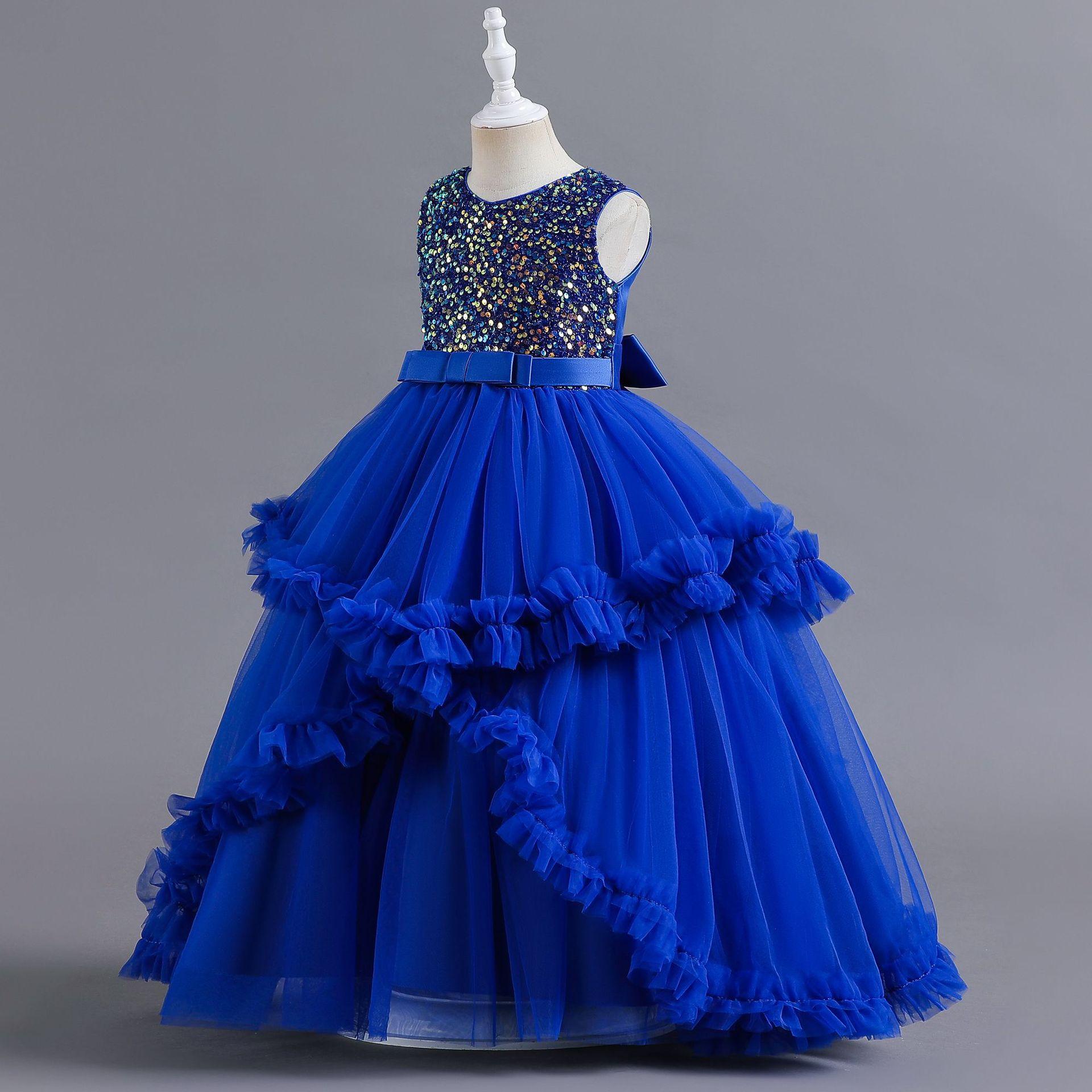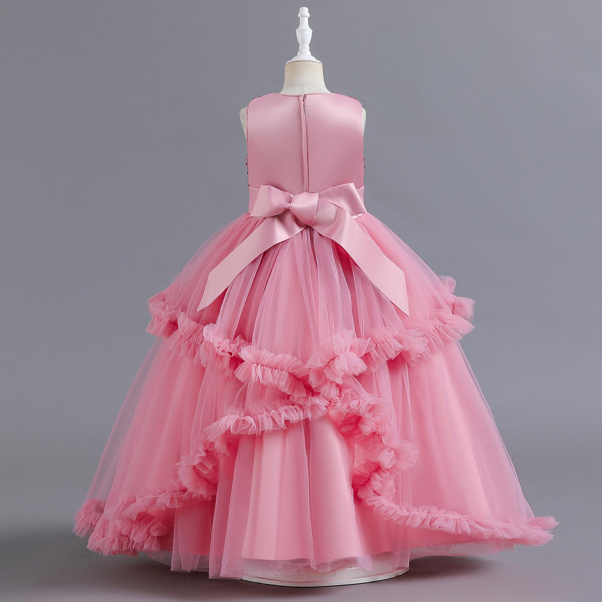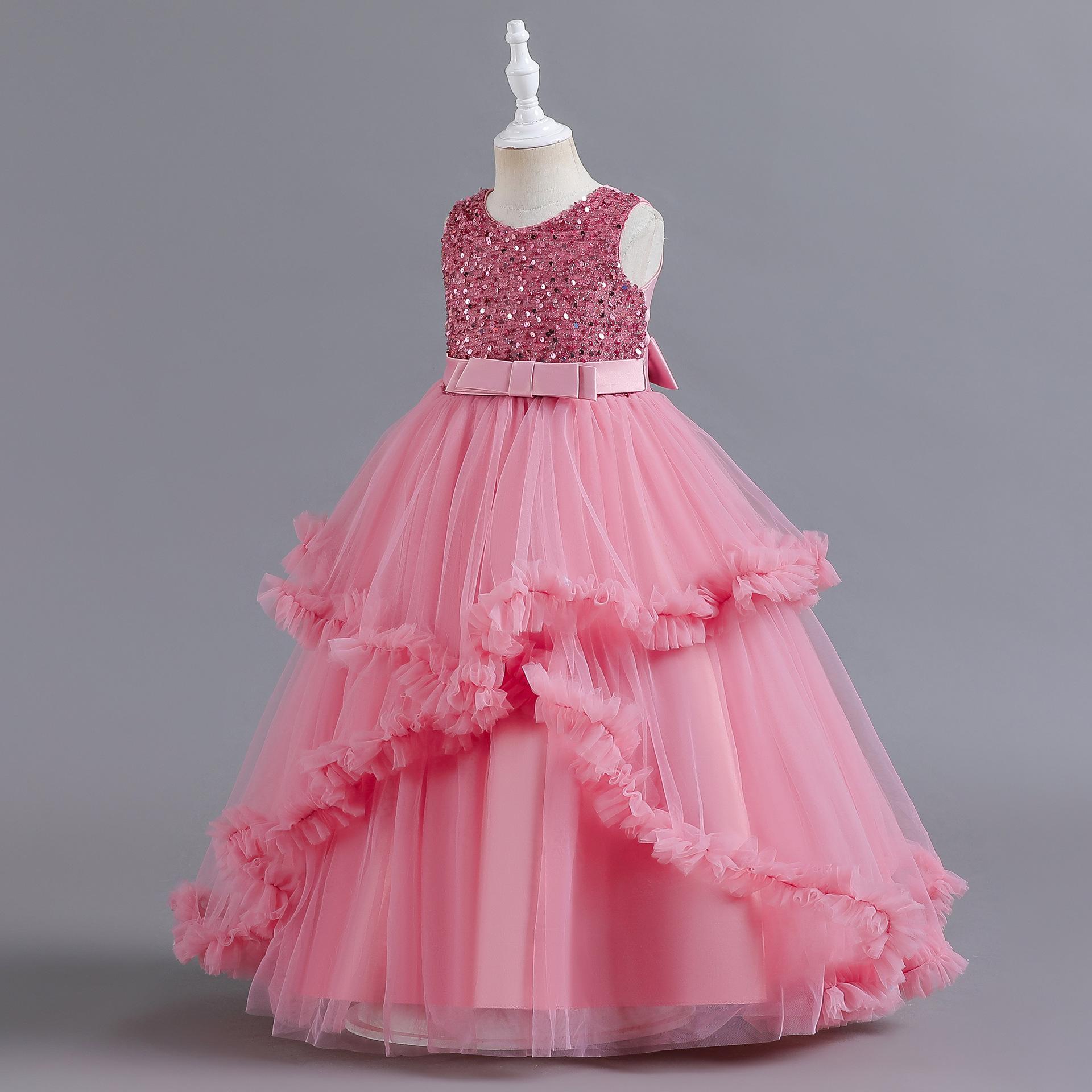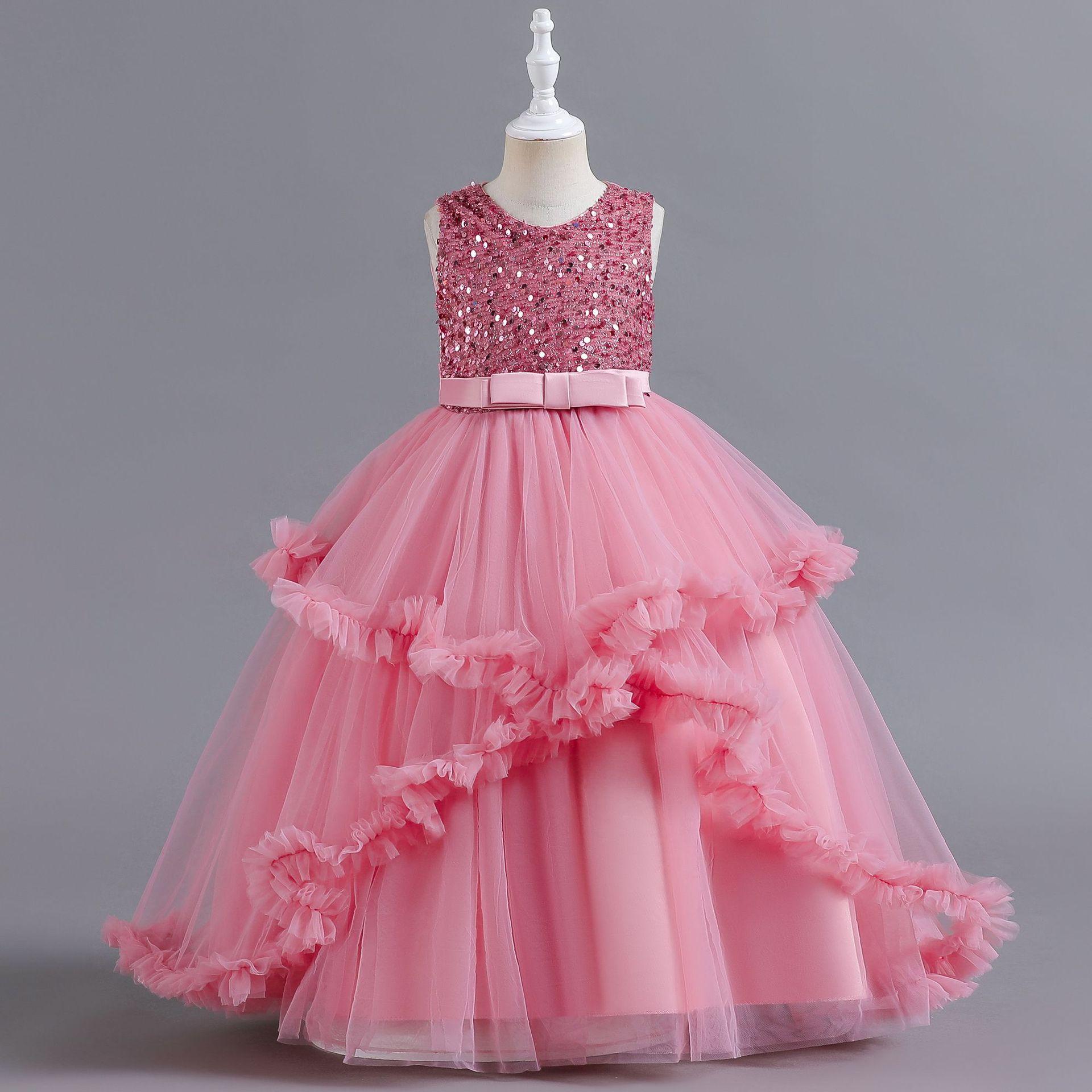 Vestido para Niña de Comercio Exterior de Amazon Vestido Largo Irregular de Malla con Volantes Vestido sin Mangas con Lentejuelas para Niña