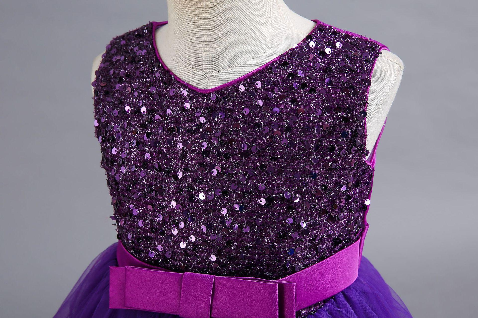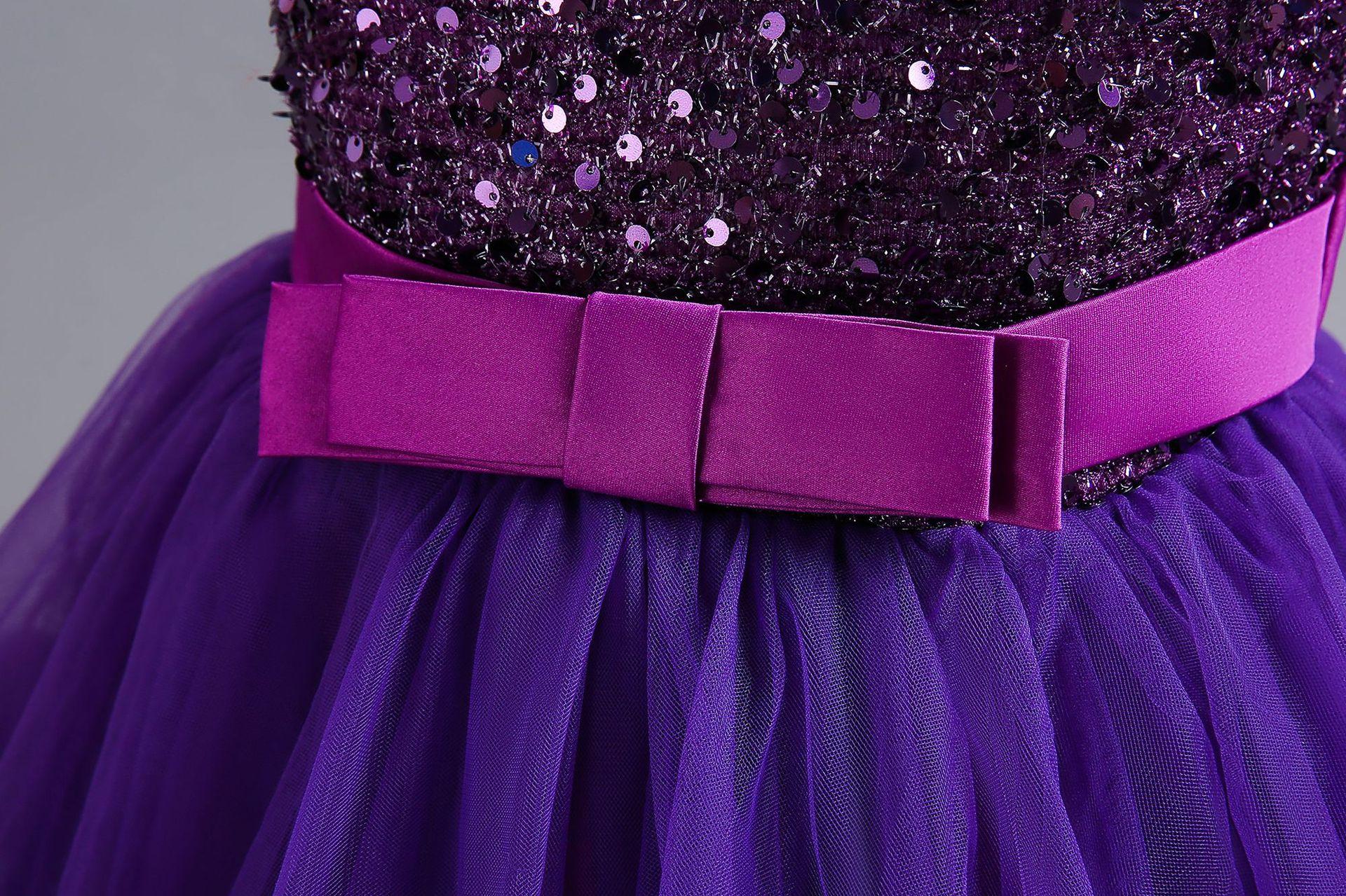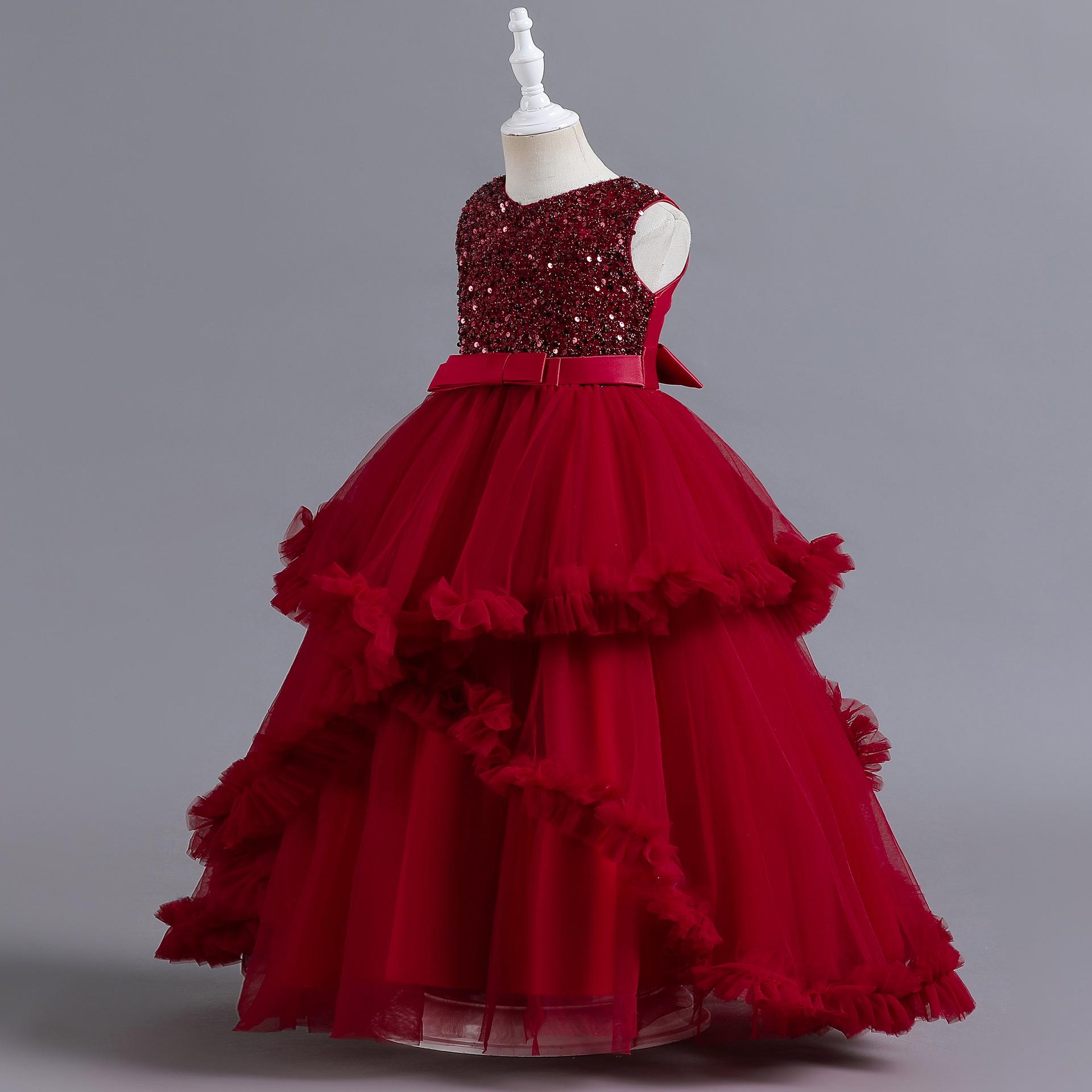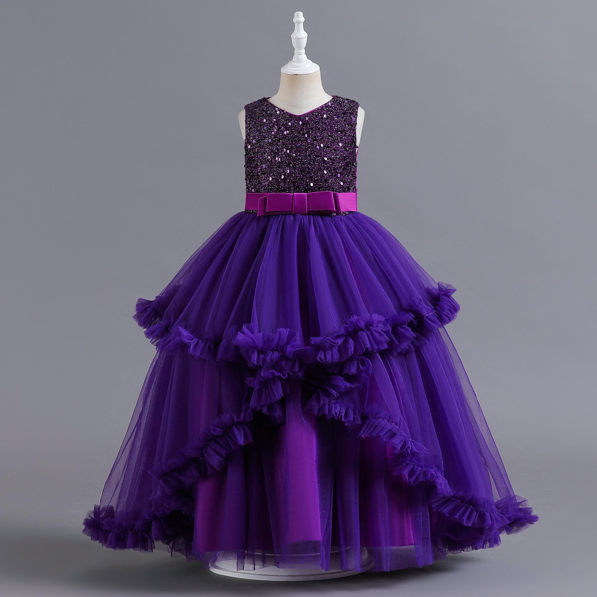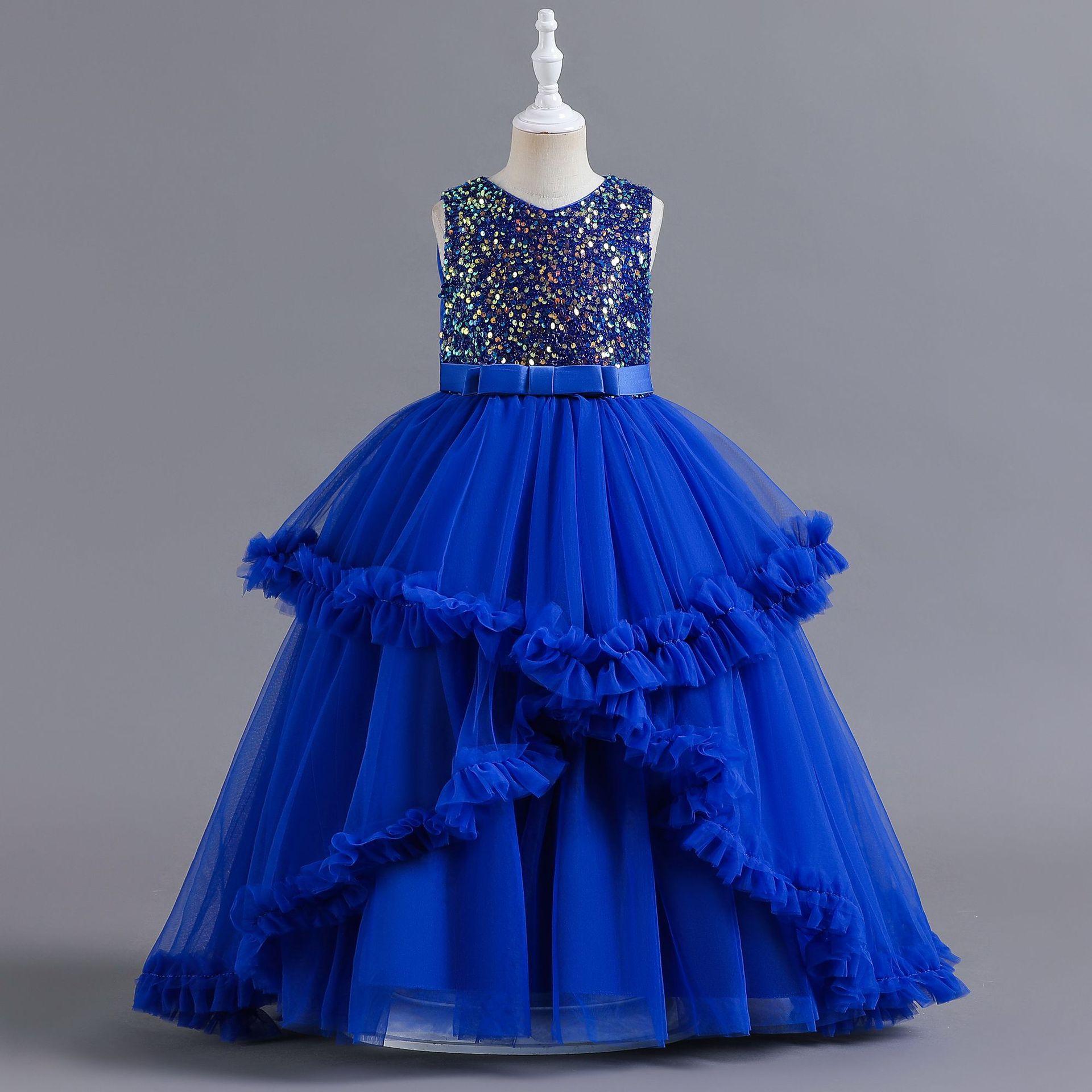 Vestido para Niña de Comercio Exterior de Amazon Vestido Largo Irregular de Malla con Volantes Vestido sin Mangas con Lentejuelas para Niña