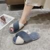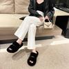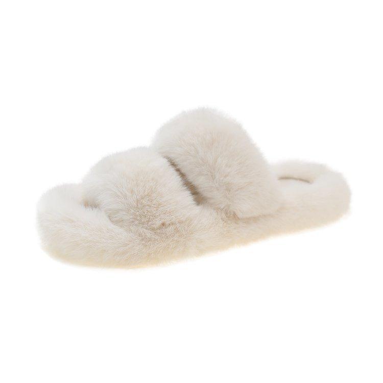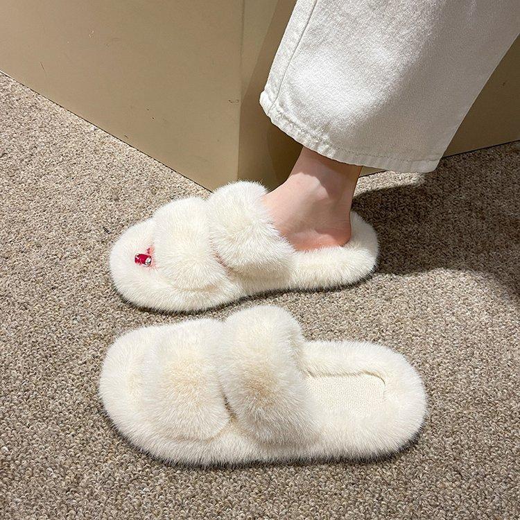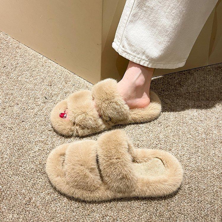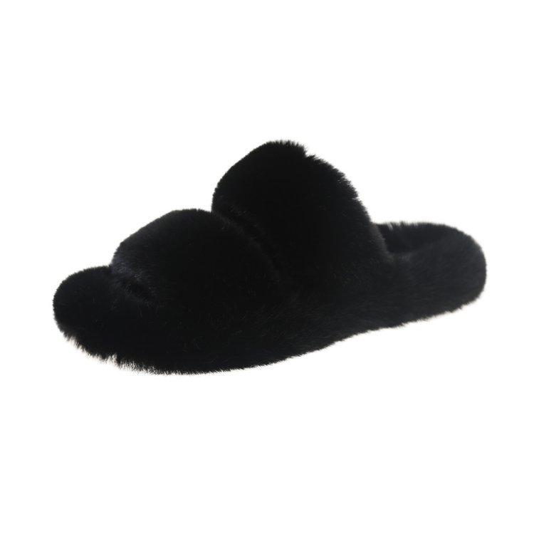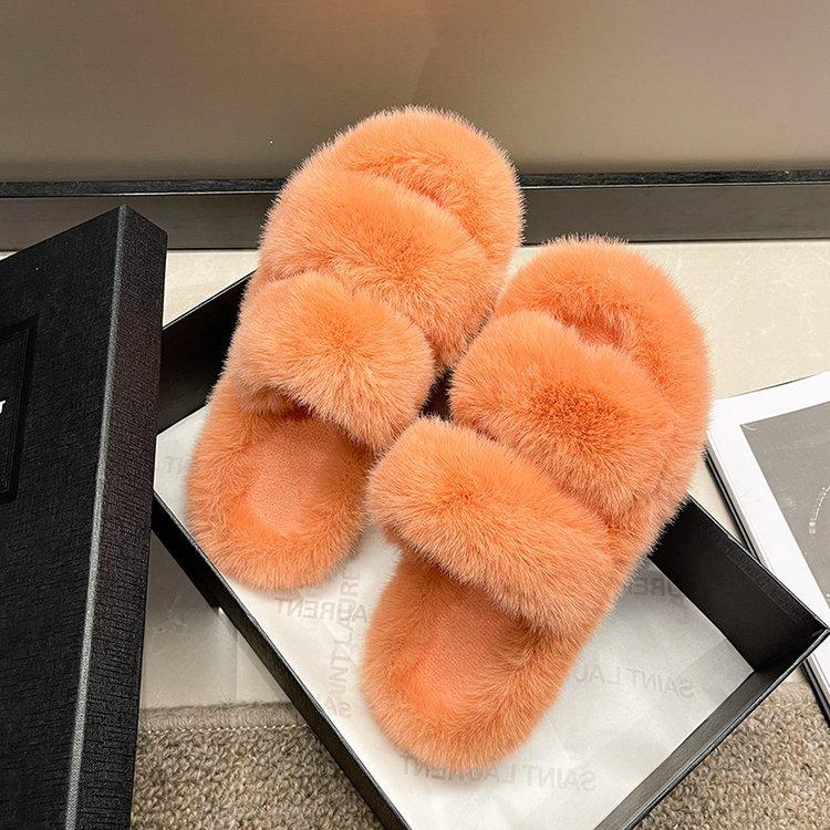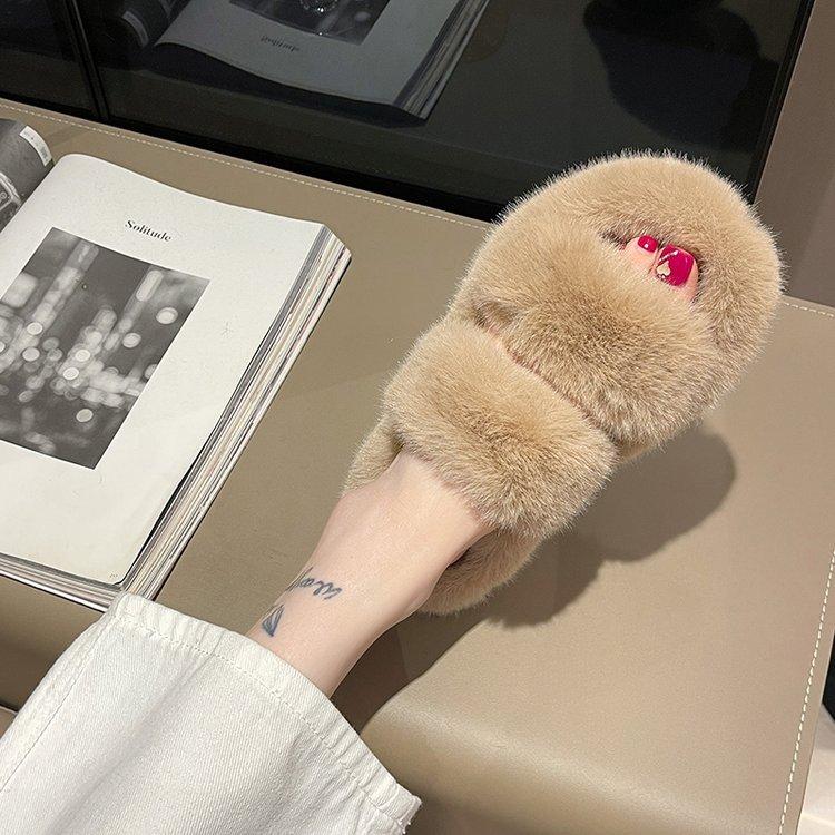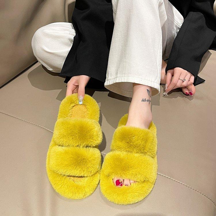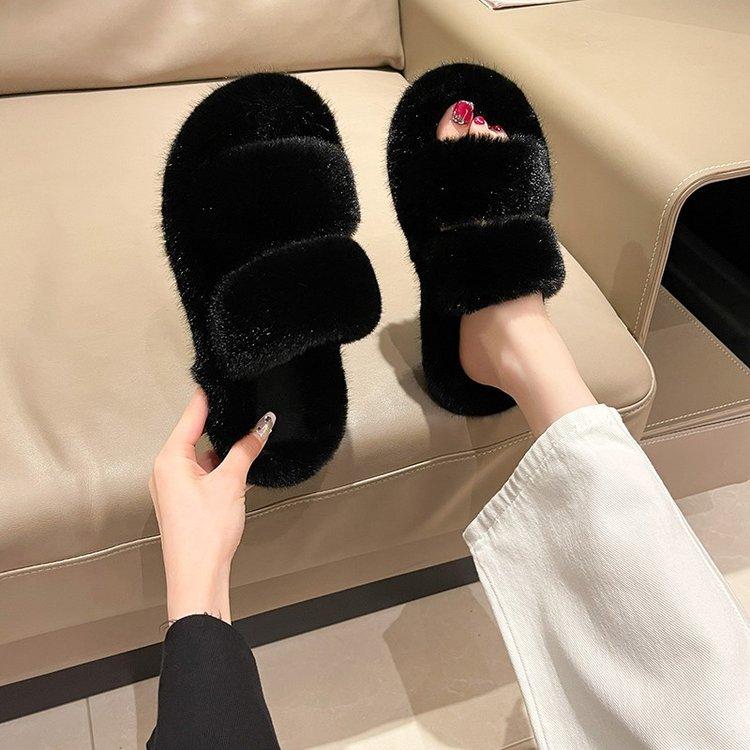 Zapatillas de lana de doble tira de nuevo estilo para otoño e invierno, zapatillas de algodón casuales de moda para mujer, zapatillas planas para el hogar de 42 pulgadas de felpa