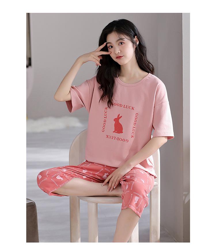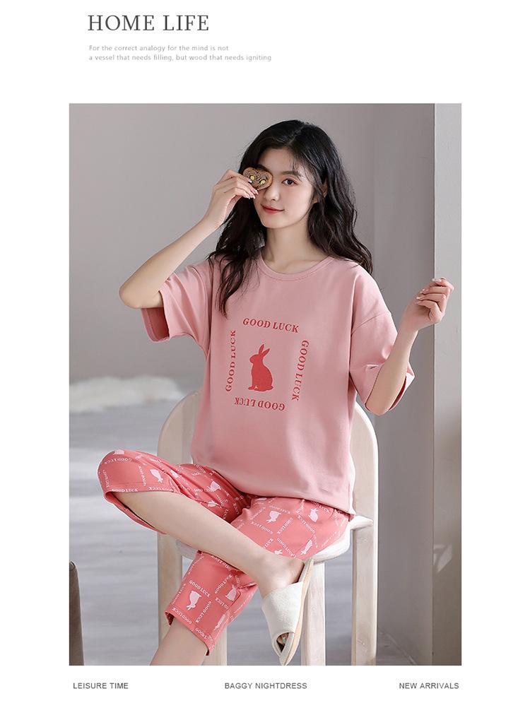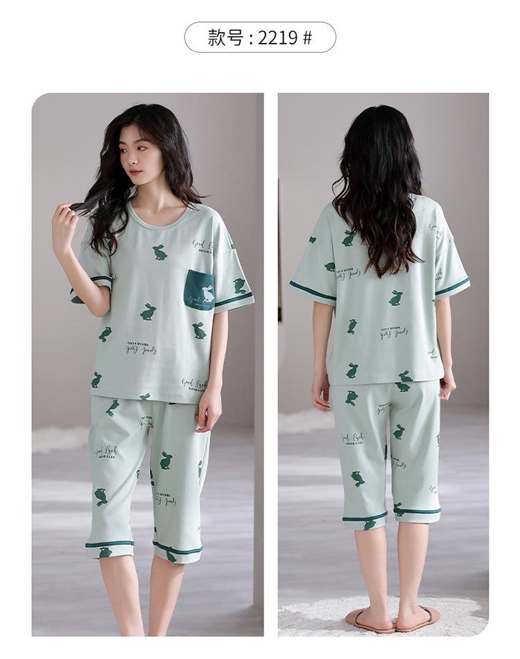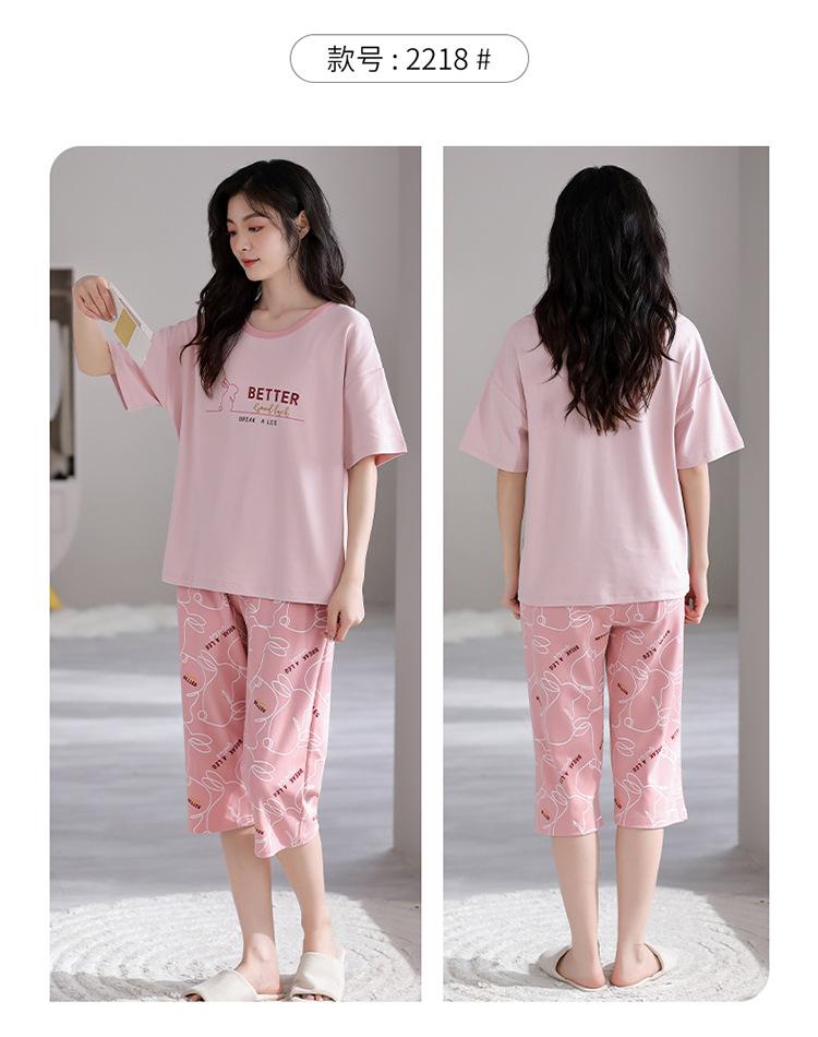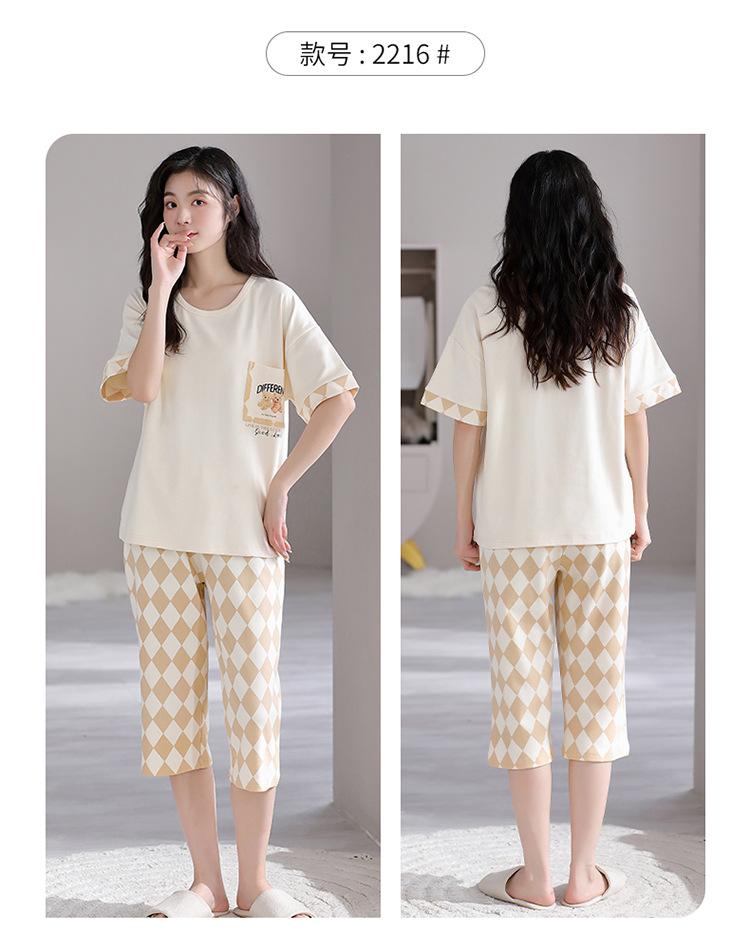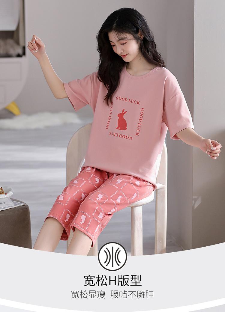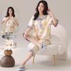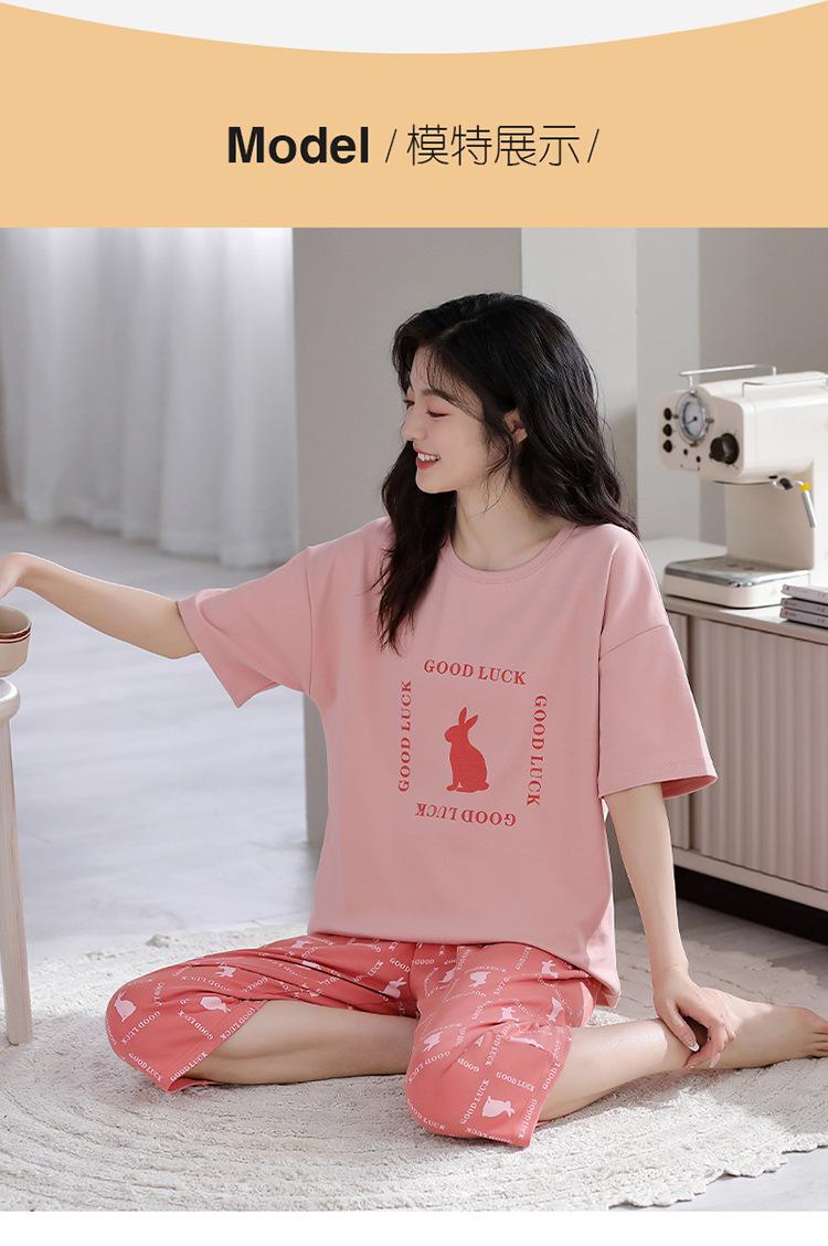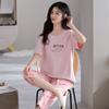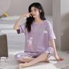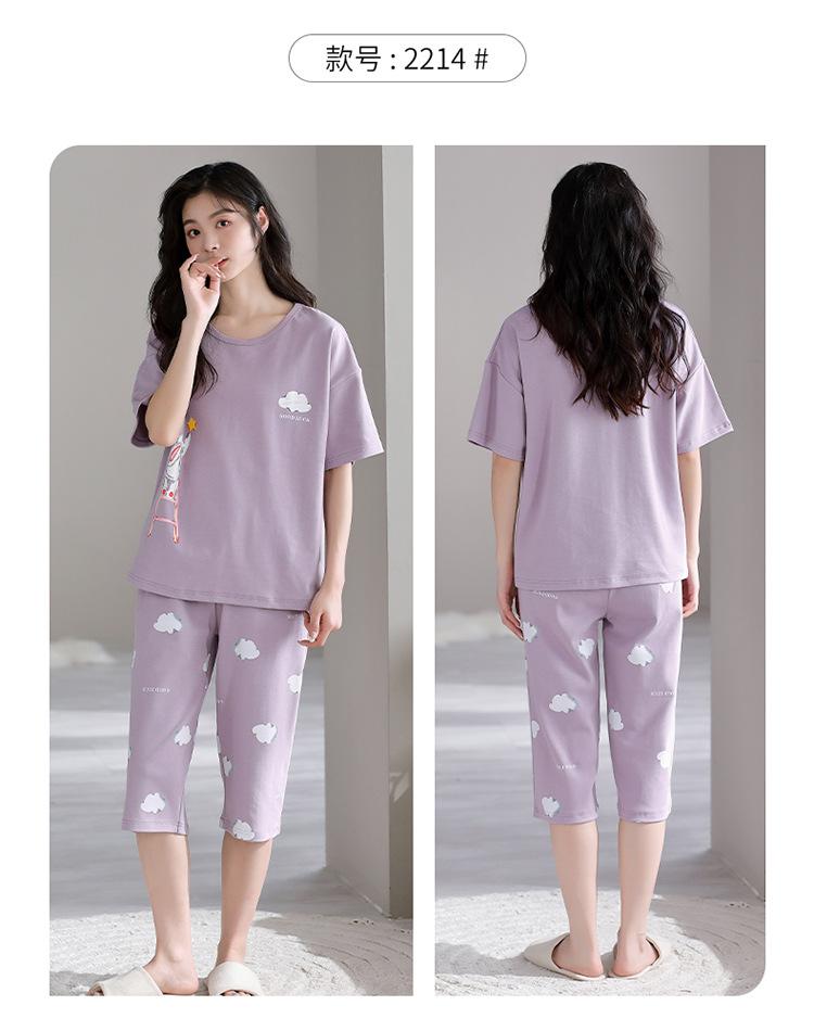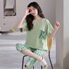 Pijama para Mujer Verano Manga Corta Pantalón Recortado Traje de Dos Piezas Dulce y Lindo Conjunto Delgado Casual Usable Ropa para el Hogar