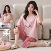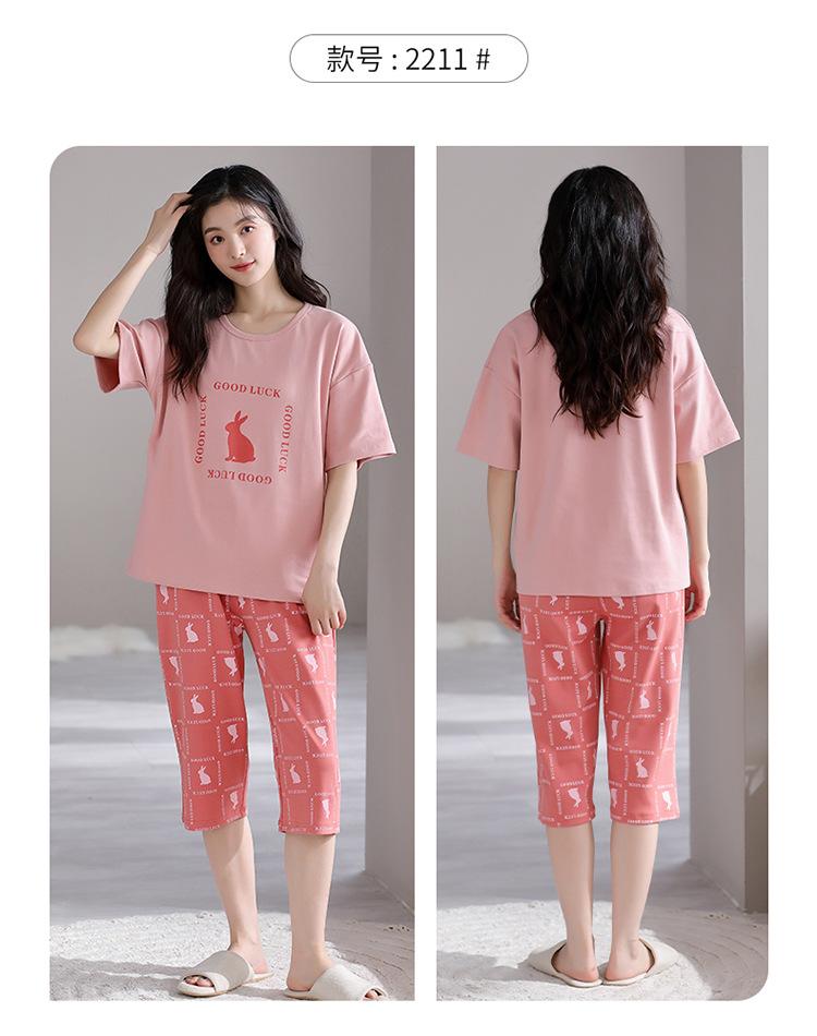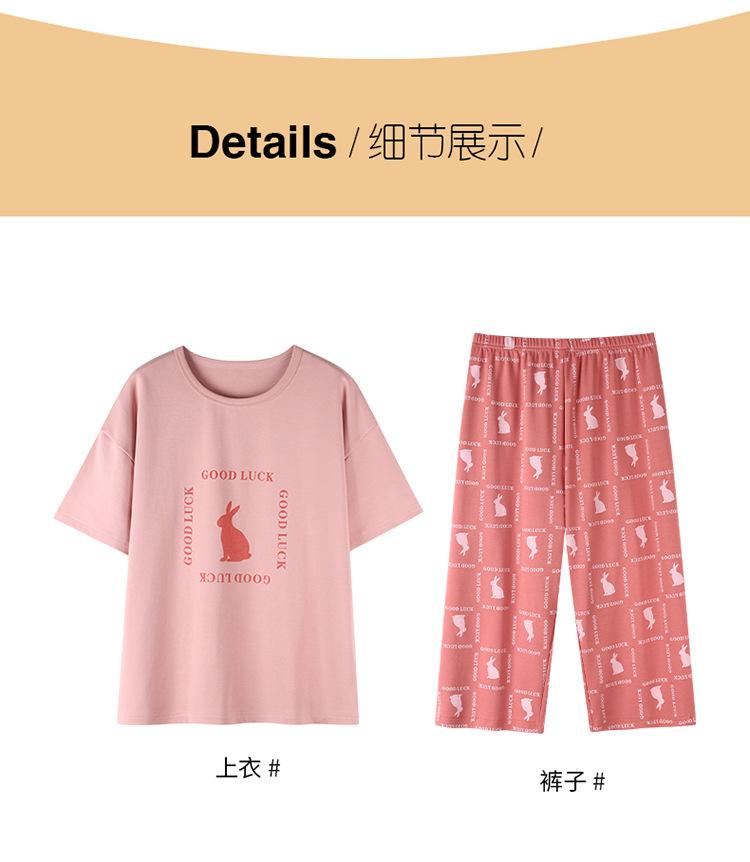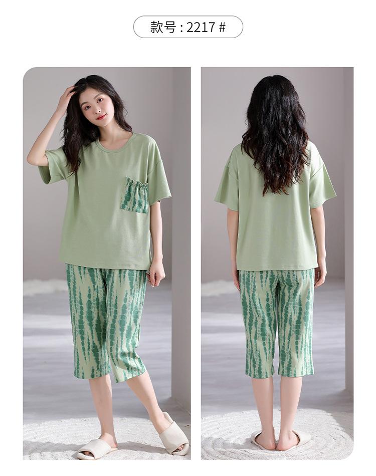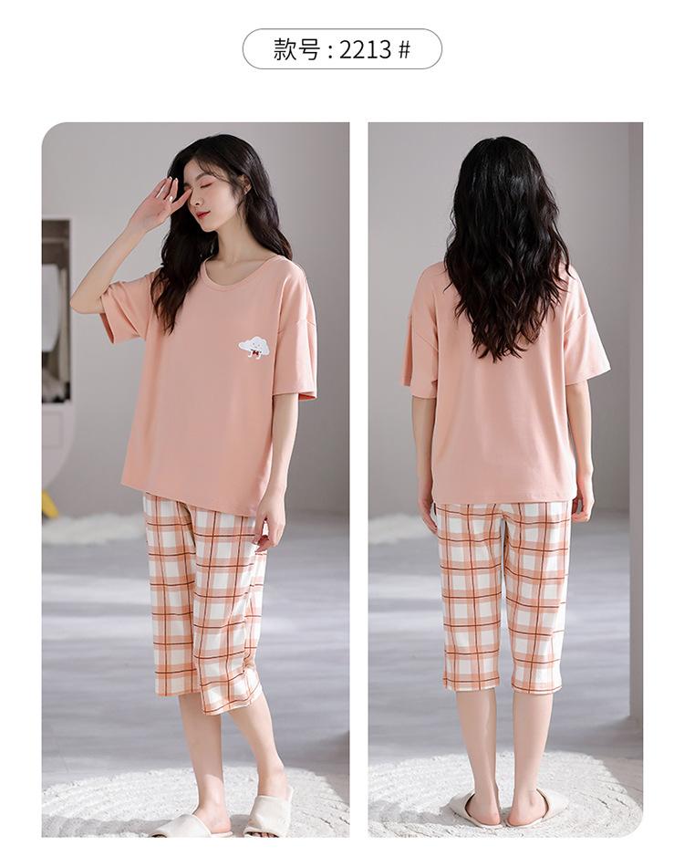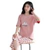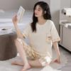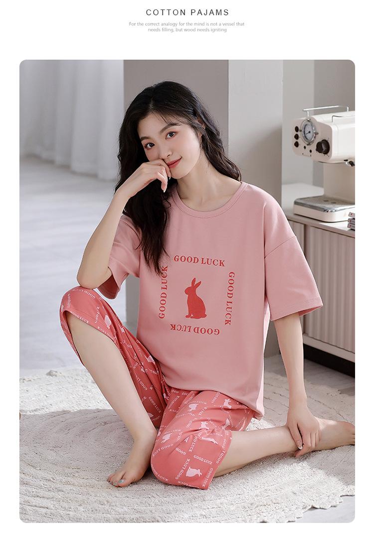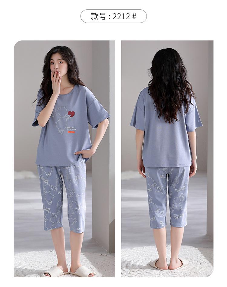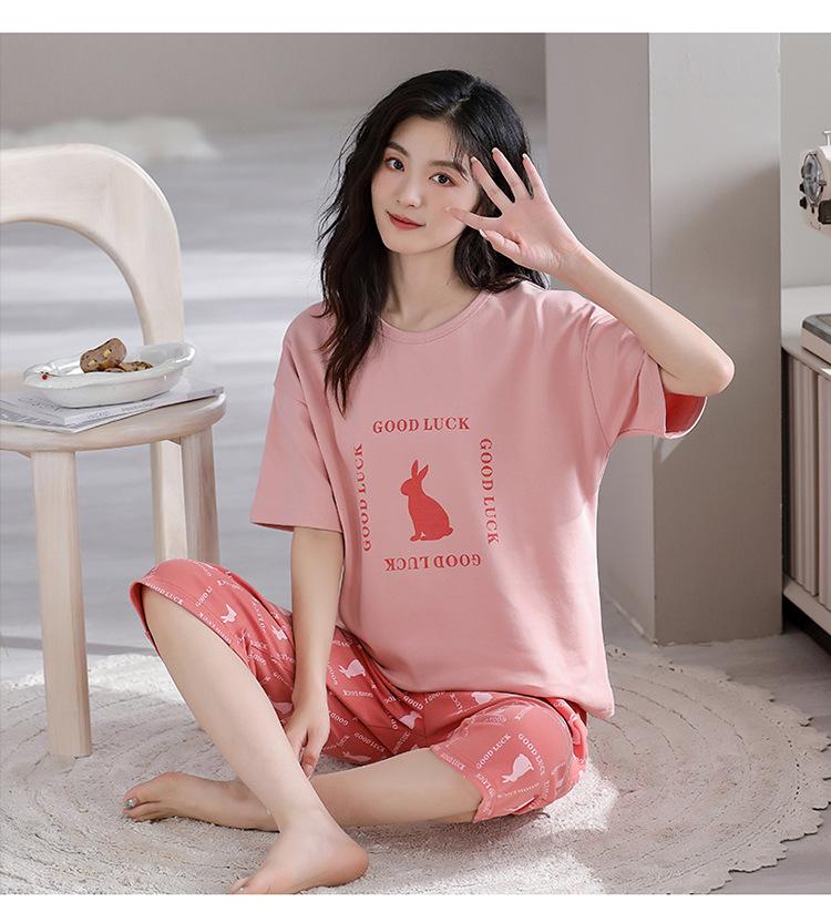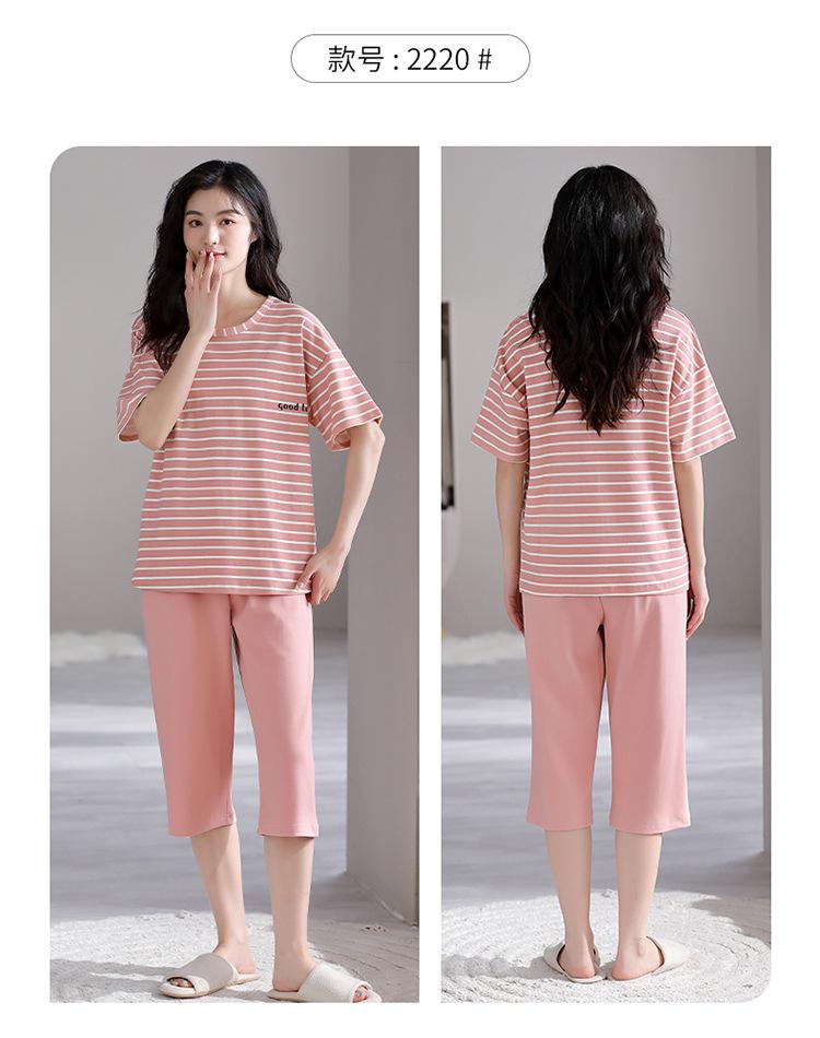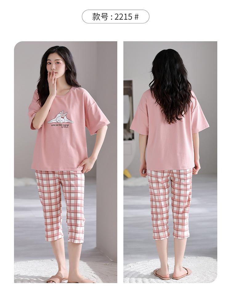 Pijama para Mujer Verano Manga Corta Pantalón Recortado Traje de Dos Piezas Dulce y Lindo Conjunto Delgado Casual Usable Ropa para el Hogar