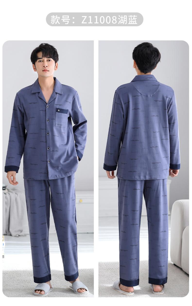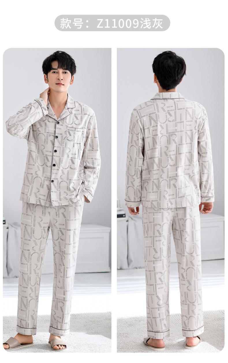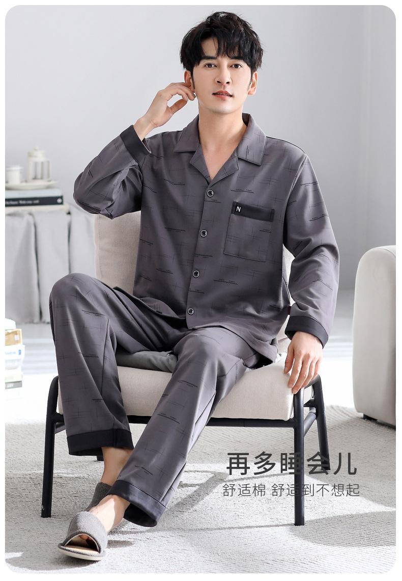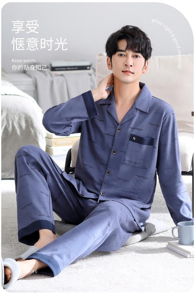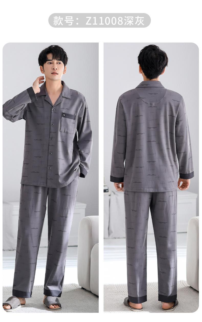 Pijamas de primavera y otoño para hombre, de algodón puro, con marco extraíble, de algodón fresco, de manga larga, con solapa, cárdigan, ropa de casa holgada sencilla de alta calidad para papá.