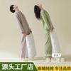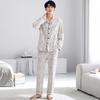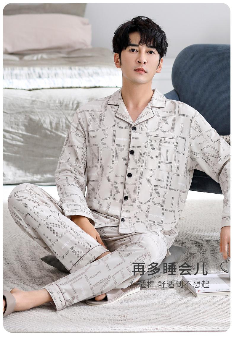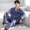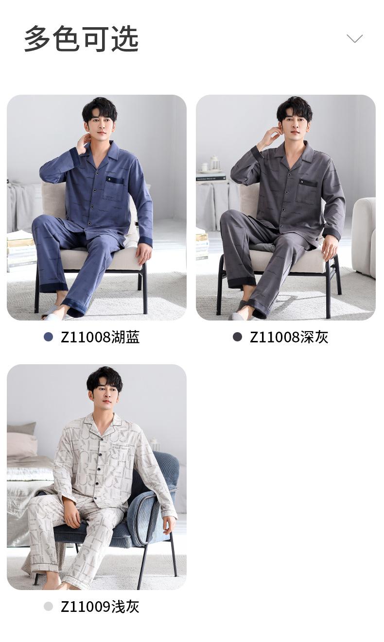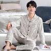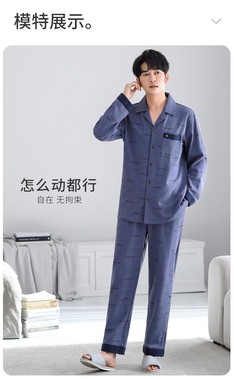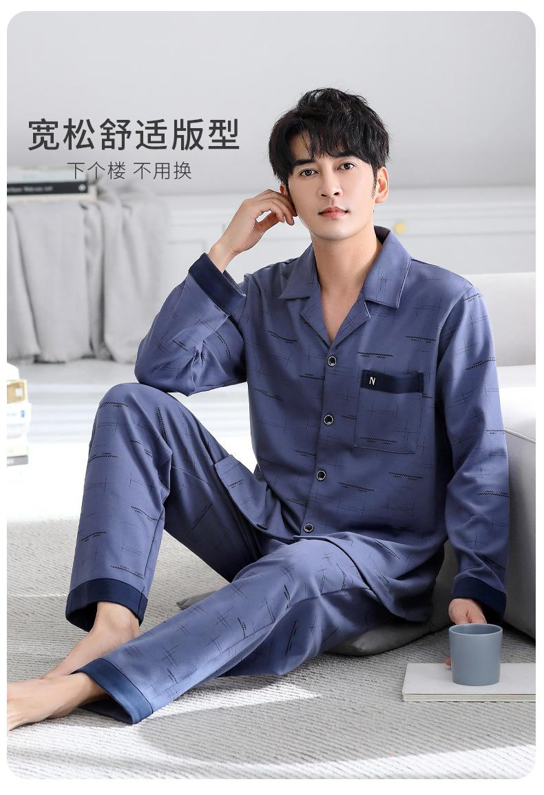 Pijamas de primavera y otoño para hombre, de algodón puro, con marco extraíble, de algodón fresco, de manga larga, con solapa, cárdigan, ropa de casa holgada sencilla de alta calidad para papá.