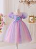 Vestido de niña arcoíris europeo y americano nuevo 2023, vestido de sirena con tocado de cola de pez, falda de tul con lazo