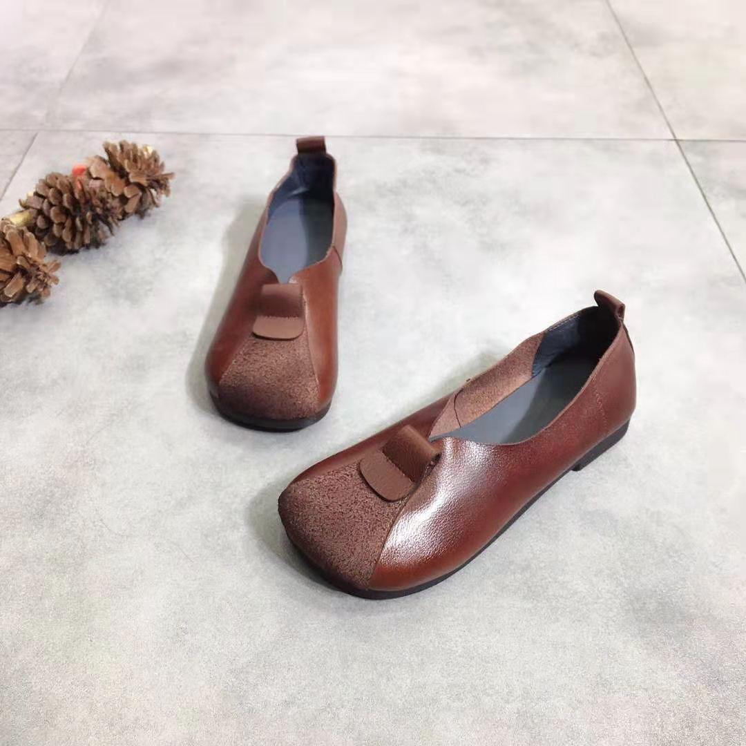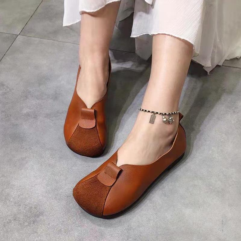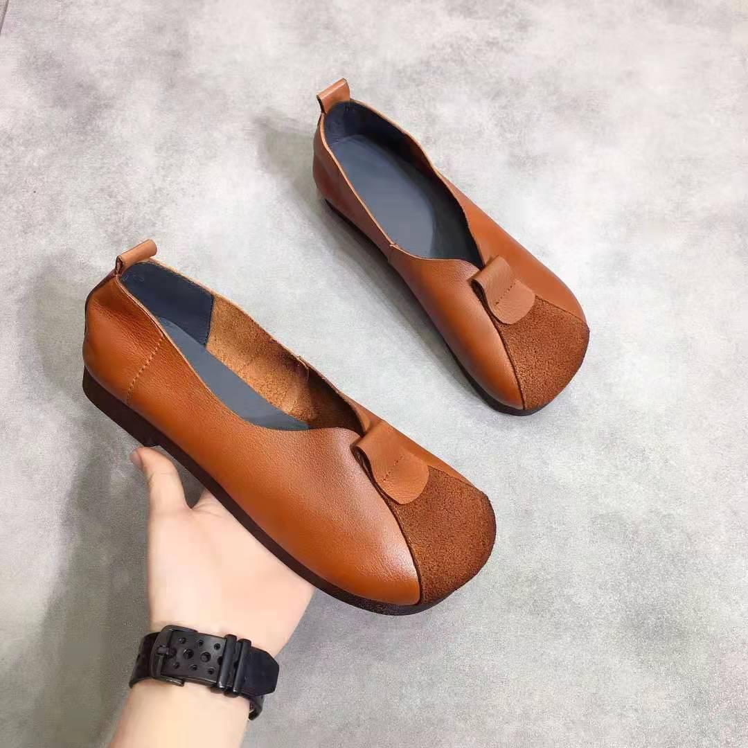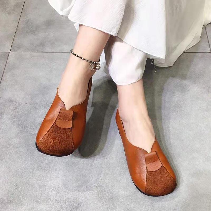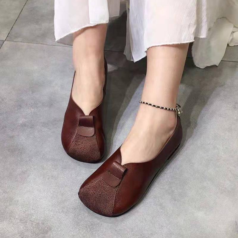 Zapatos Retro Nuevos para Mujer 2025, Tacones Bajos Planos, Zapatos Planos Casuales, Superficie Suave Slip-On, Suela Suave, Zapatos de Cuero Estilo Étnico