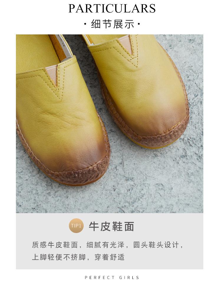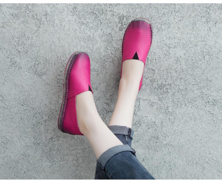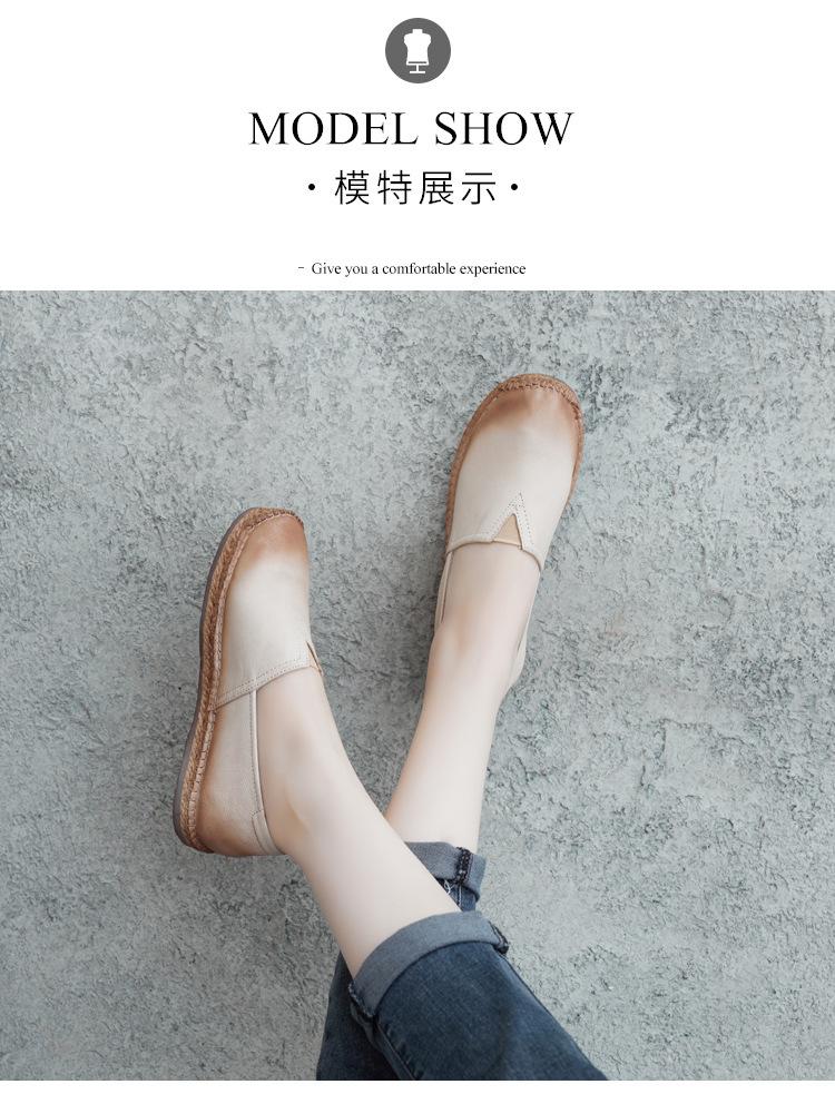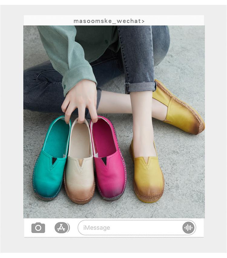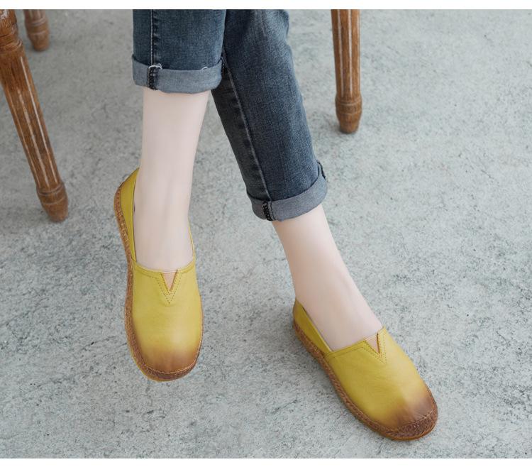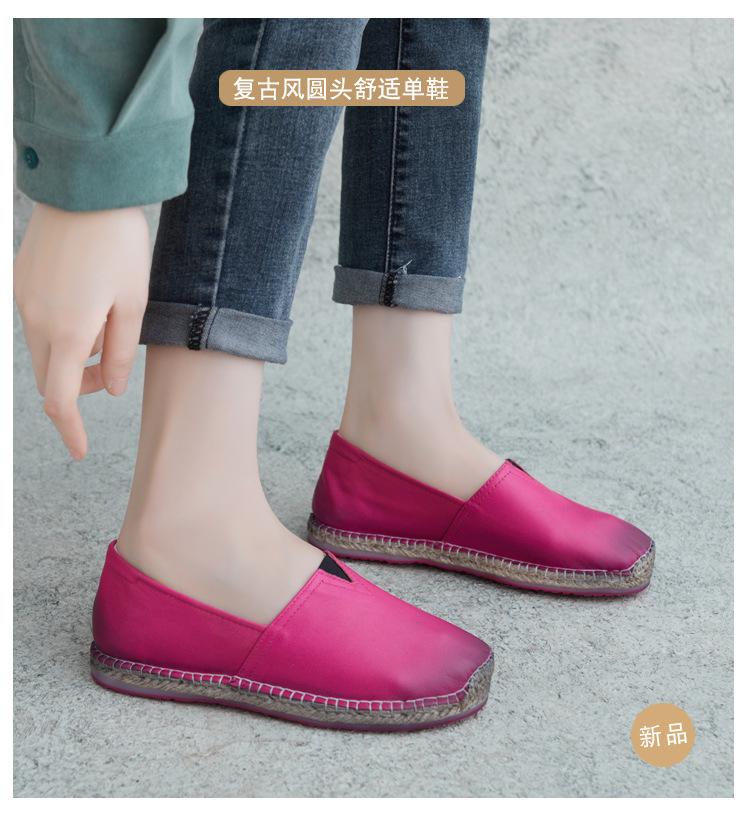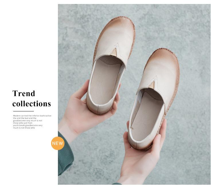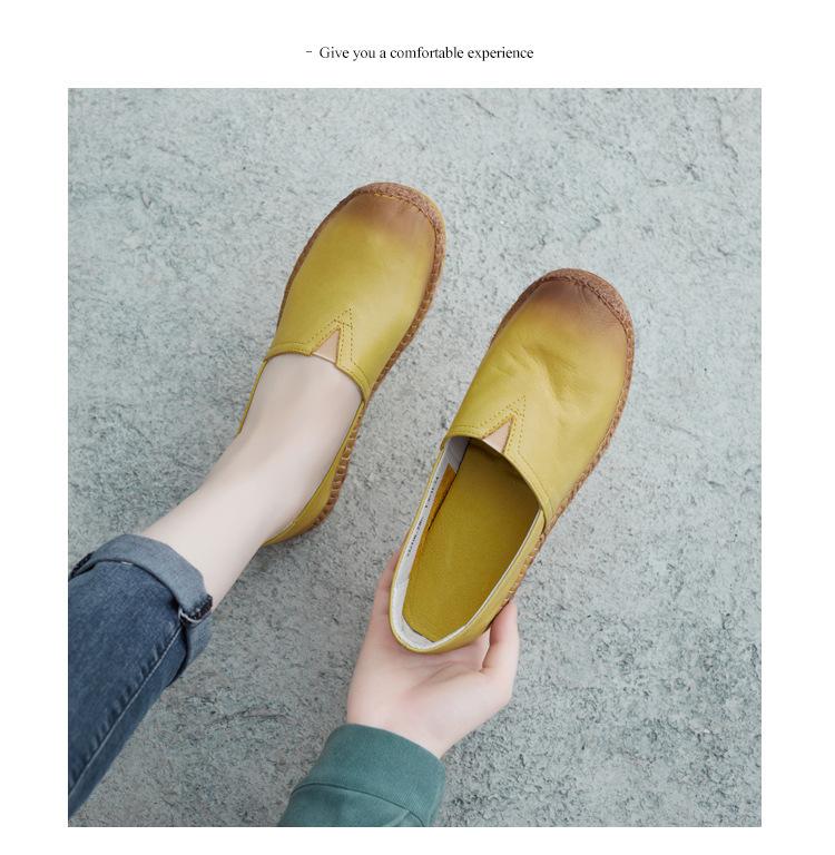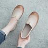 Primavera 2025 Nuevo Cuero Vintage Punta Redonda Slip-On Suela Suave Casual Plano Zapatos de Pescador